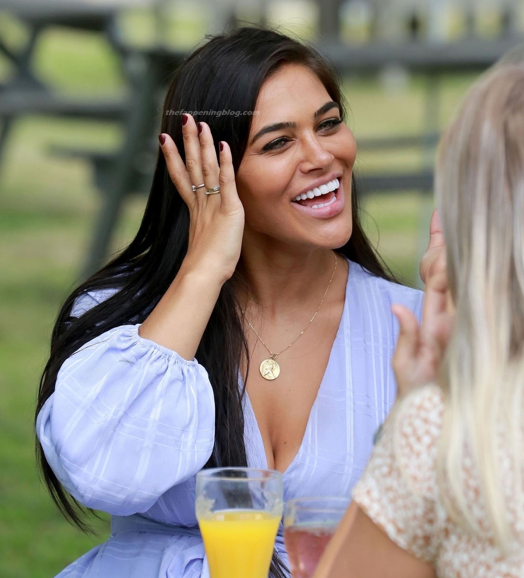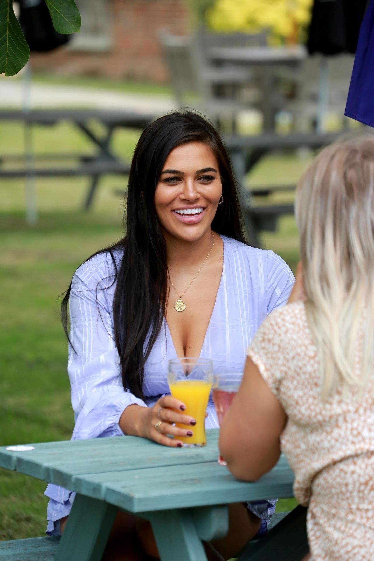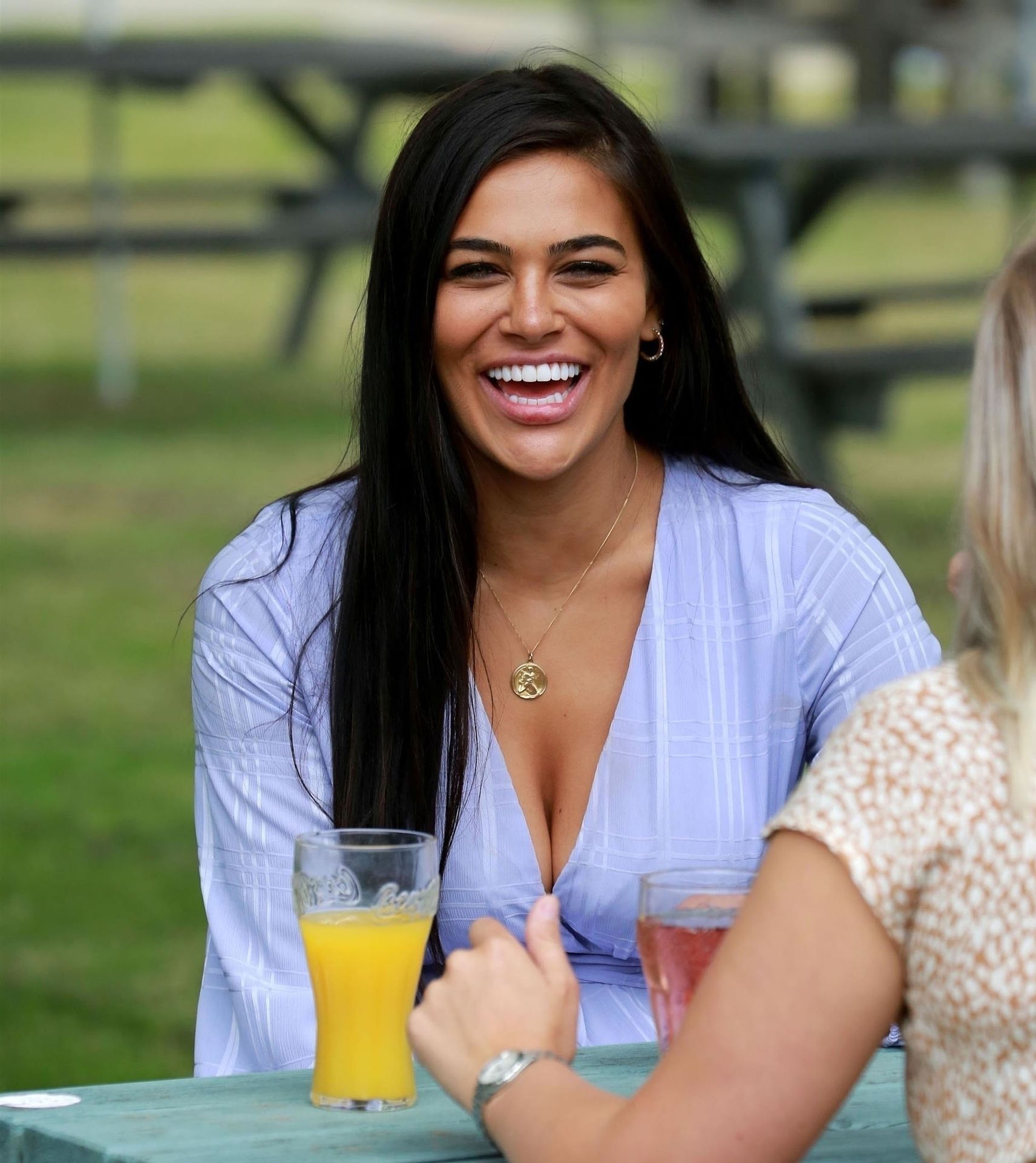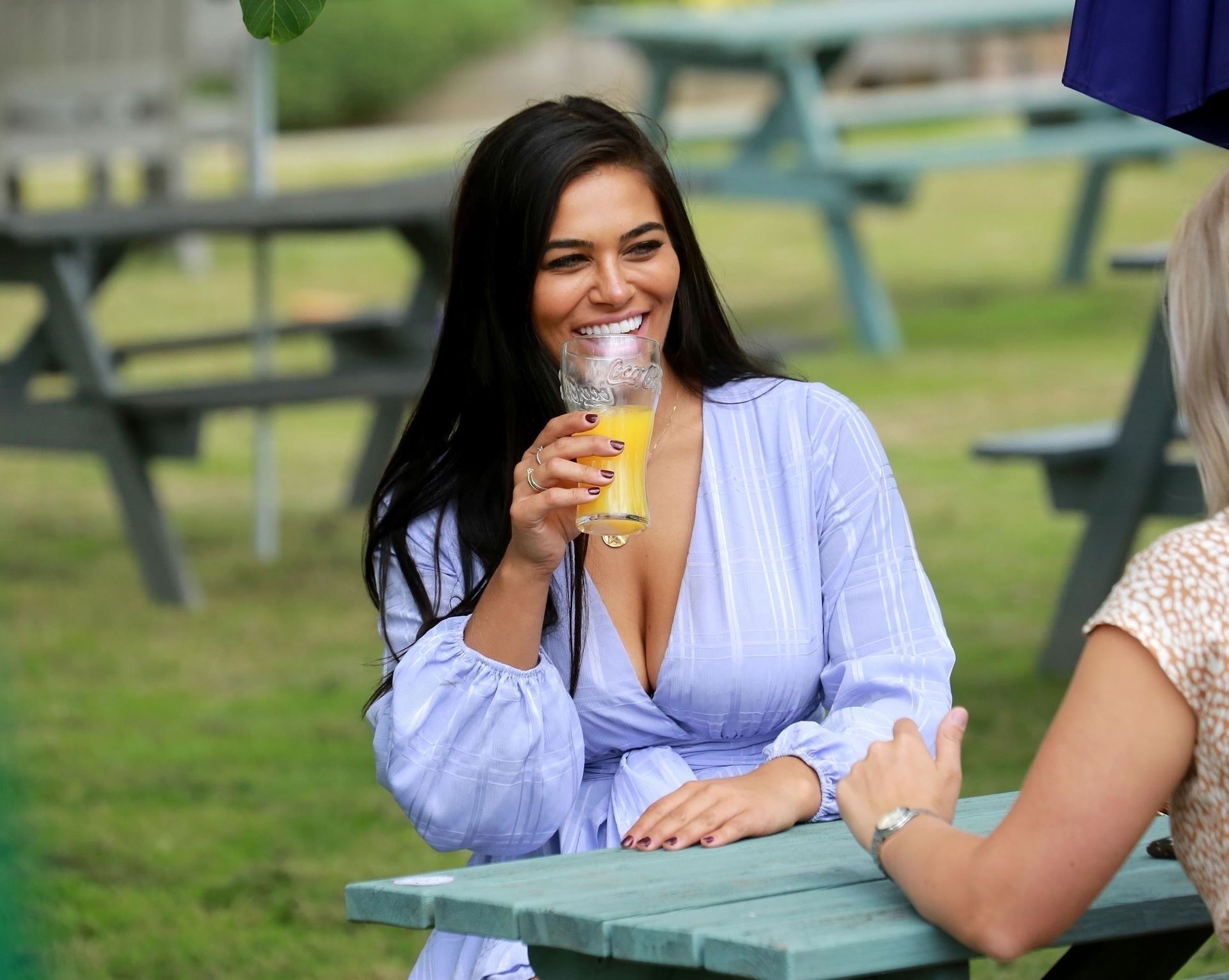 La star del reality show di Netflix ‘Too Hot to Handle’ Lydia Clyma approfitta del caldo clima britannico con una bevanda fresca e una bella chiacchierata con un’amica nel giardino di un pub vicino a casa sua a Portsmouth, 17/07/2020.