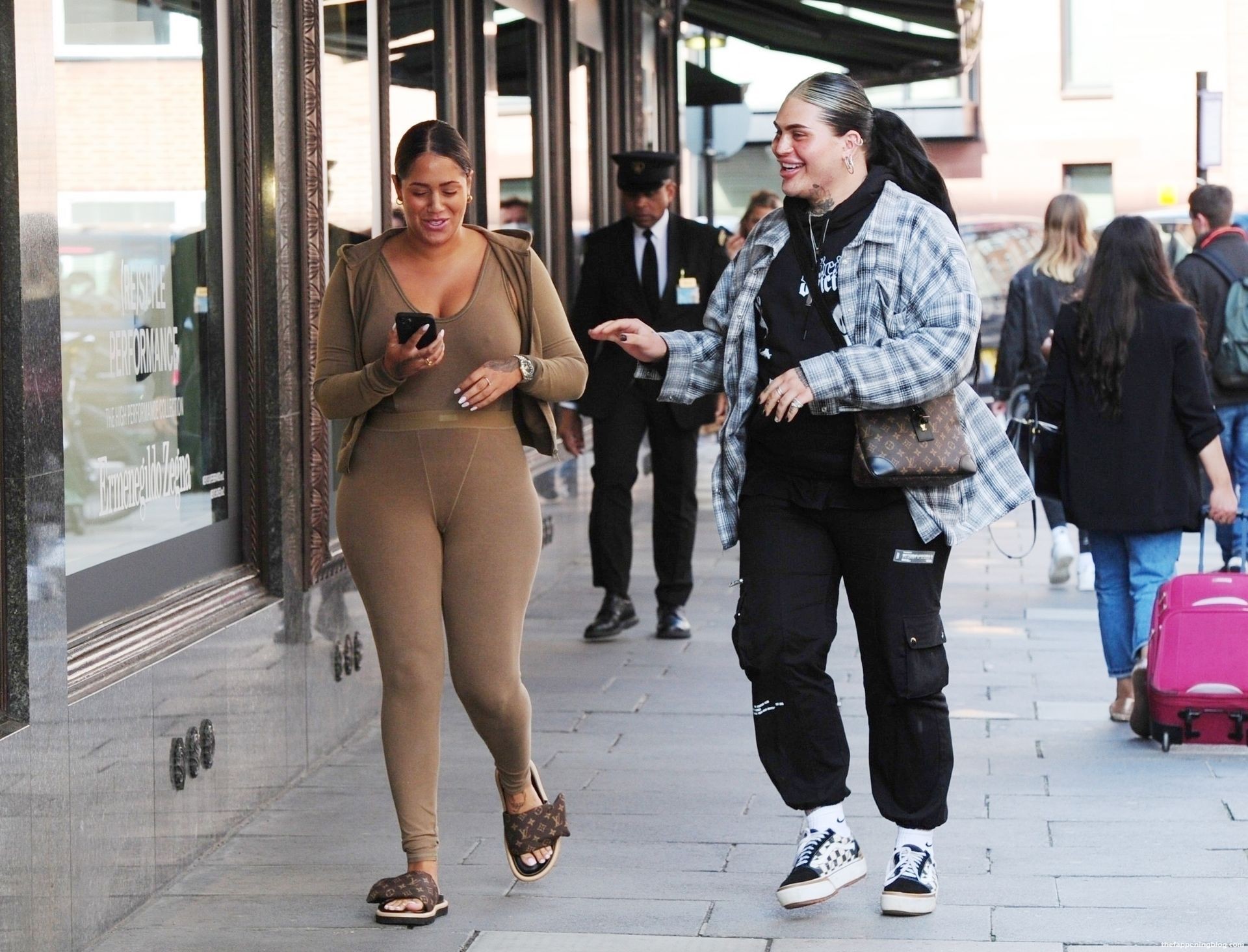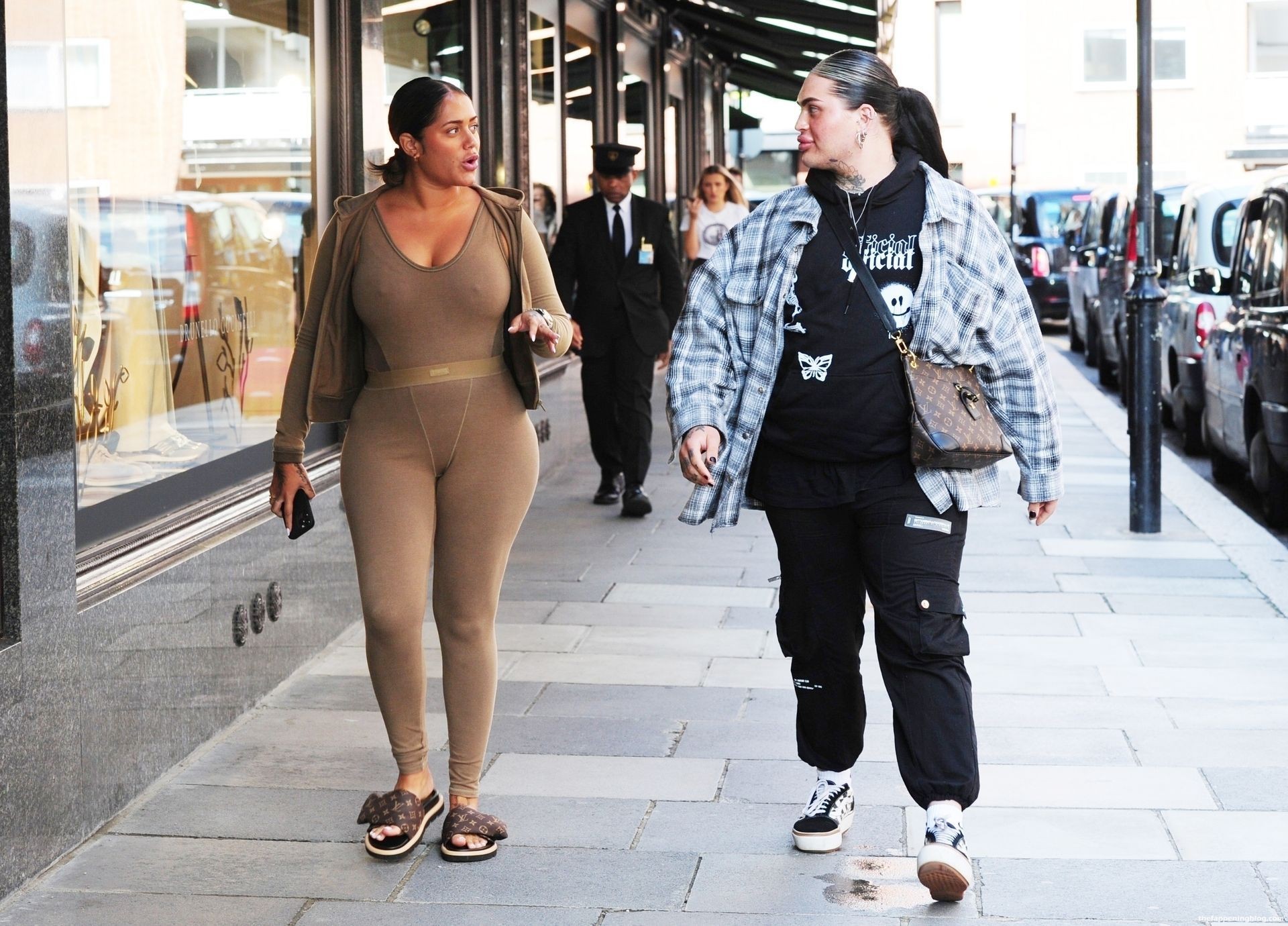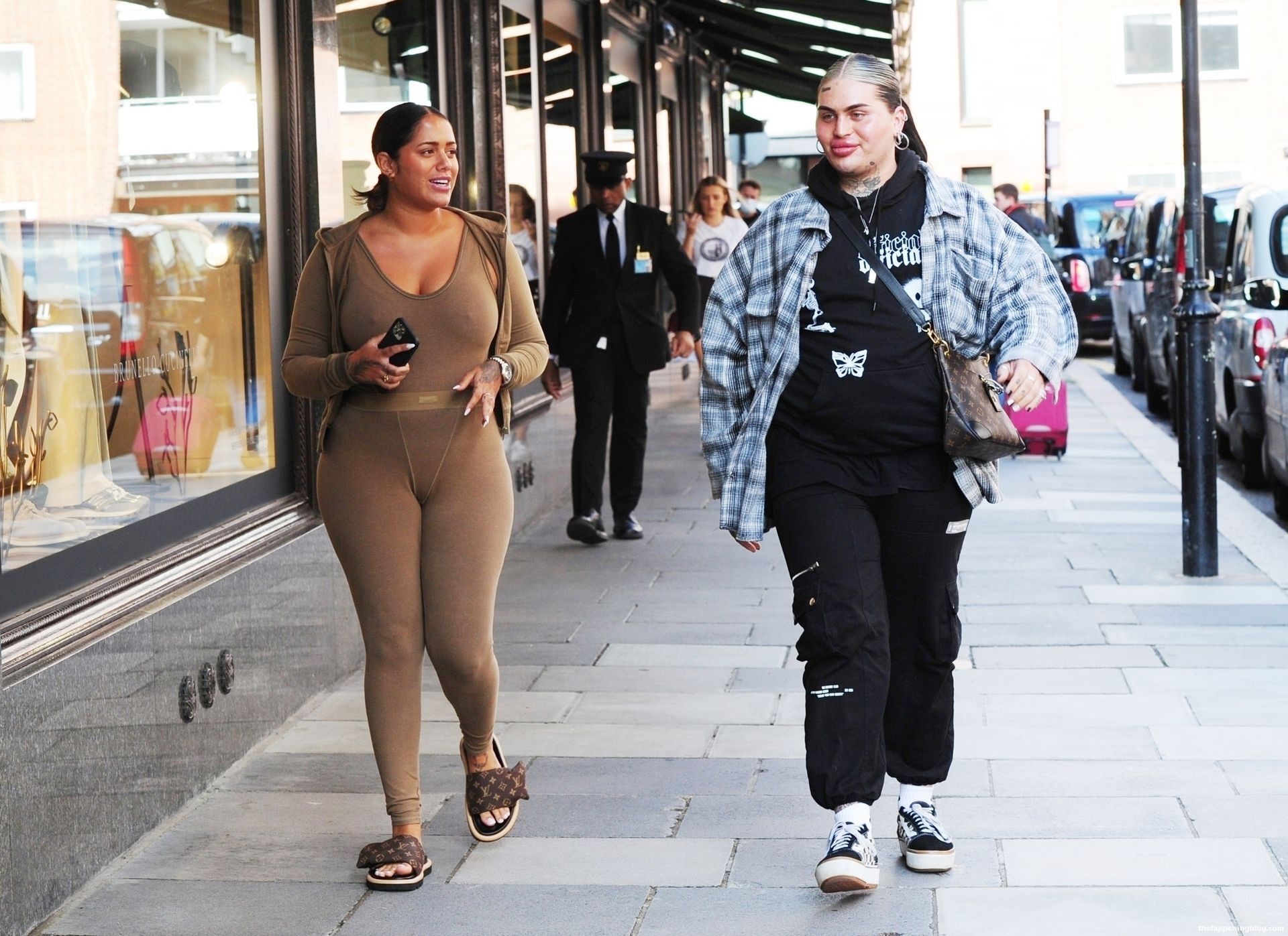La star incinta di “Love Island” Malin Andersson e un’amica sono state viste fare shopping da Harrods a Londra, 08/07/2021.