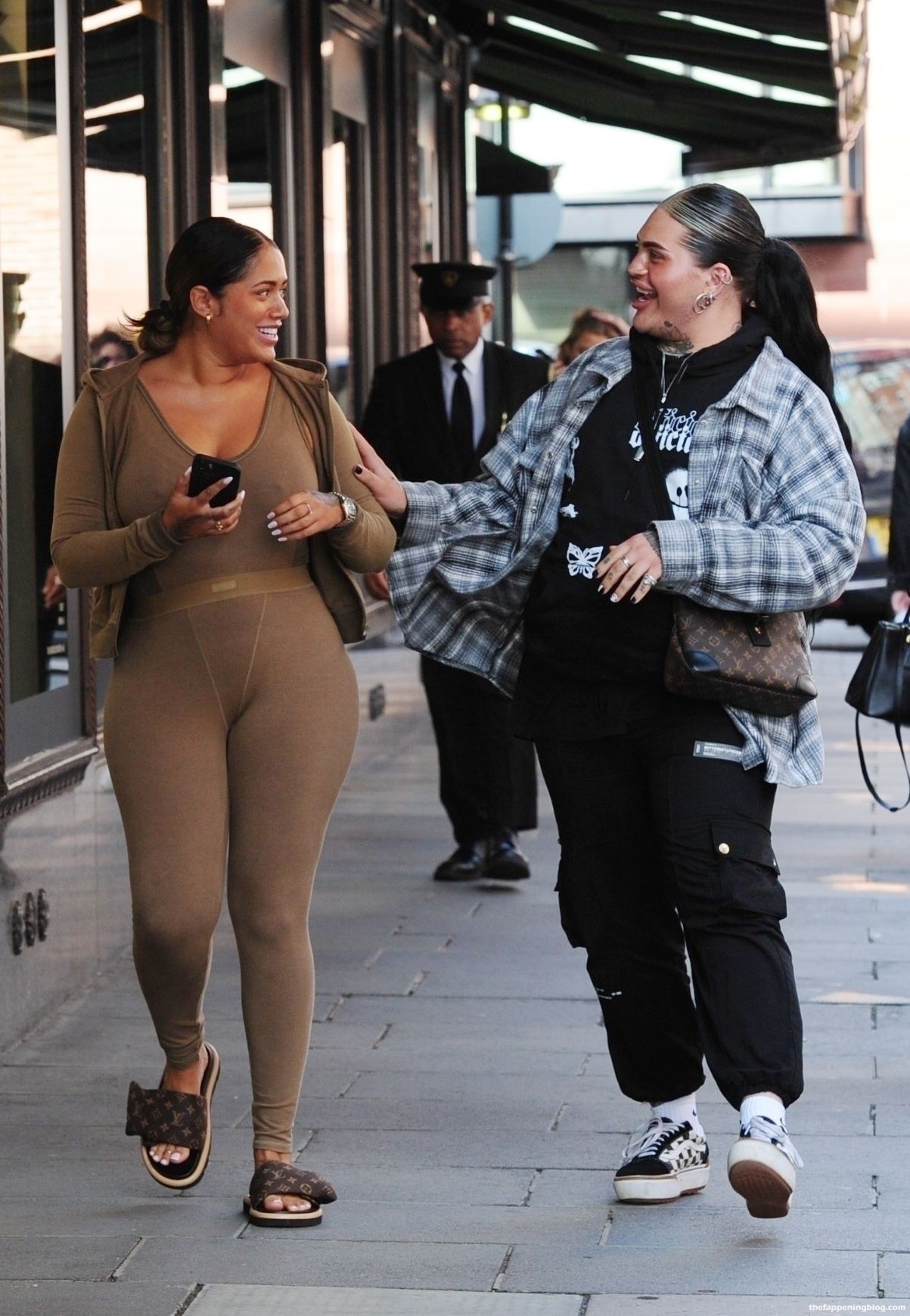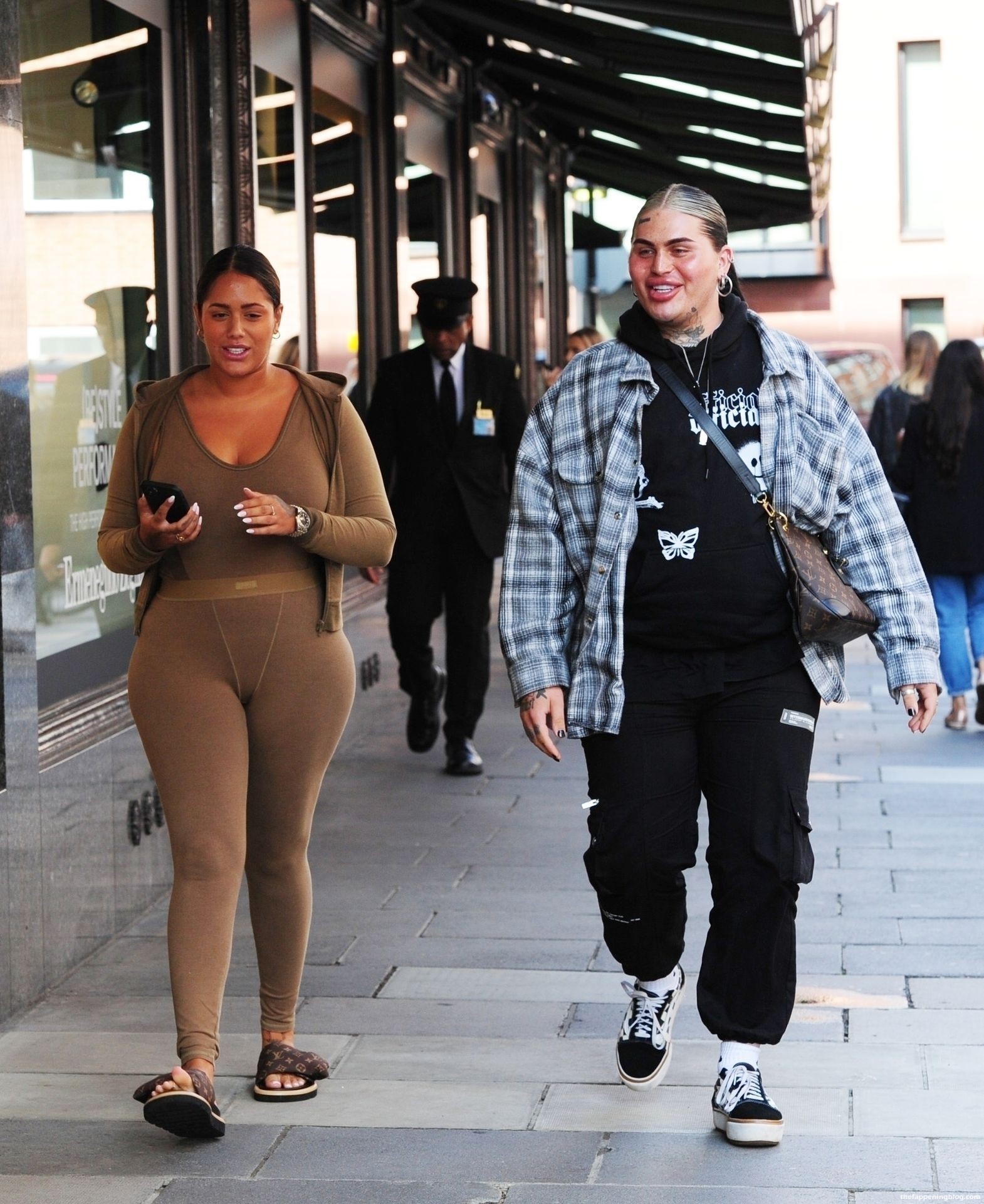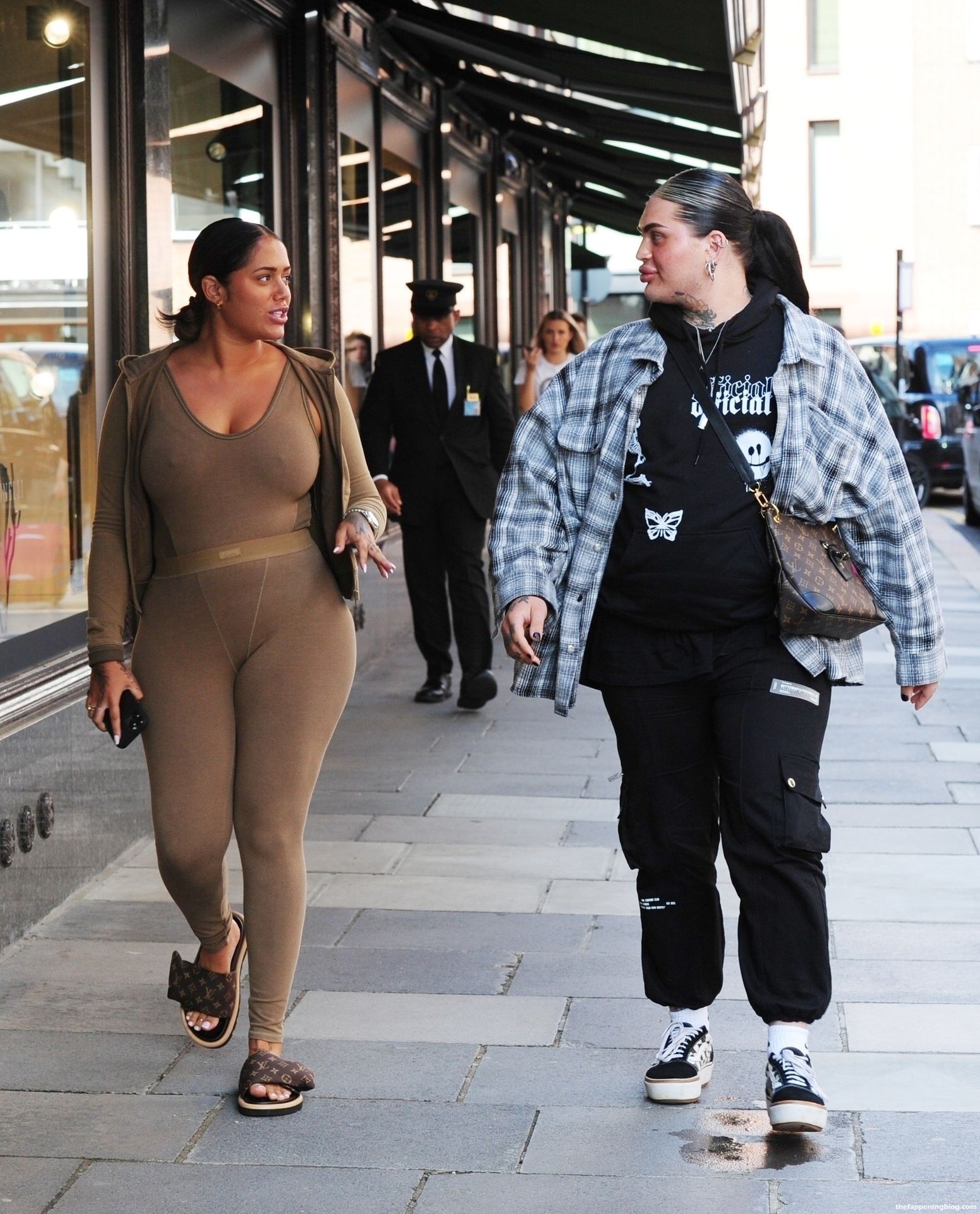 La star incinta di “Love Island” Malin Andersson e un’amica sono state viste fare shopping da Harrods a Londra, 08/07/2021.