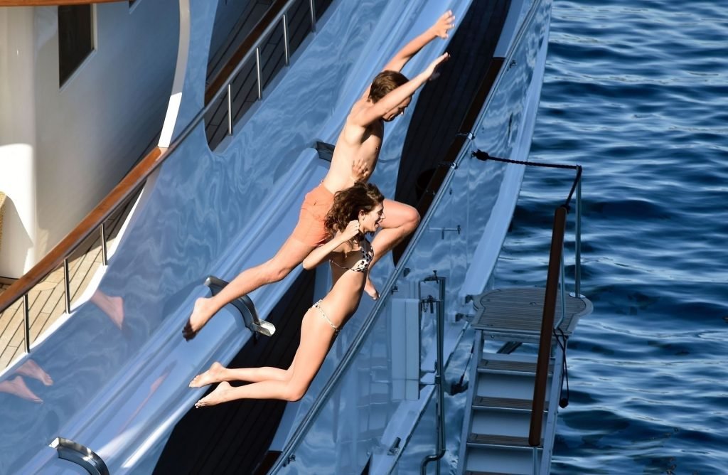 La modella è stata accompagnata nella sua vacanza baciata dal sole sul suo mega yacht dal suo nuovo fidanzato Myles Barclay e dal padre di lui, Howard Barclay. Con il sole cocente e il tempo caldo, Cairo e Barclay non riuscivano a tenere le mani lontane l’uno dall’altra mentre condividevano alcuni momenti intimi abbracciandosi e baciandosi, con la coppia che si tuffava dal loro yacht divertendosi.