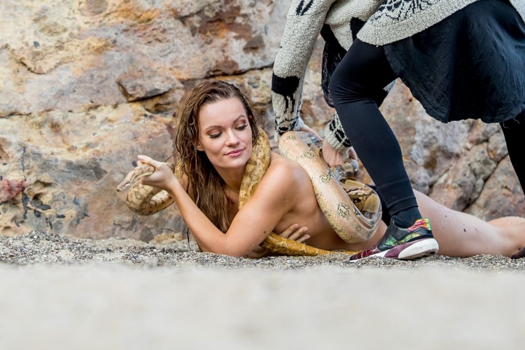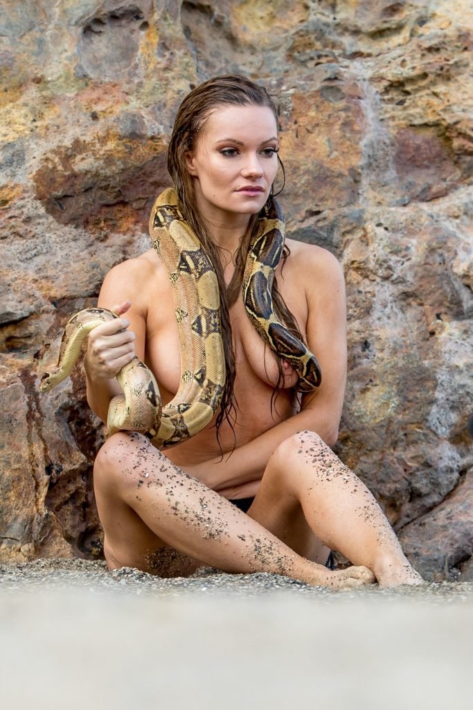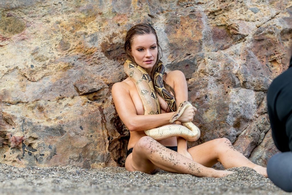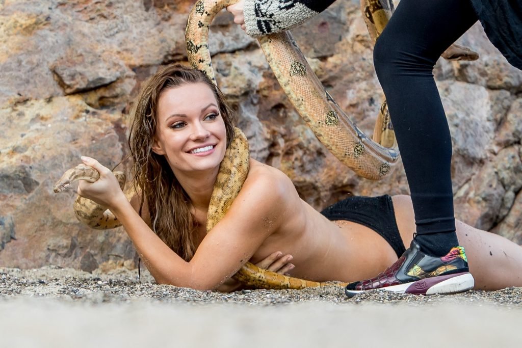 Caitlin O’Connor posa topless con un serpente sulla spiaggia a Malibu, 20/03/2017. Caitlin O’Connor (Purdy) è un’attrice americana (American Satan (2017)), modella e conduttrice. Età: 26 (3 agosto 1990).