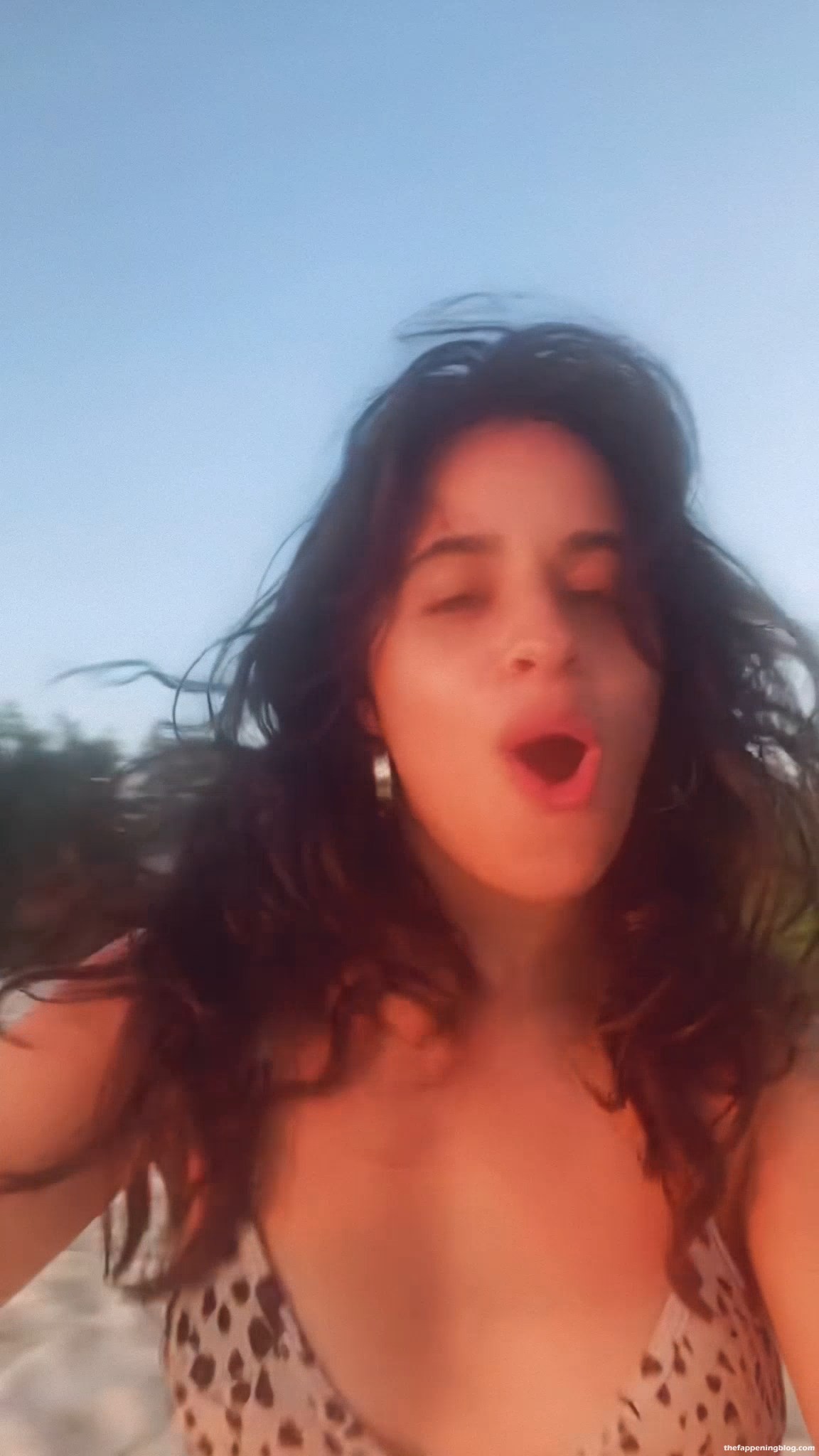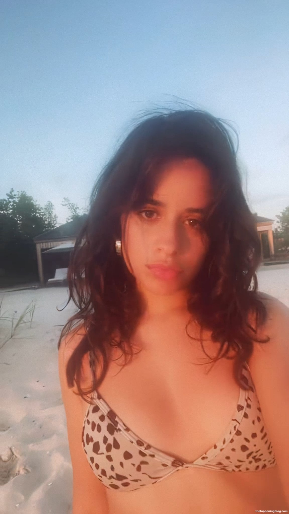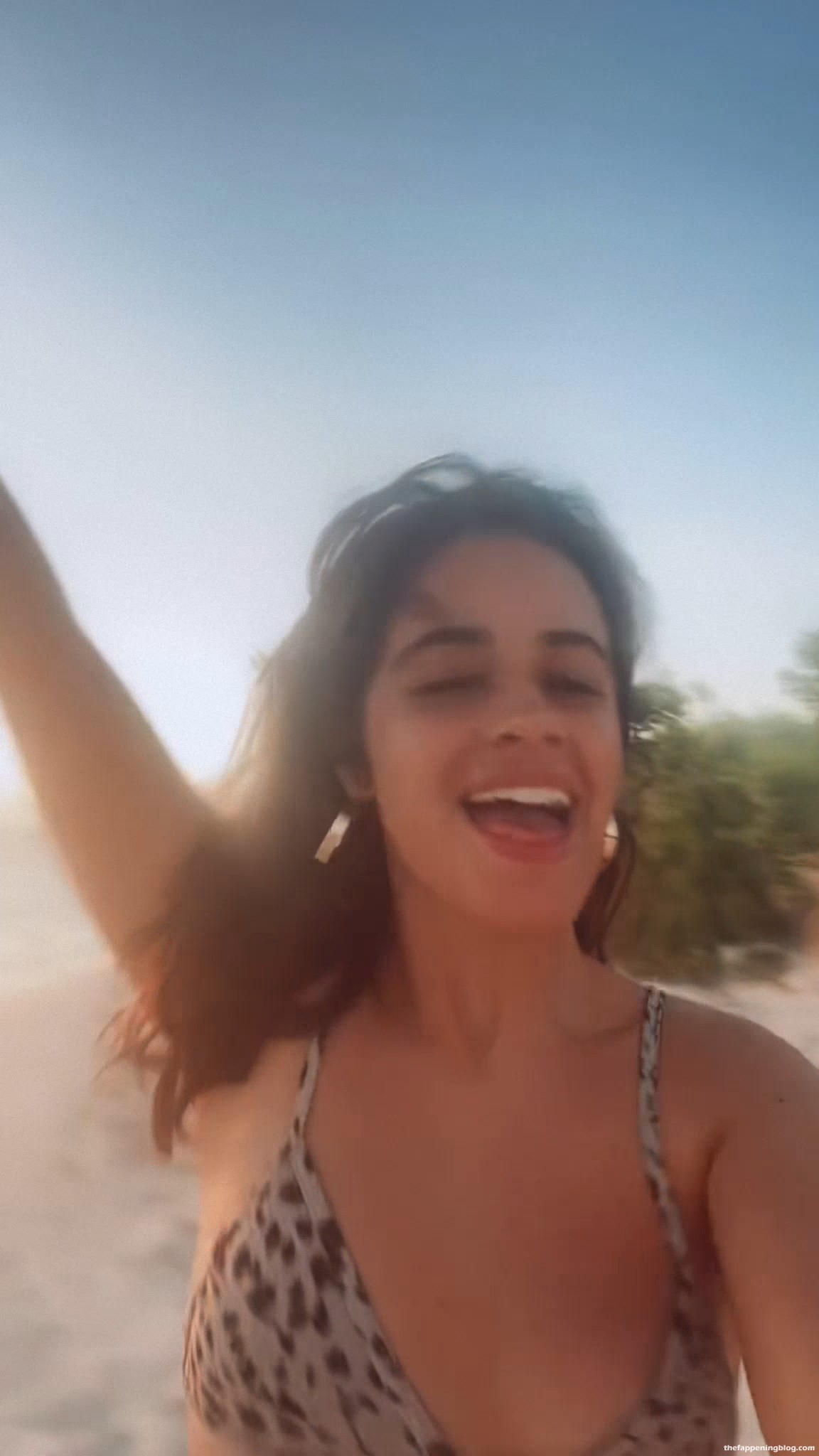 La cantante Camila Cabello sfoggia il suo corpo sexy, scuotendo i suoi piccoli seni in un top bikini minuscolo mentre balla sulla spiaggia per i suoi follower su TikTok, 08/05/2021.