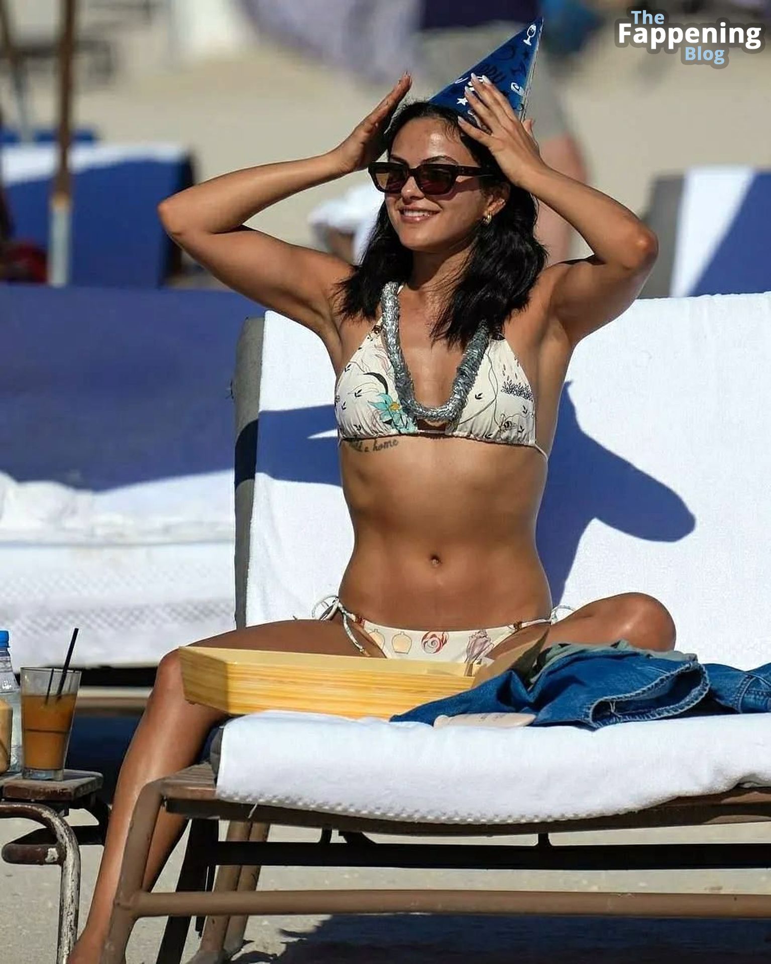 Camila Mendes mostra il suo corpo sexy indossando un piccolo bikini sulla spiaggia di Miami.