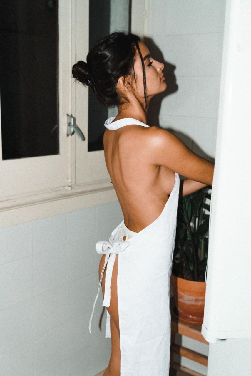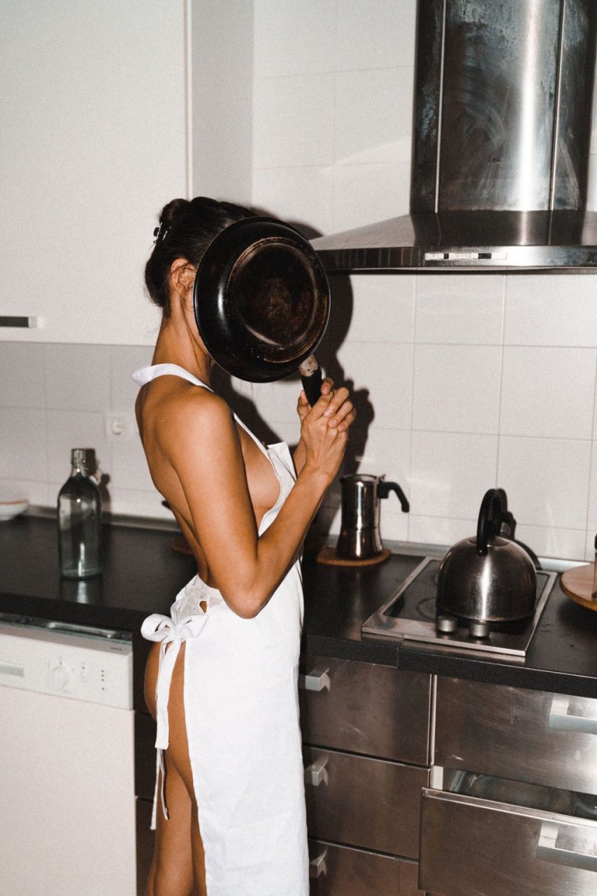 Model Camila “Cami” Romero indossava un grembiule sul suo corpo nudo in un servizio fotografico di Jonny Seelenmeyer (2018). Una casalinga così dovrebbe esserci in ogni cucina!