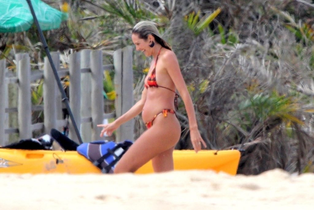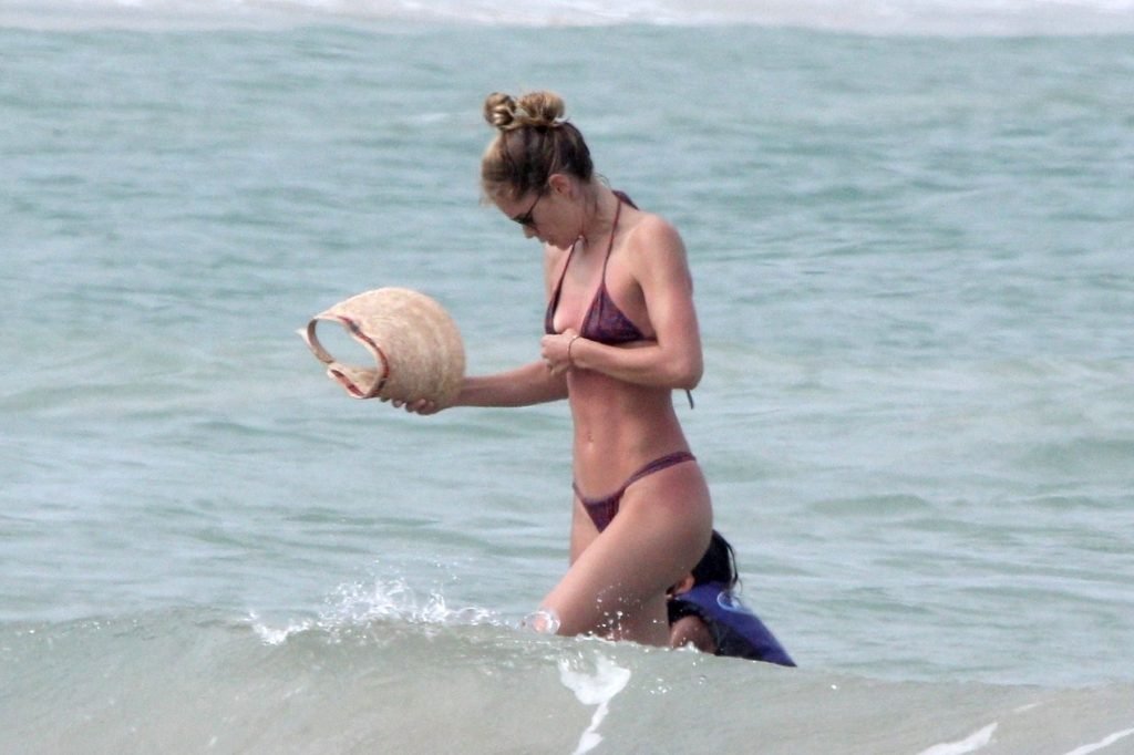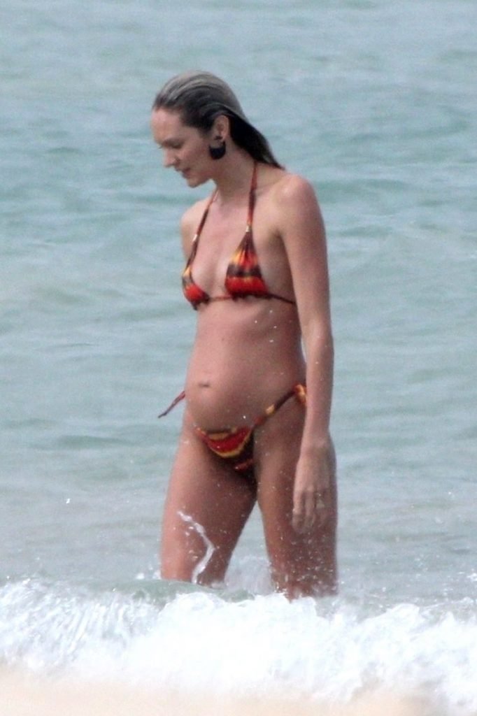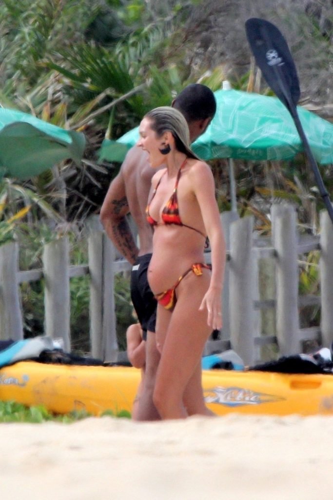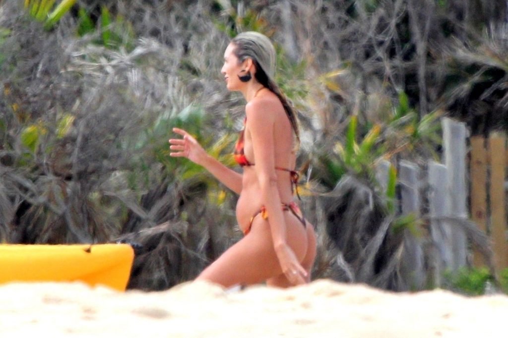 La incinta Candice Swanepoel lascia che il suo pancione si goda un’altra giornata in spiaggia con Doutzen Kroes e la sua famiglia sulla spiaggia di Bahia, 01/10/2018.
