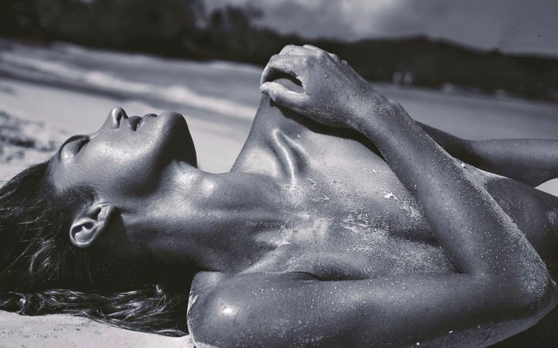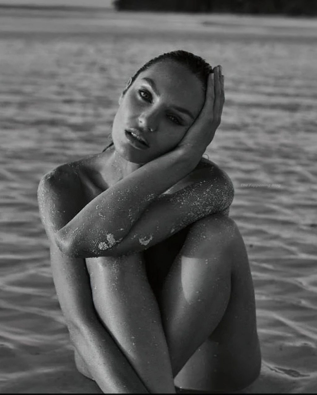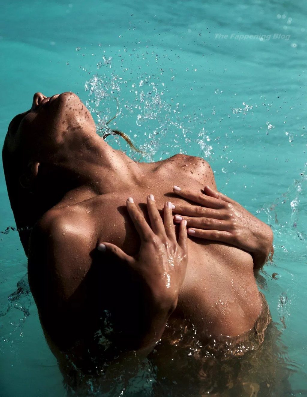 La modella Candice Swanepoel si bagna e mostra i suoi seni nudi posando quasi nuda in un servizio fotografico di David Roemer per la rivista Madame Figaro Paris, numero di aprile 2021.