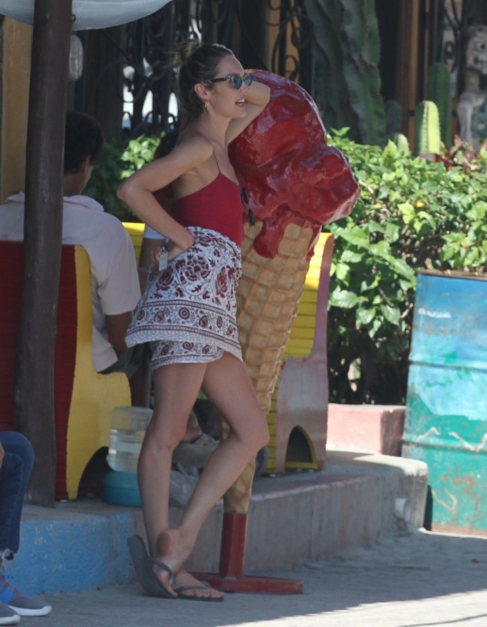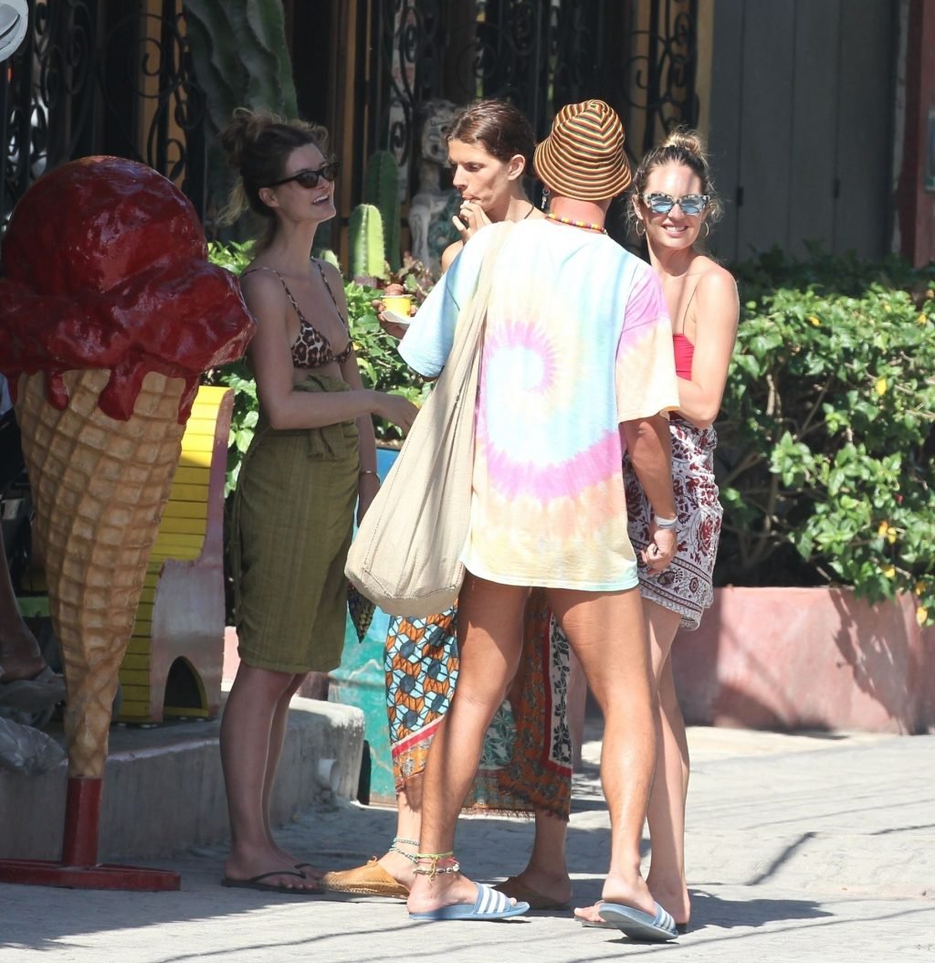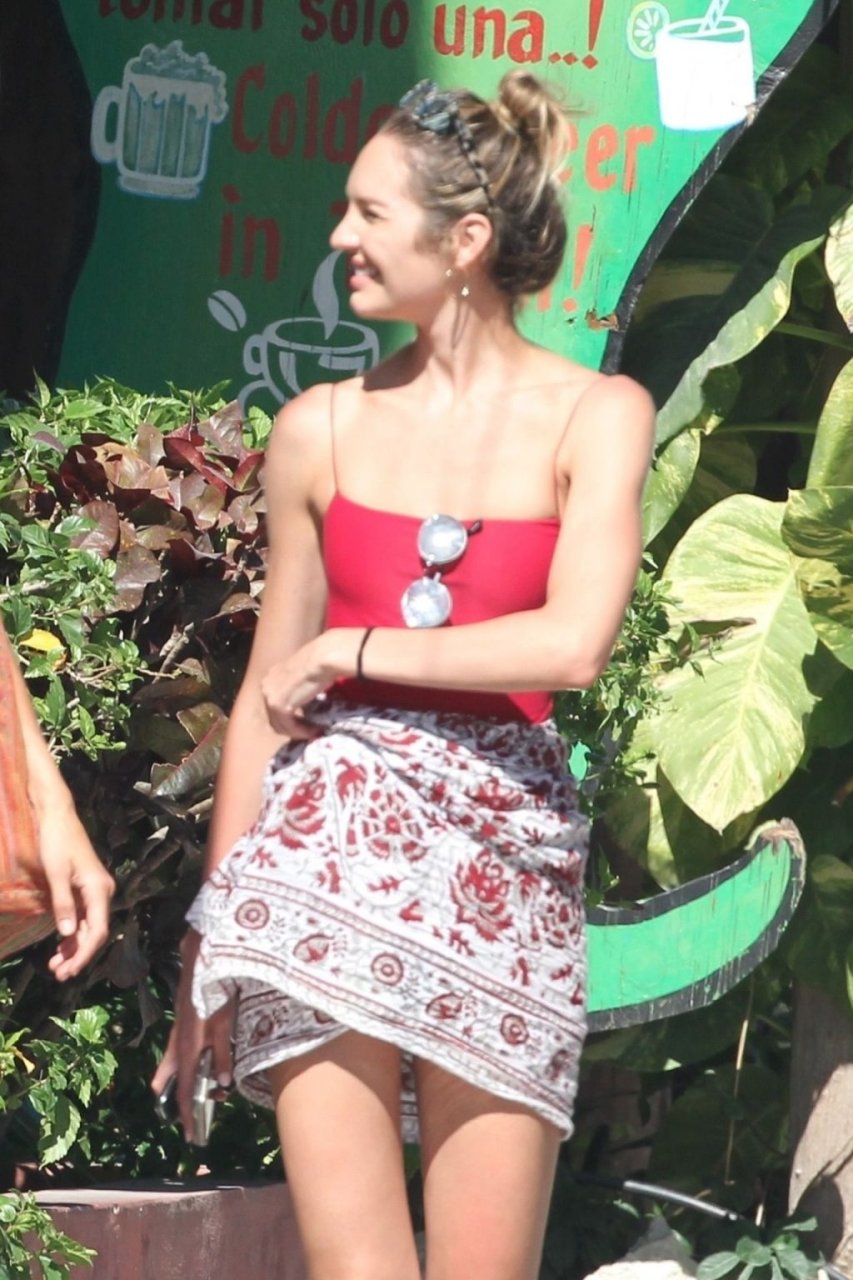 Modella sudafricana di Victoria’s Secret, Candice Swanepoel è accompagnata da amici per una passeggiata a Tulum, 27/03/2019. Candice, che indossa una gonna da spiaggia jacquard rossa e bianca, cammina accanto ai suoi amici mentre il gruppo esplora la terraferma.