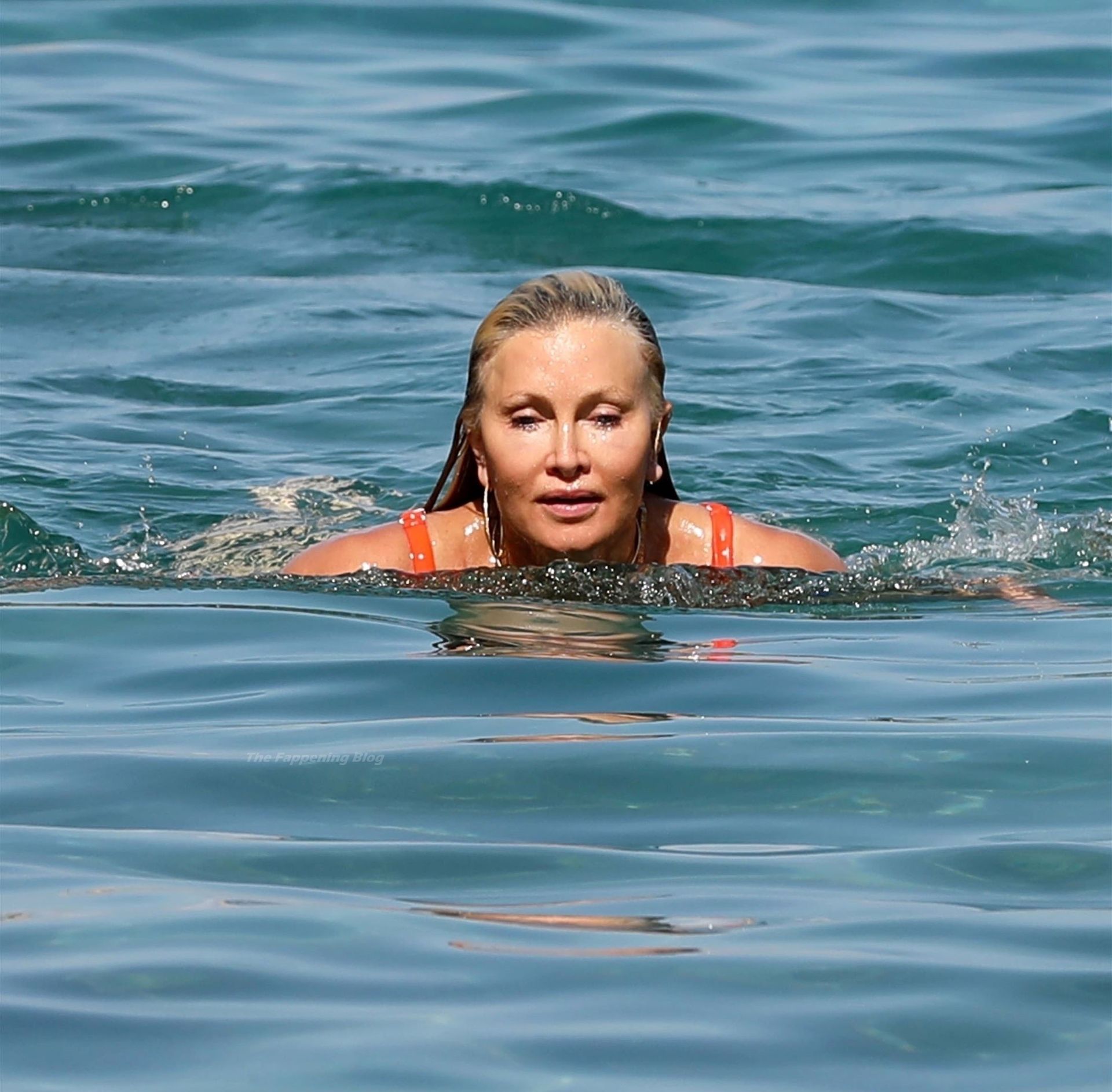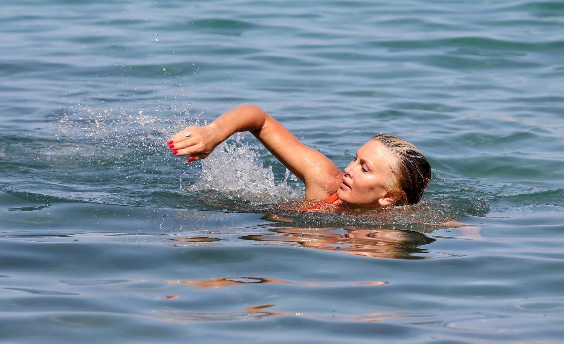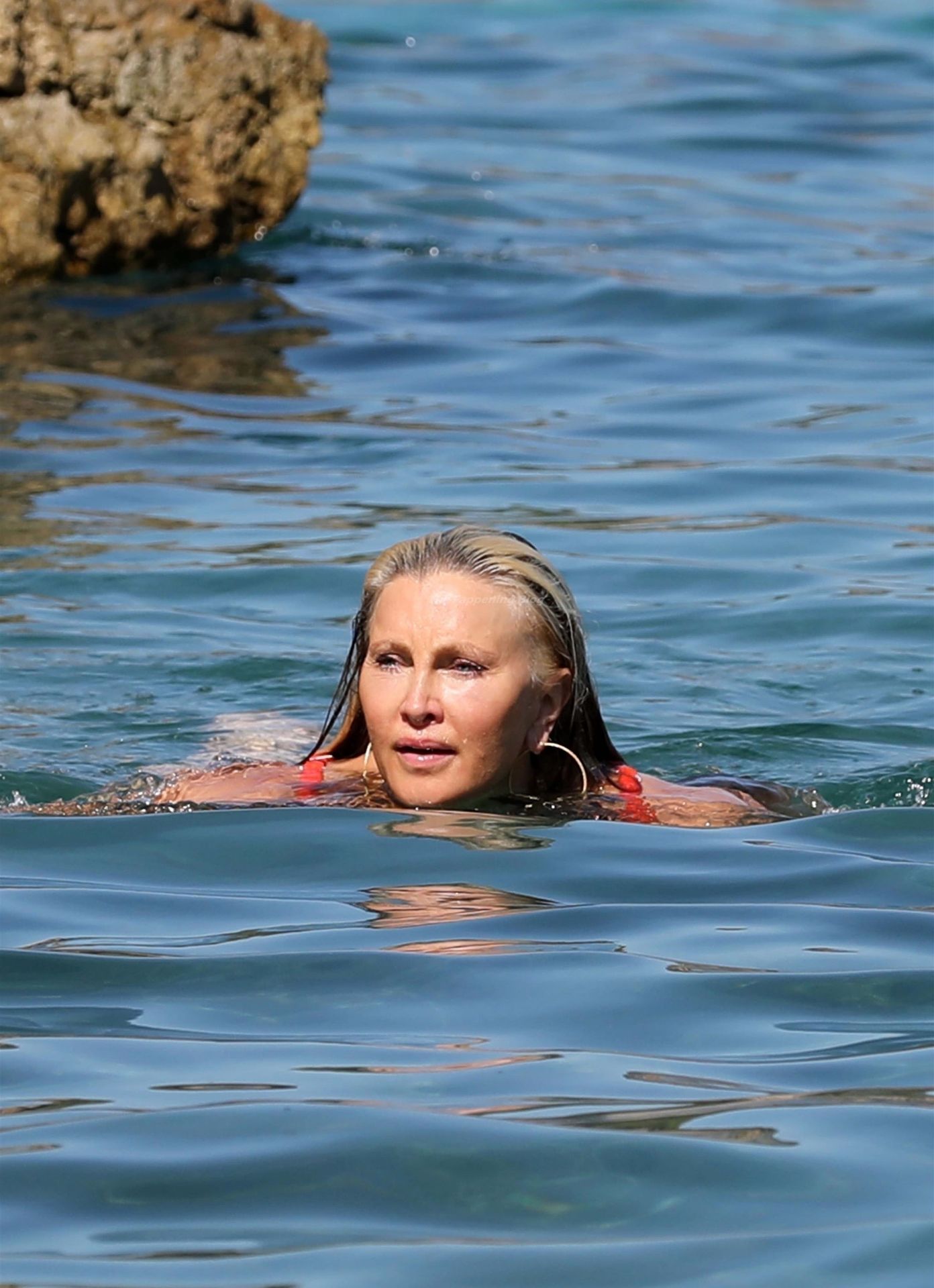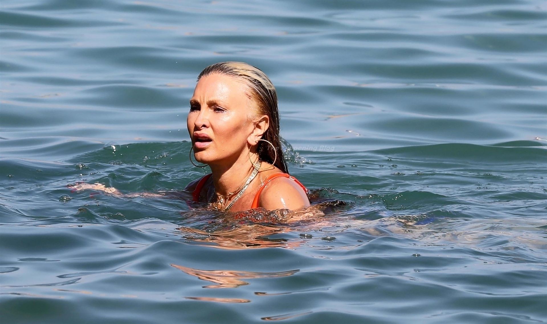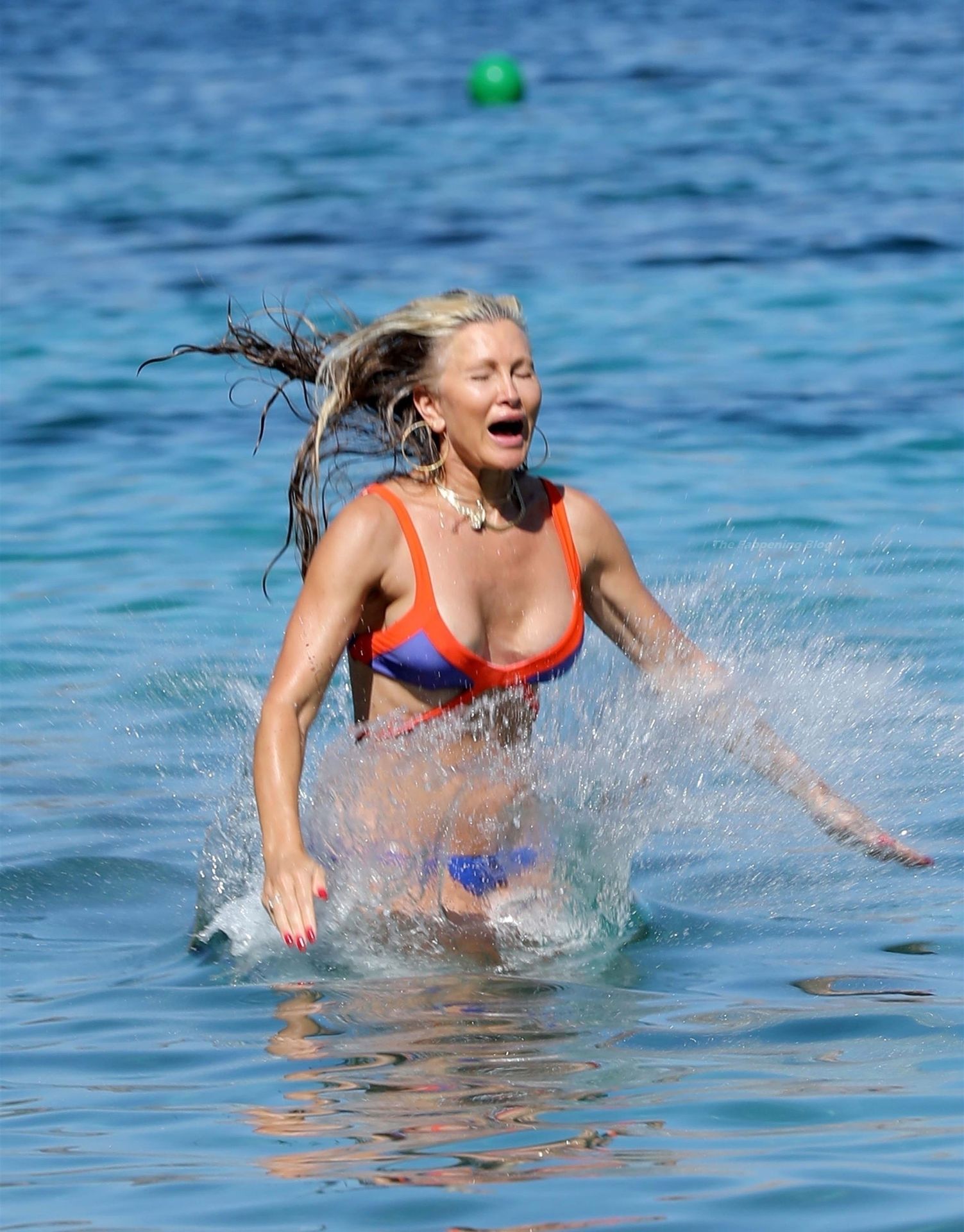 Caprice appariva sensuale mentre indossava il suo sexy bikini blu e rosso e si tuffava nelle acque prima di saltare dalle rocce e godersi una nuotata nel mare caldo, mentre la star sexy si divertiva un po’ al sole durante il caldo torrido spagnolo.