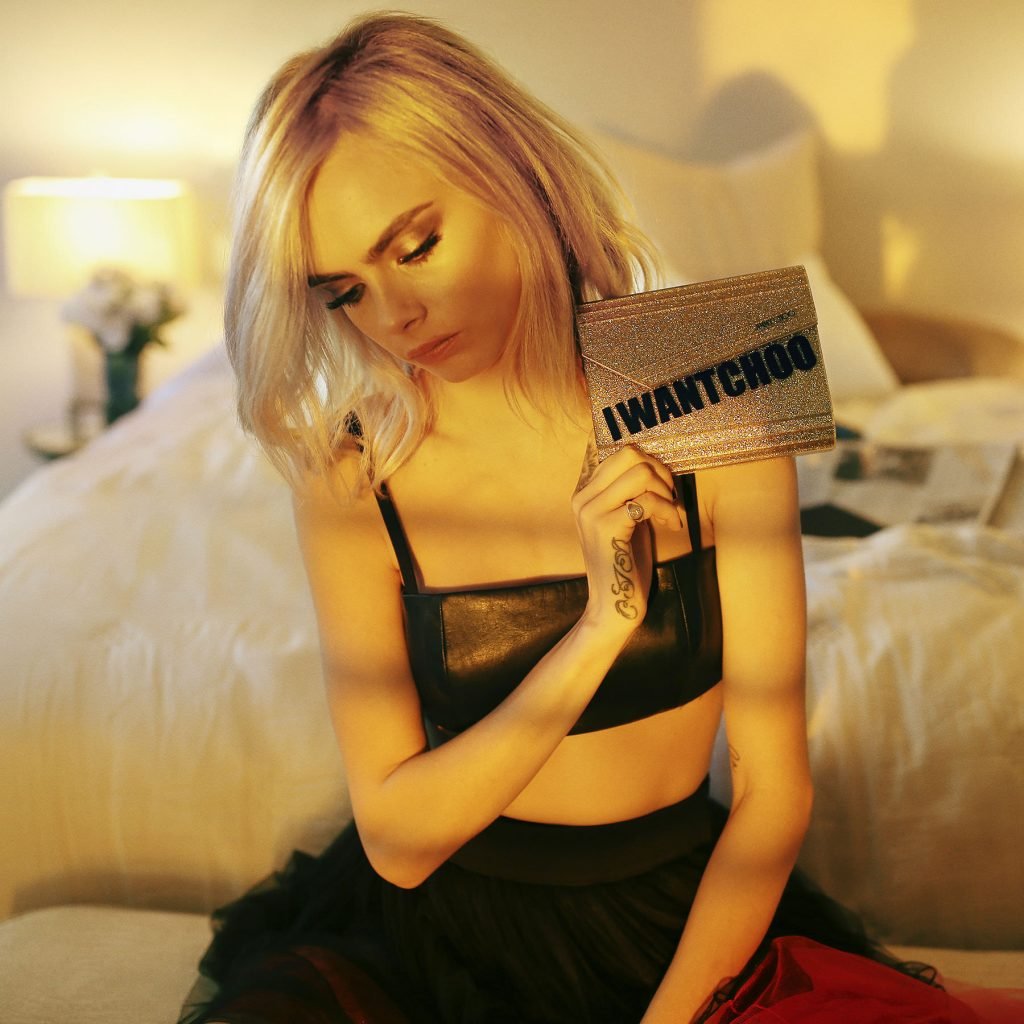Modella e attrice Cara Delevingne posa per la Campagna Holiday 2017 di Jimmy Choo.
