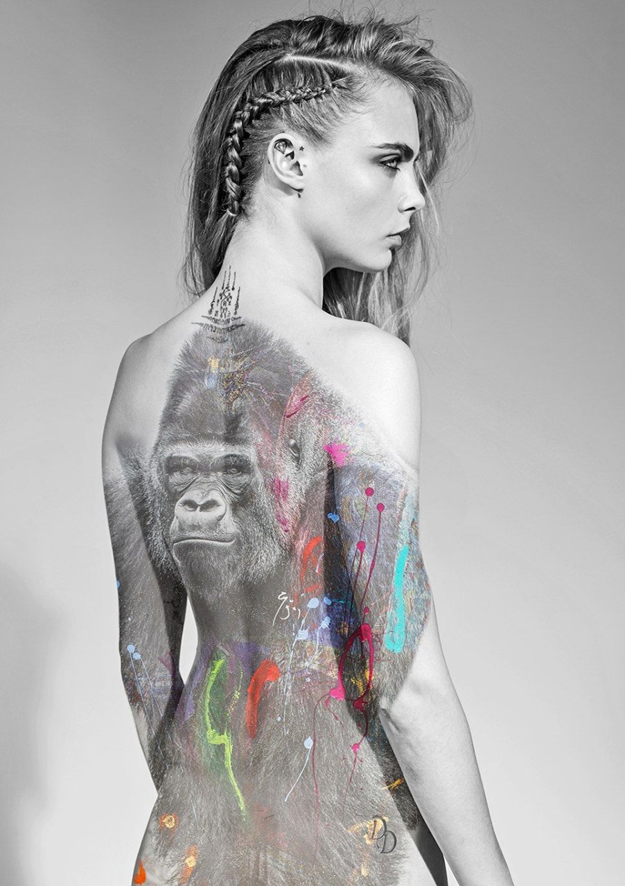 Nuove foto sexy photoshoppate di Cara Delevingne nella campagna “I’m not a Trophy” (giugno 2016). Come un body art… Cara Delevingne è una modella inglese. Età: 23 (12 agosto 1992). Altezza 177 cm.
