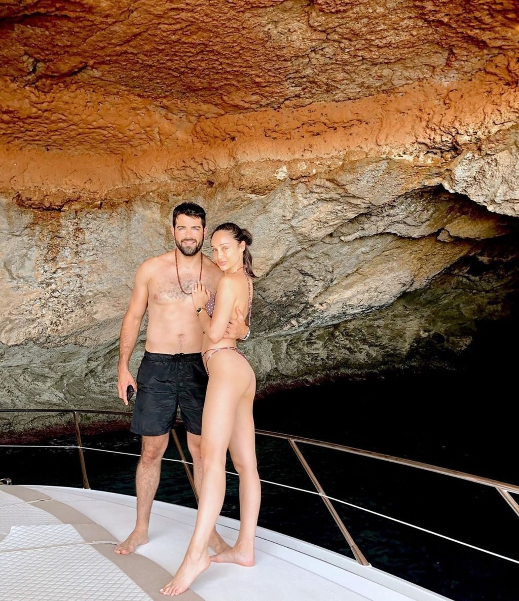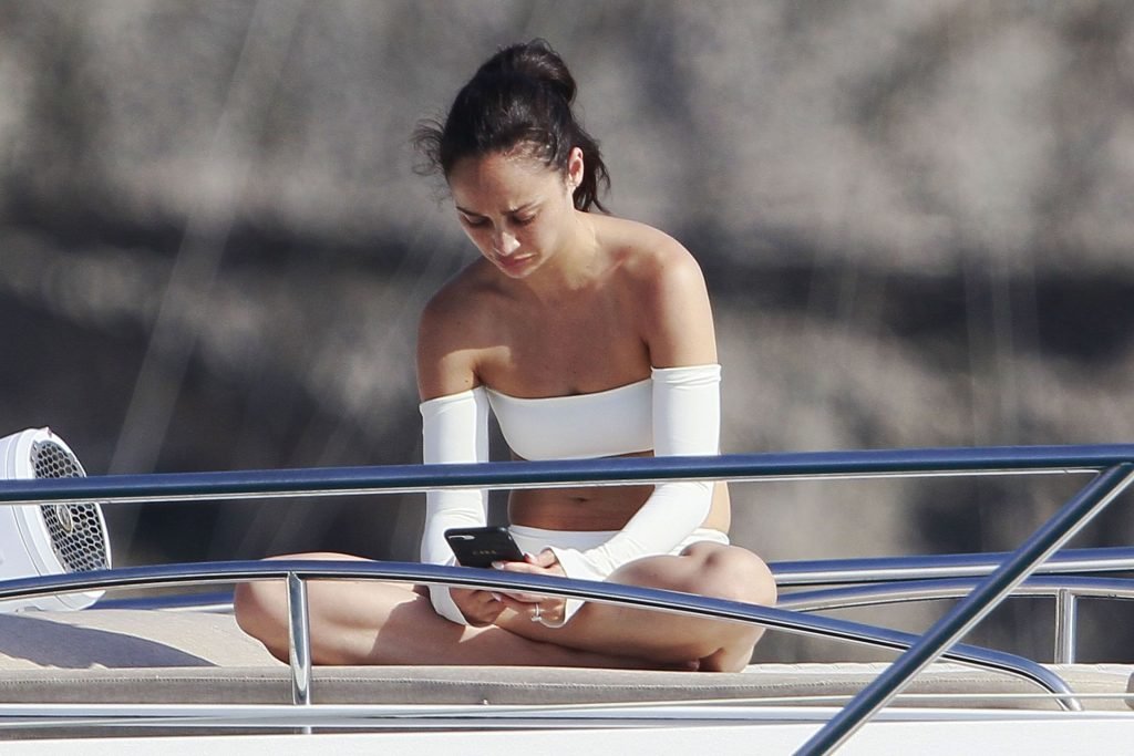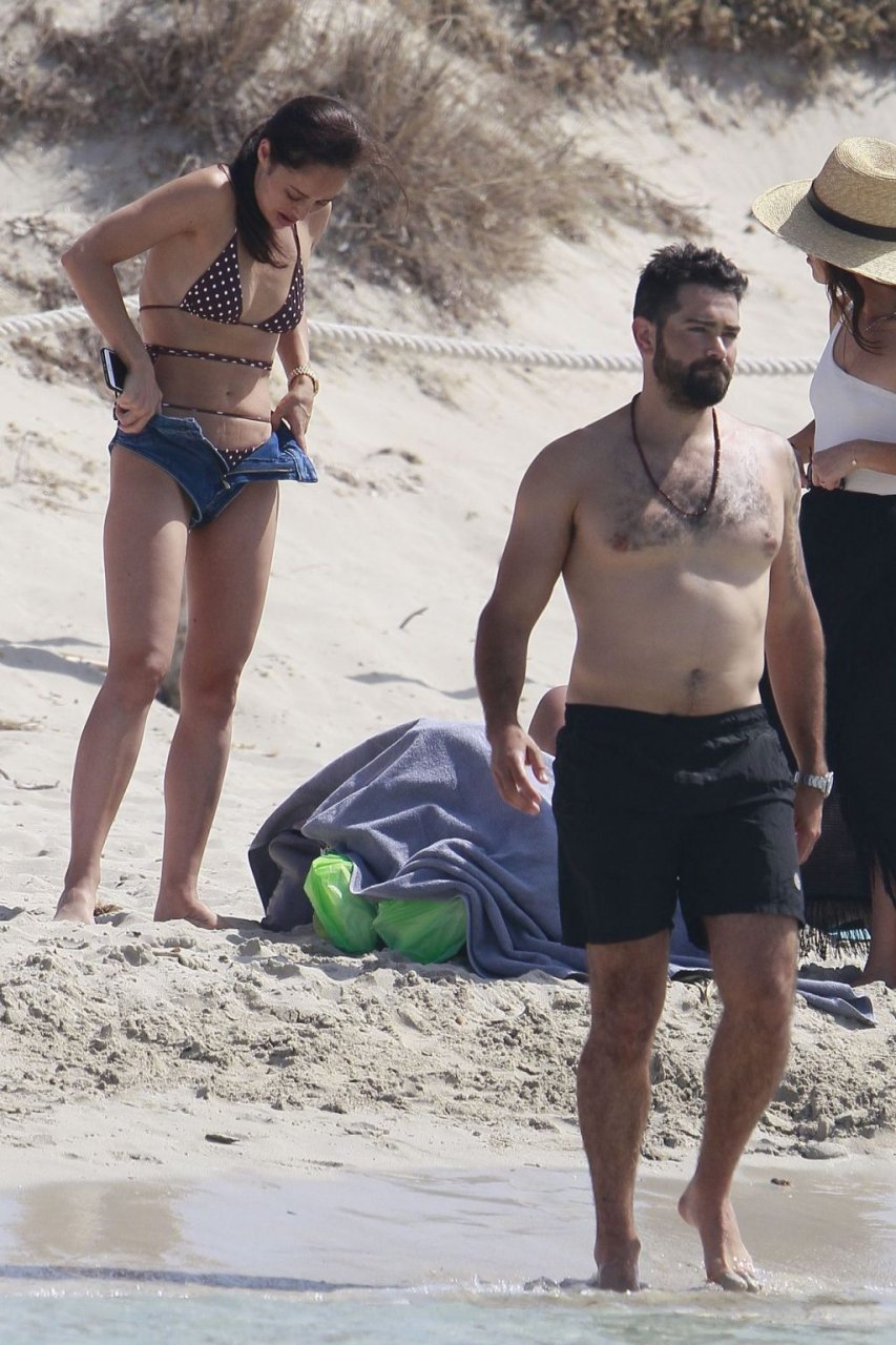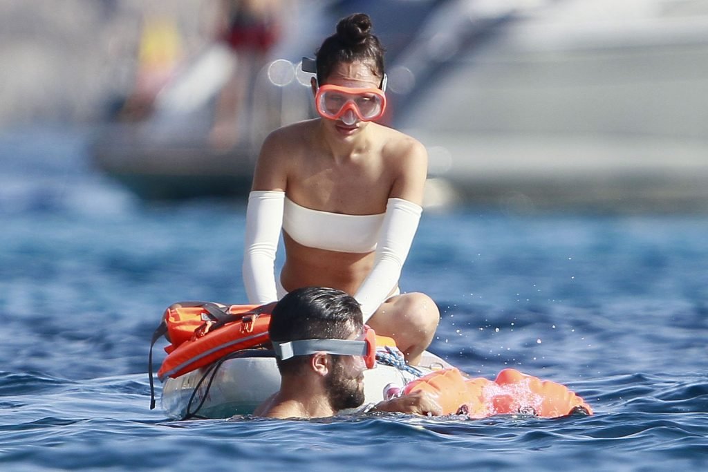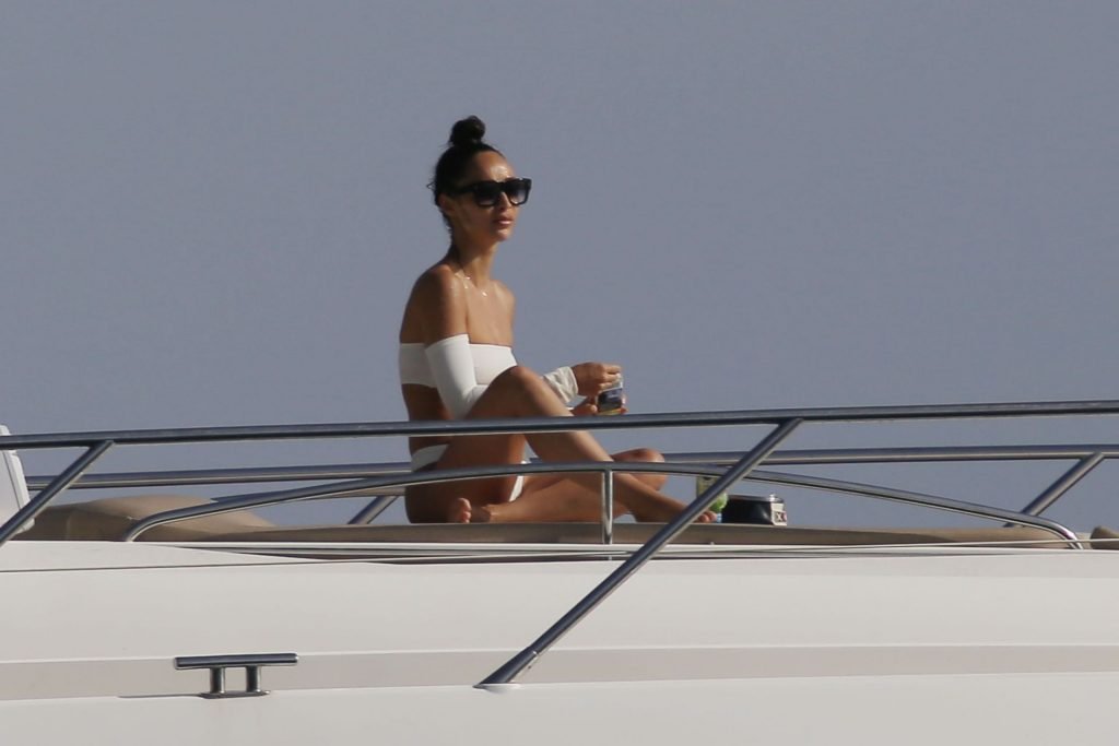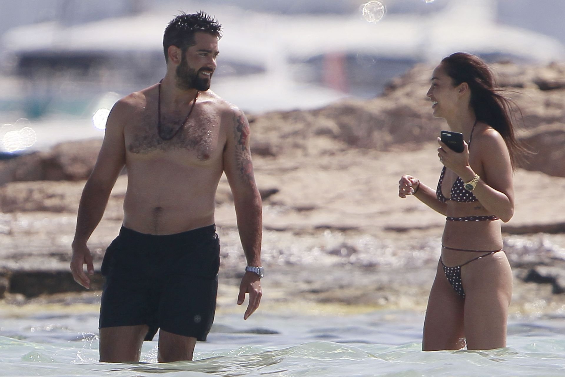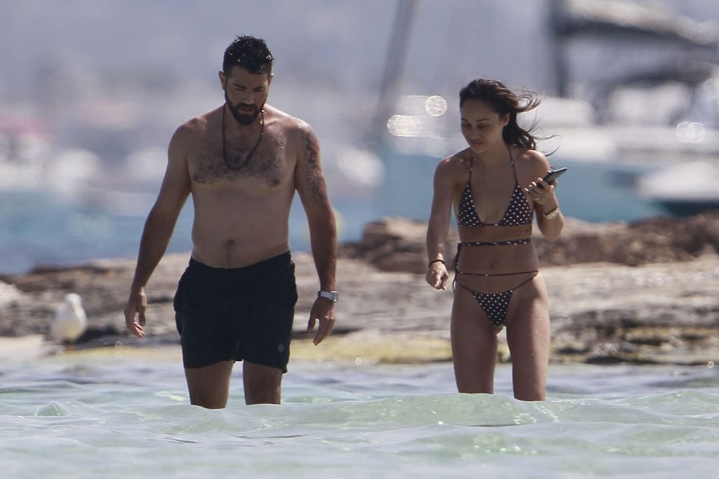 L’attrice cinematografica Cara Santana e Jesse Metcalfe vanno a fare paddle-boarding insieme alla fine di una lunga e rilassante giornata in spiaggia a Formentera, Spagna, 21/07/2019.