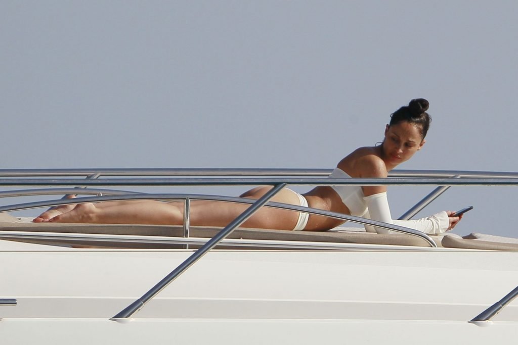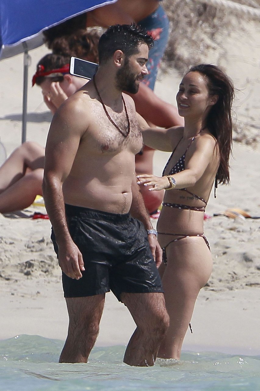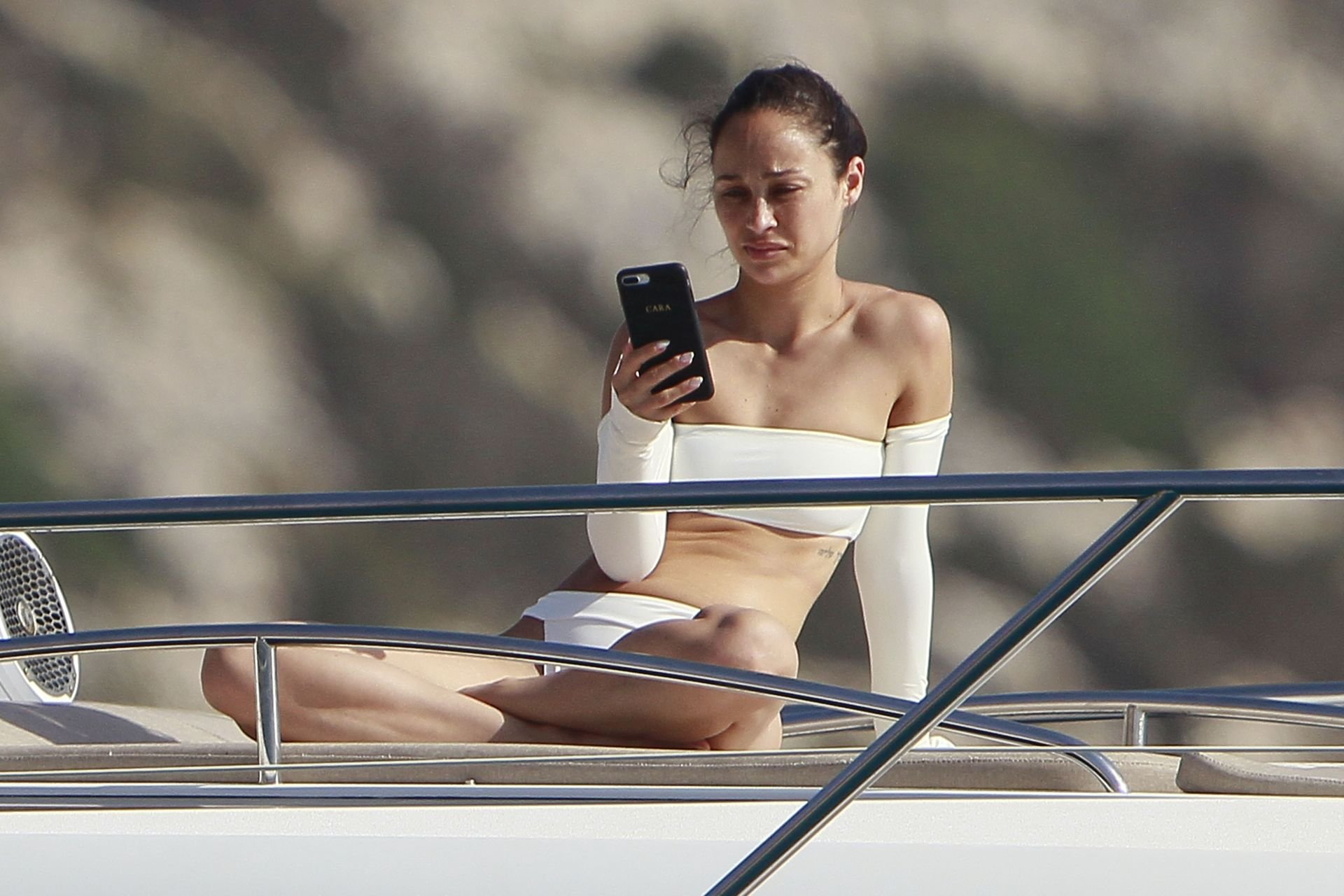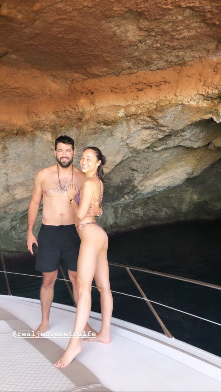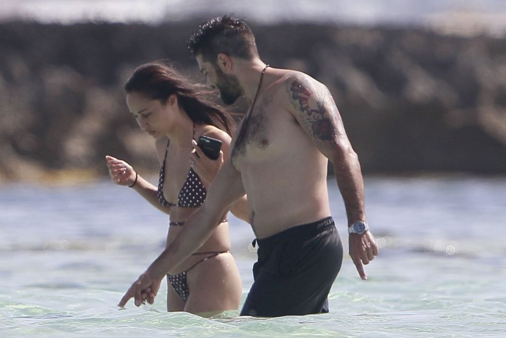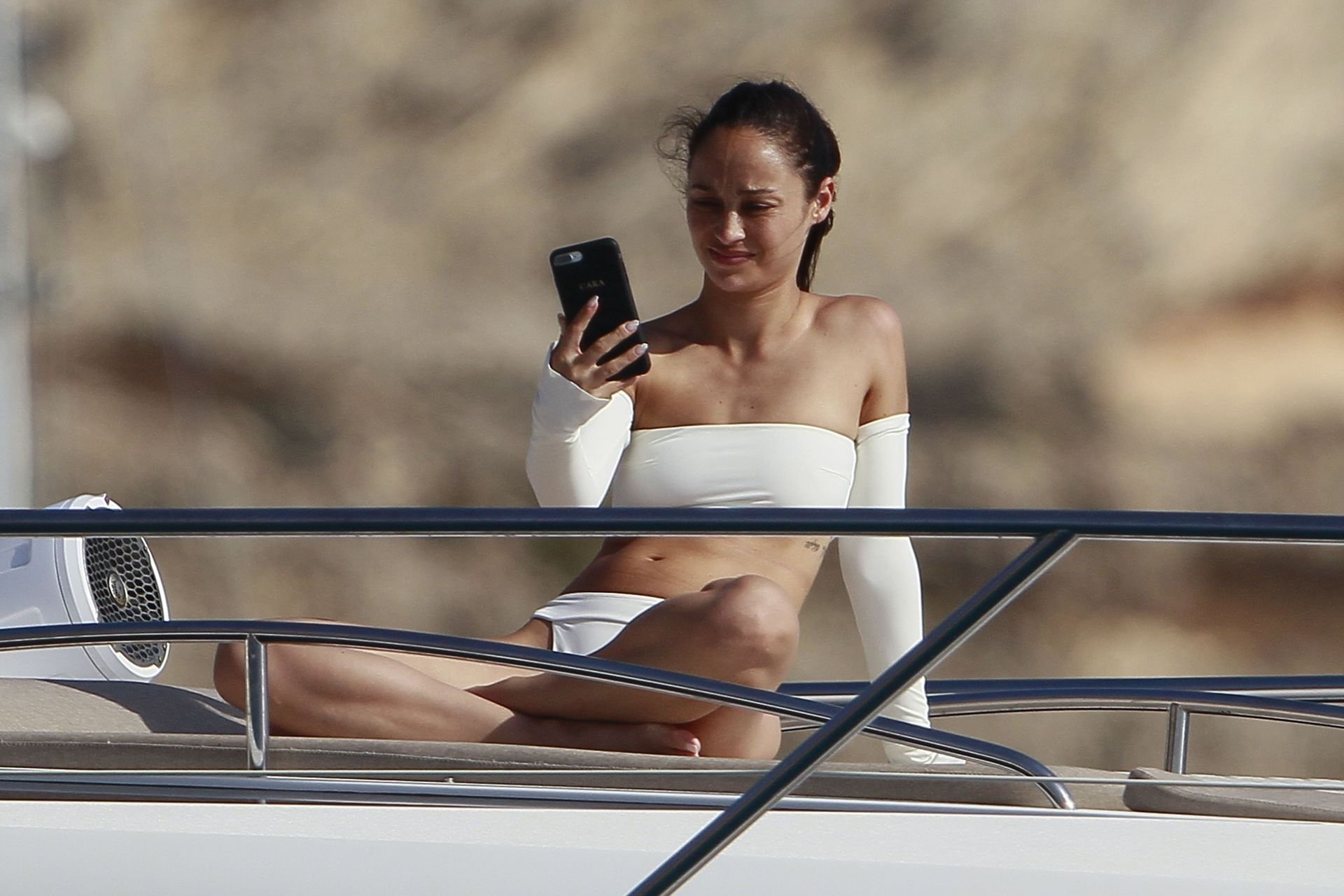 L’attrice cinematografica Cara Santana e Jesse Metcalfe vanno a fare paddle-boarding insieme alla fine di una lunga e rilassante giornata in spiaggia a Formentera, Spagna, 21/07/2019.