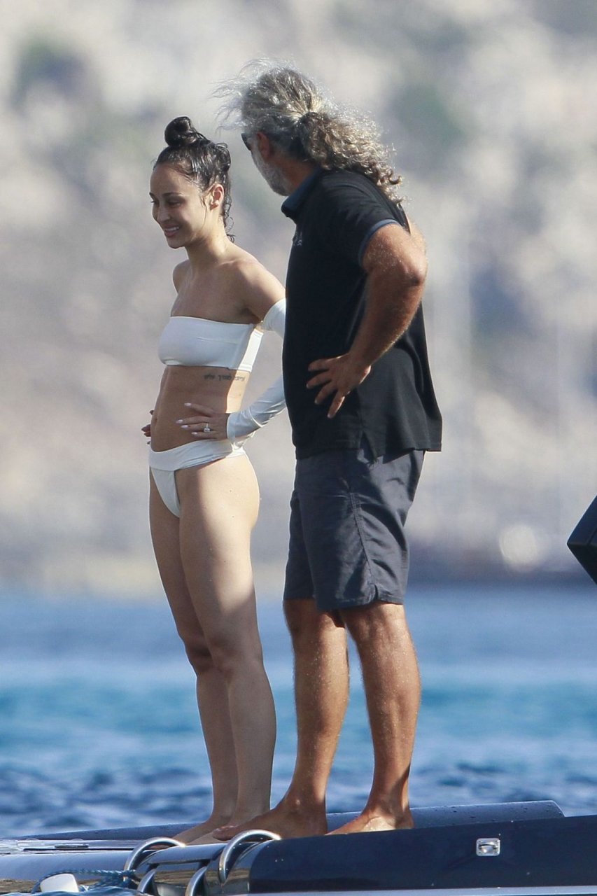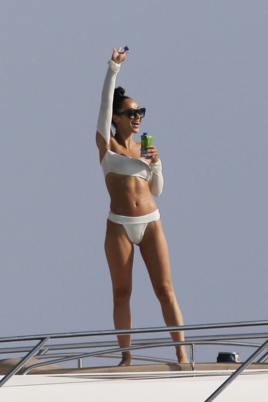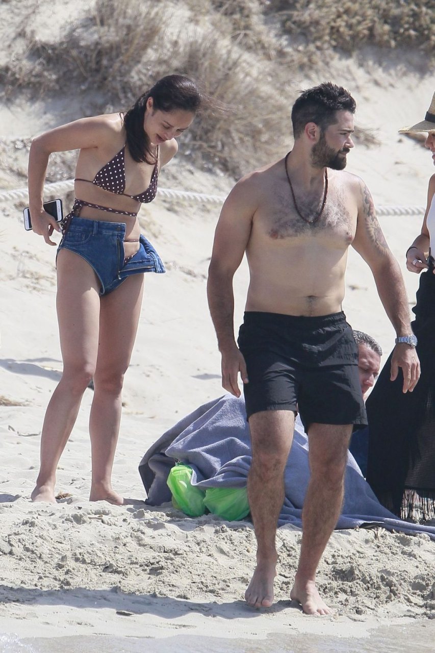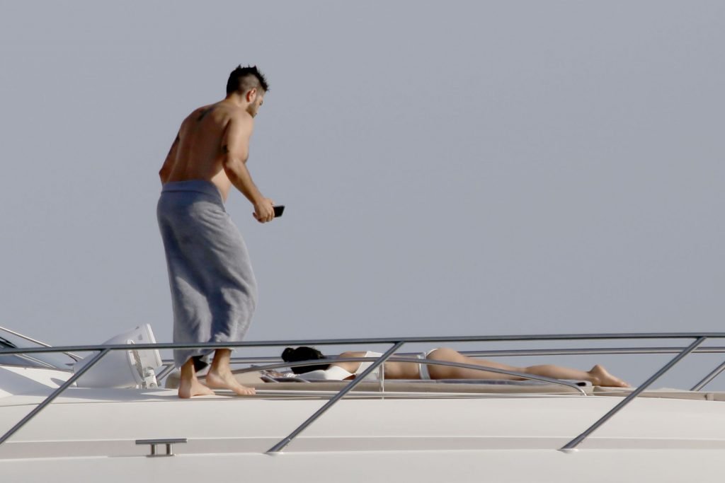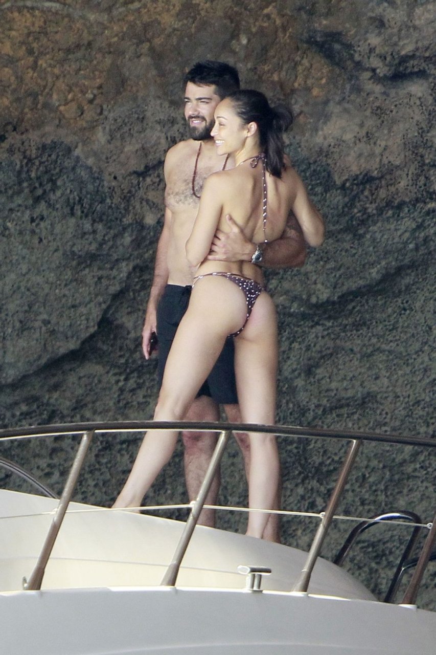 L’attrice cinematografica Cara Santana e Jesse Metcalfe vanno a fare paddle-boarding insieme alla fine di una lunga e rilassante giornata in spiaggia a Formentera, Spagna, 21/07/2019.