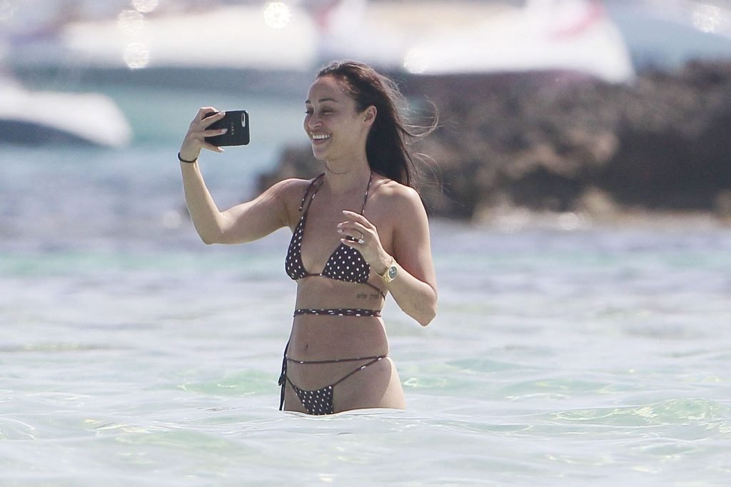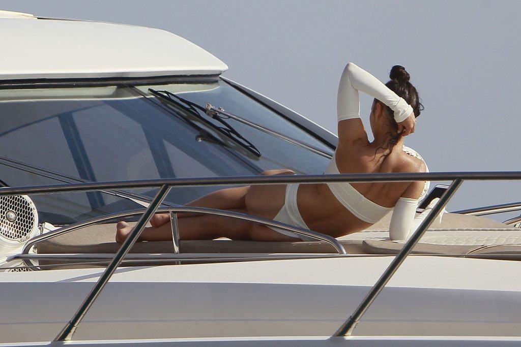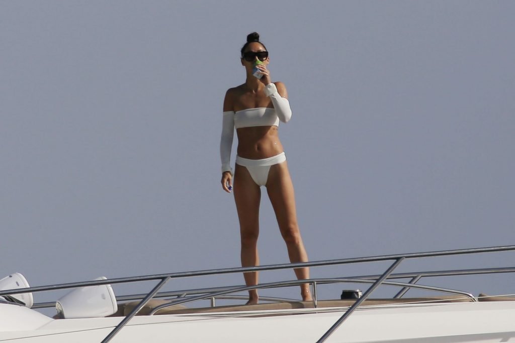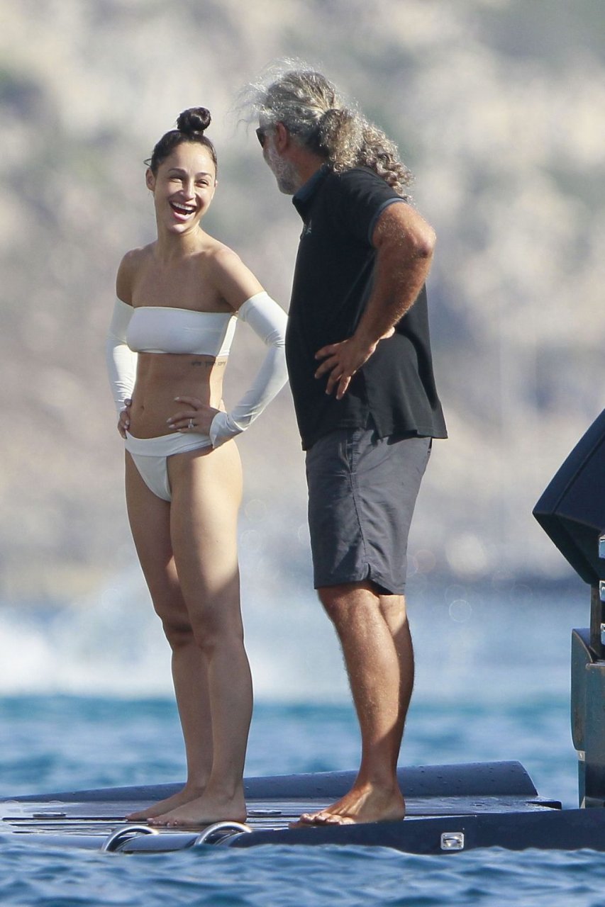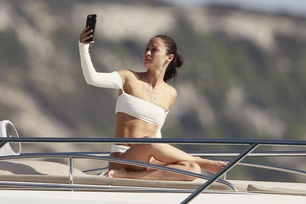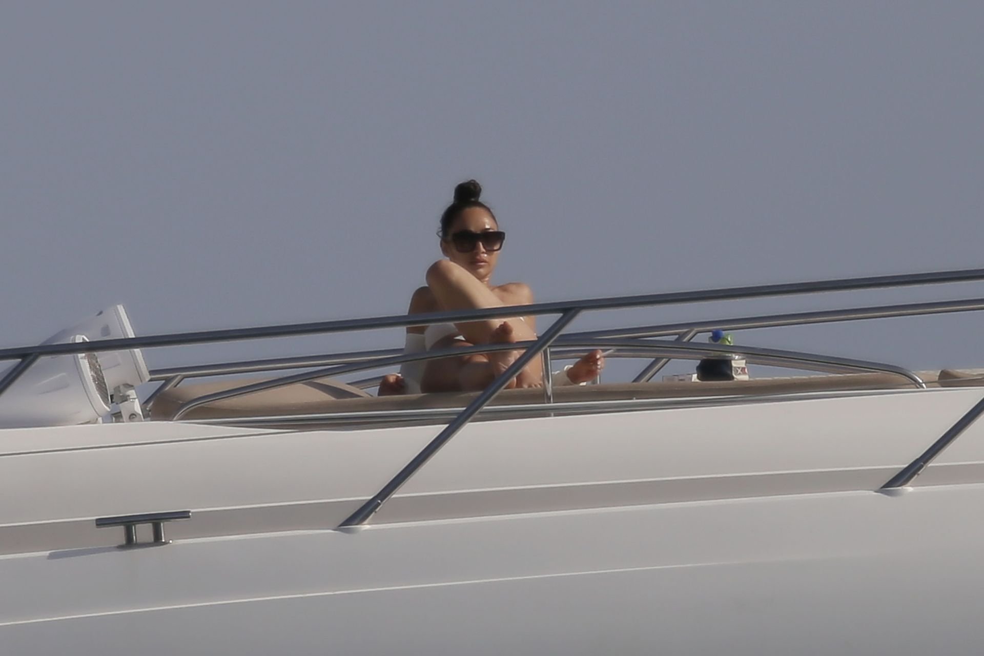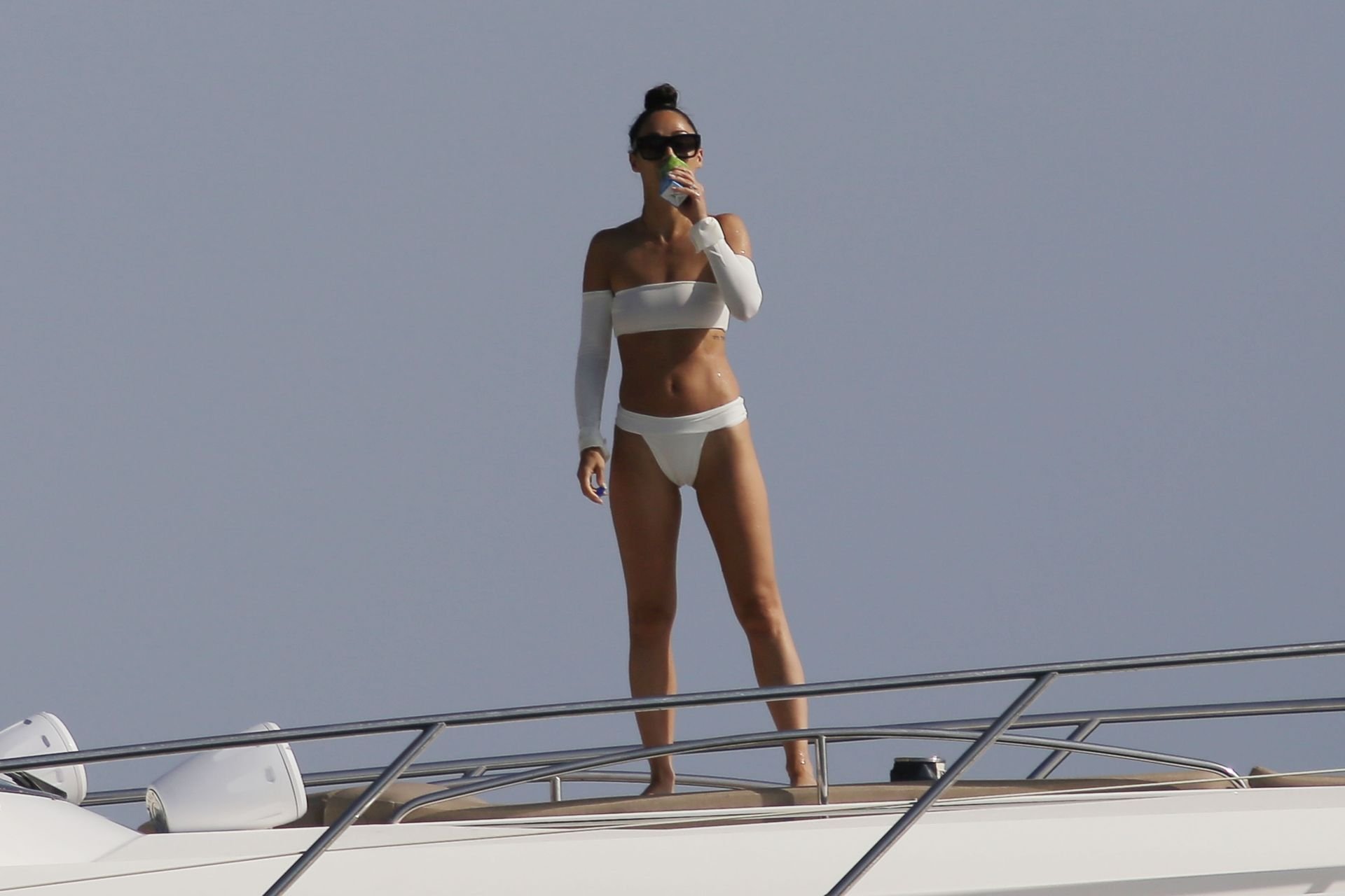 L’attrice cinematografica Cara Santana e Jesse Metcalfe vanno a fare paddle-boarding insieme alla fine di una lunga e rilassante giornata in spiaggia a Formentera, Spagna, 21/07/2019.