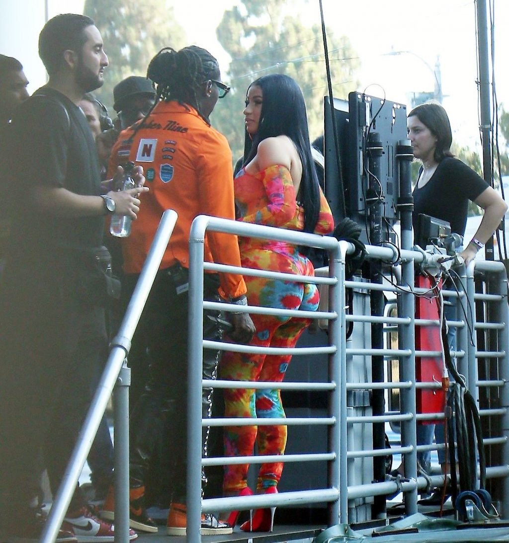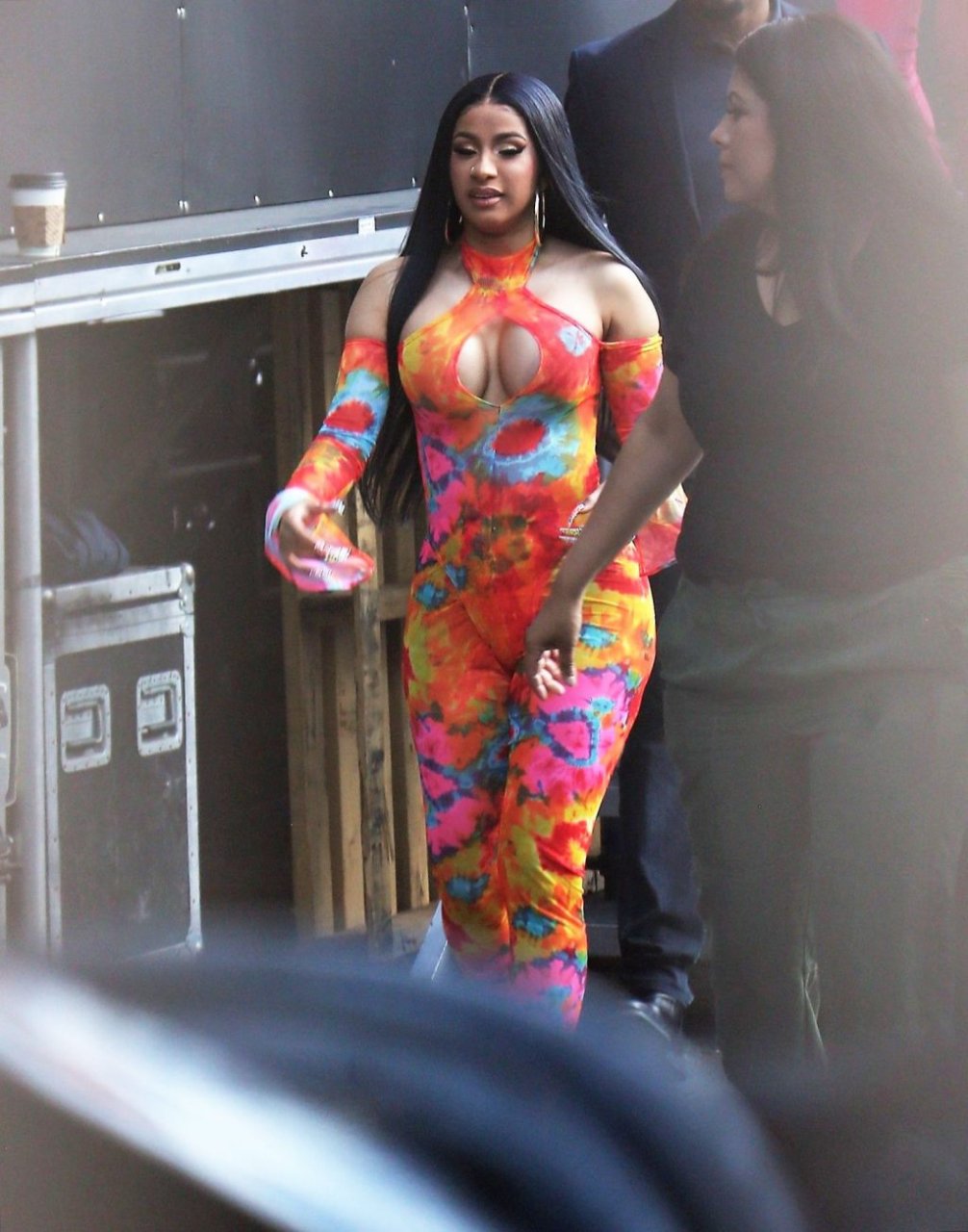 Cardi B fa battere i cuori nella sua tuta psichedelica colorata mentre si prepara a salire sul palco di Jimmy Kimmel Live con il marito Offset. La rapper di 36 anni e suo marito hanno un figlio insieme, una bambina di un anno, Kulture – Hollywood, 17/07/2019.