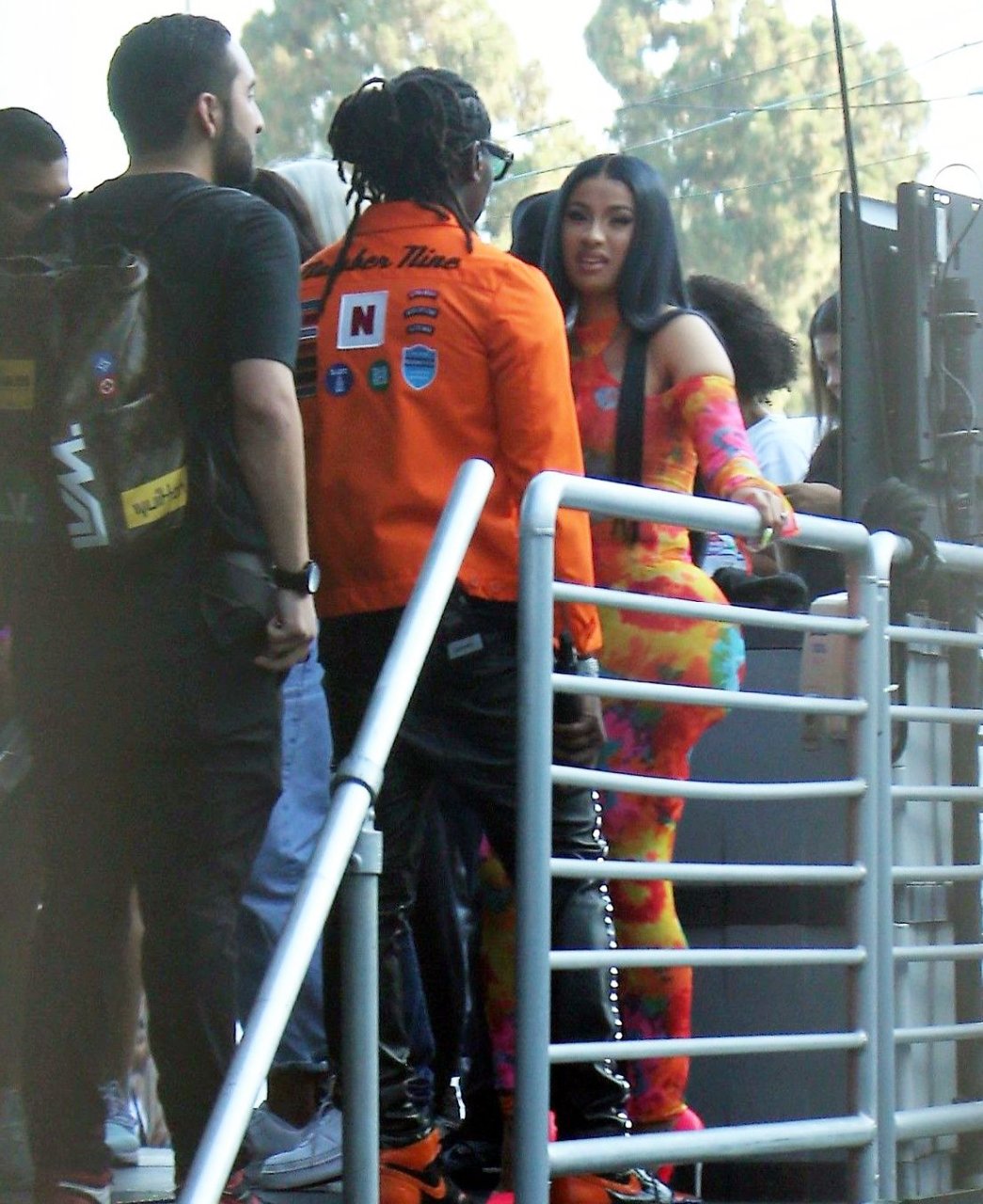 Cardi B fa battere i cuori nella sua tuta psichedelica colorata mentre si prepara a salire sul palco di Jimmy Kimmel Live con il marito Offset. La rapper di 36 anni e suo marito hanno un figlio insieme, una bambina di un anno, Kulture – Hollywood, 17/07/2019.