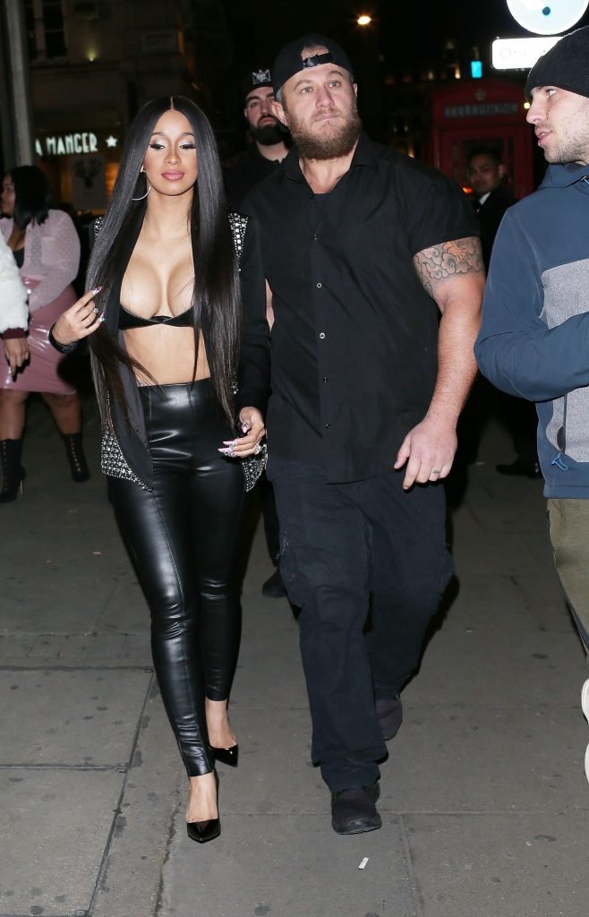 Cantante nominata ai Grammy Belcalis Almanzar (aka Cardi B) che mostra il décolleté mentre si rilassa al Tape London, un club privato per soci a Mayfair, Londra, 28/11/2017.