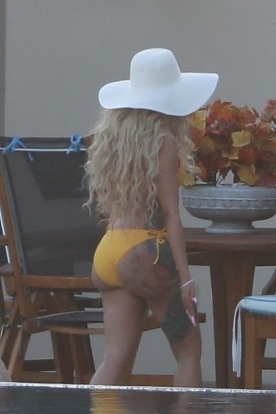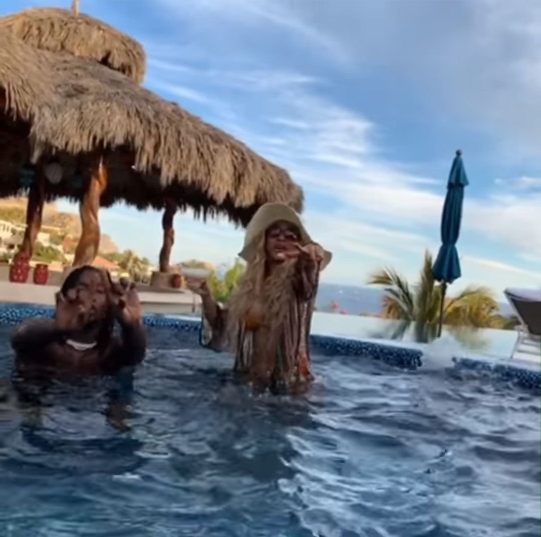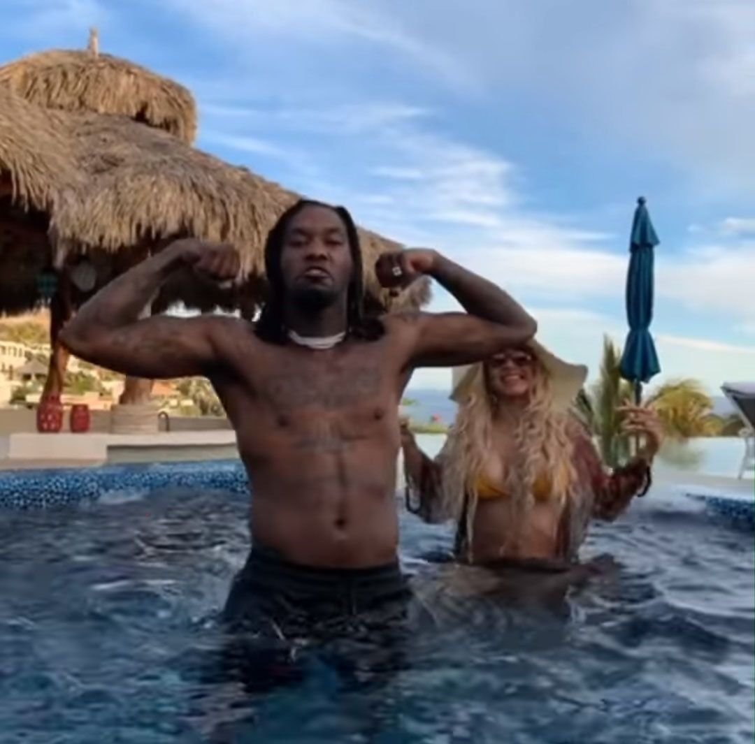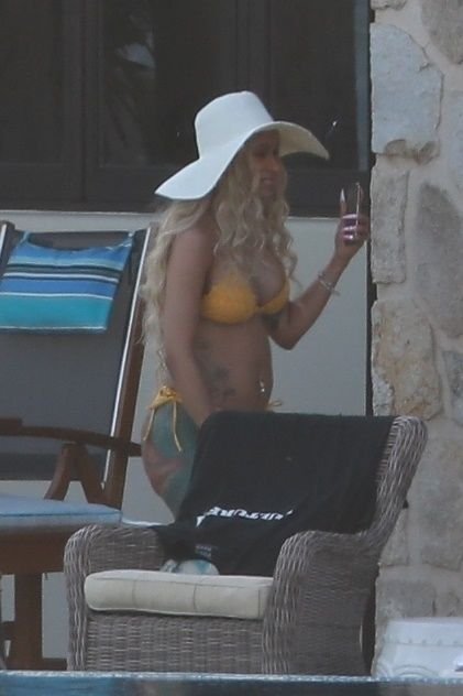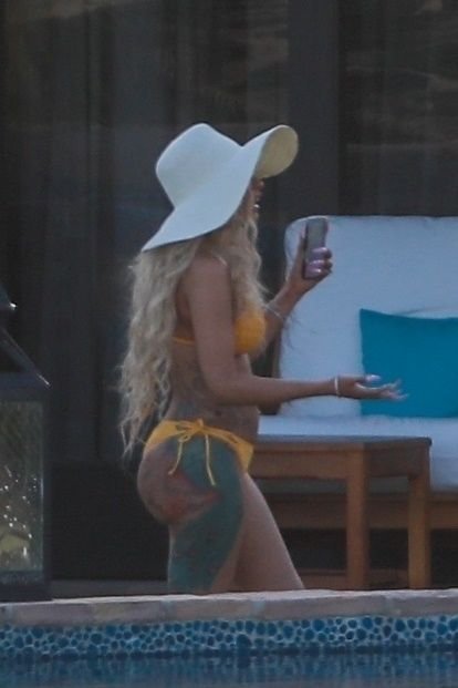Cardi B mostra le sue curve in un bikini giallo a stringhe mentre continua la sua fuga a Cabo San Lucas con il partner on-off Offset, 03/05/2019. La cantante sembrava stesse facendo una videochiamata con qualcuno sul suo cellulare, possibilmente Offset, che si esibirà con i Migos come parte del JusCollege’s Cabo Spring Break 2019.