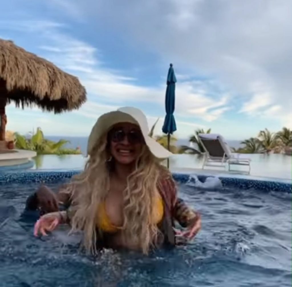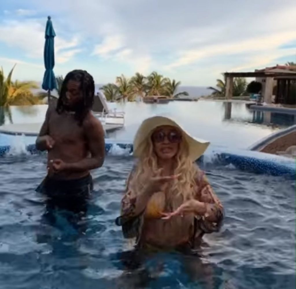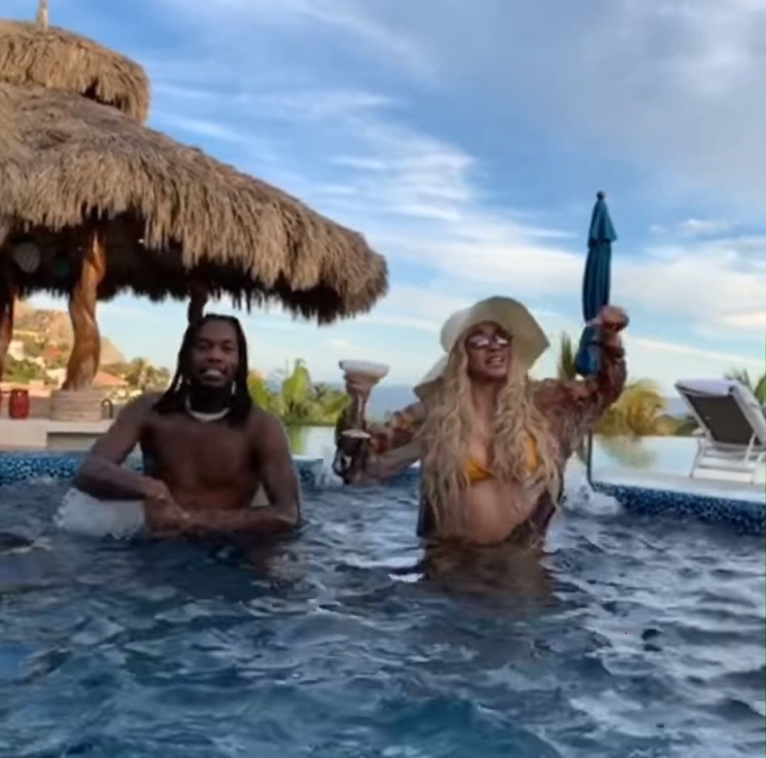 Cardi B mostra le sue curve in un bikini giallo a stringhe mentre continua la sua fuga a Cabo San Lucas con il partner on-off Offset, 03/05/2019. La cantante sembrava stesse facendo una videochiamata con qualcuno sul suo cellulare, possibilmente Offset, che si esibirà con i Migos come parte del JusCollege’s Cabo Spring Break 2019.