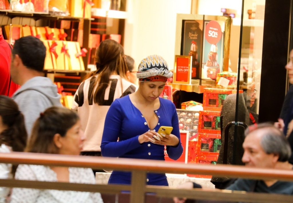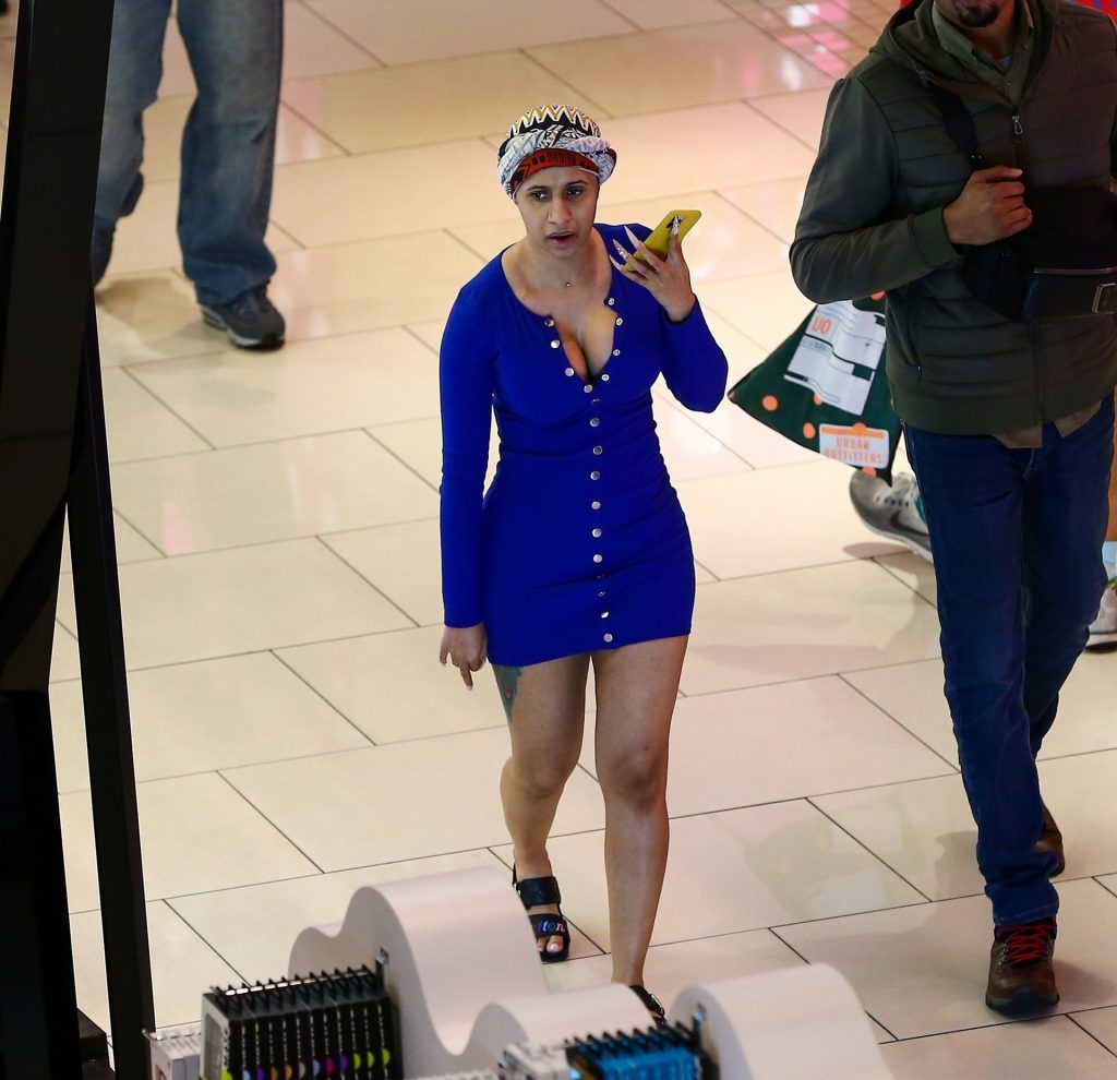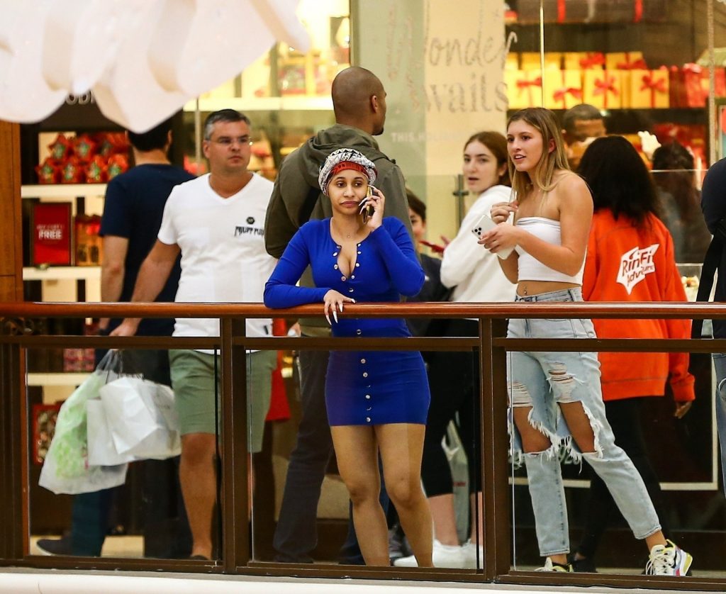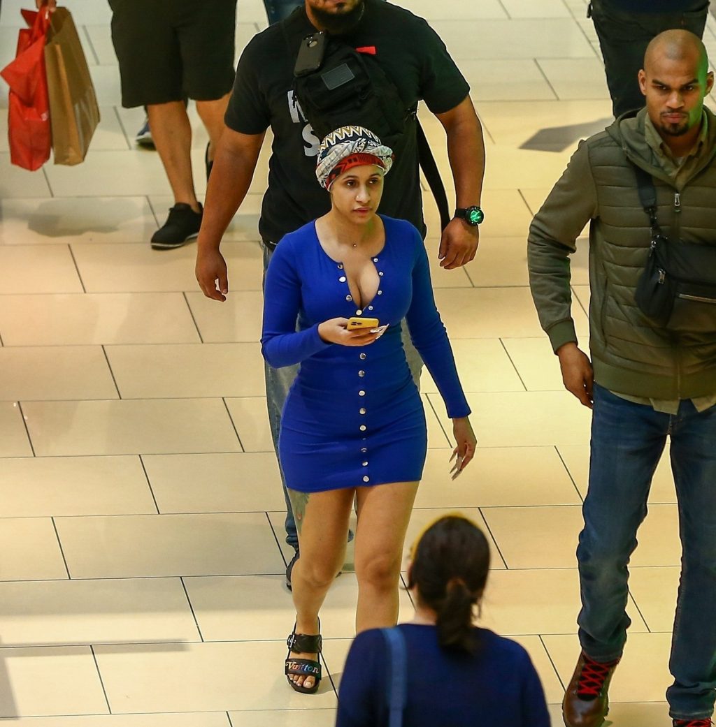 Cardi B attira una folla mentre si reca al centro commerciale Aventura a Miami per fare shopping nell’ultimo weekend prima di Natale, 22/12/2019. La rapper e cantante ha mantenuto un look sobrio senza trucco e con i capelli avvolti in un semplice turbante, anche se ha mostrato le sue curve con un mini abito blu corto con scollatura profonda.