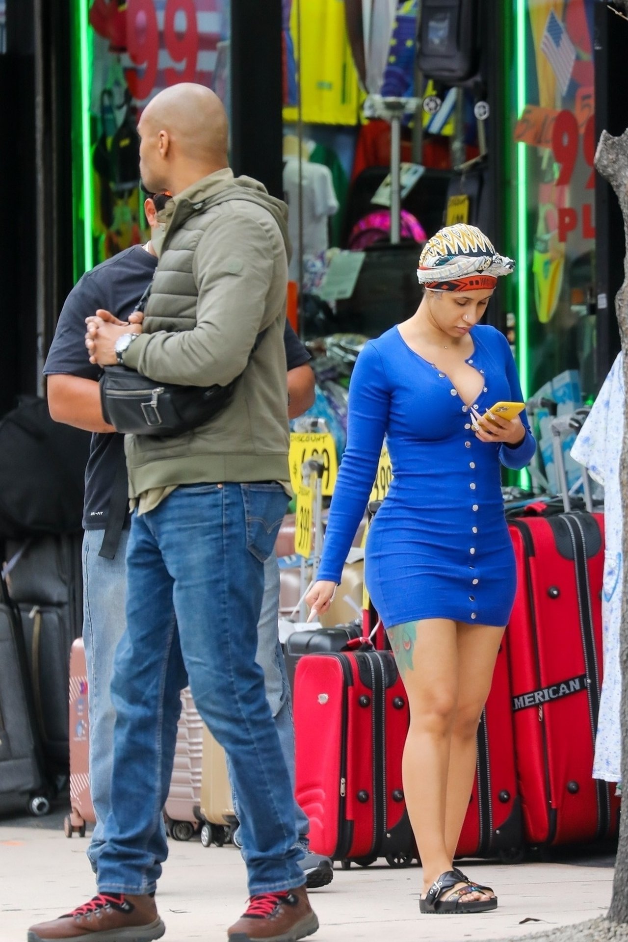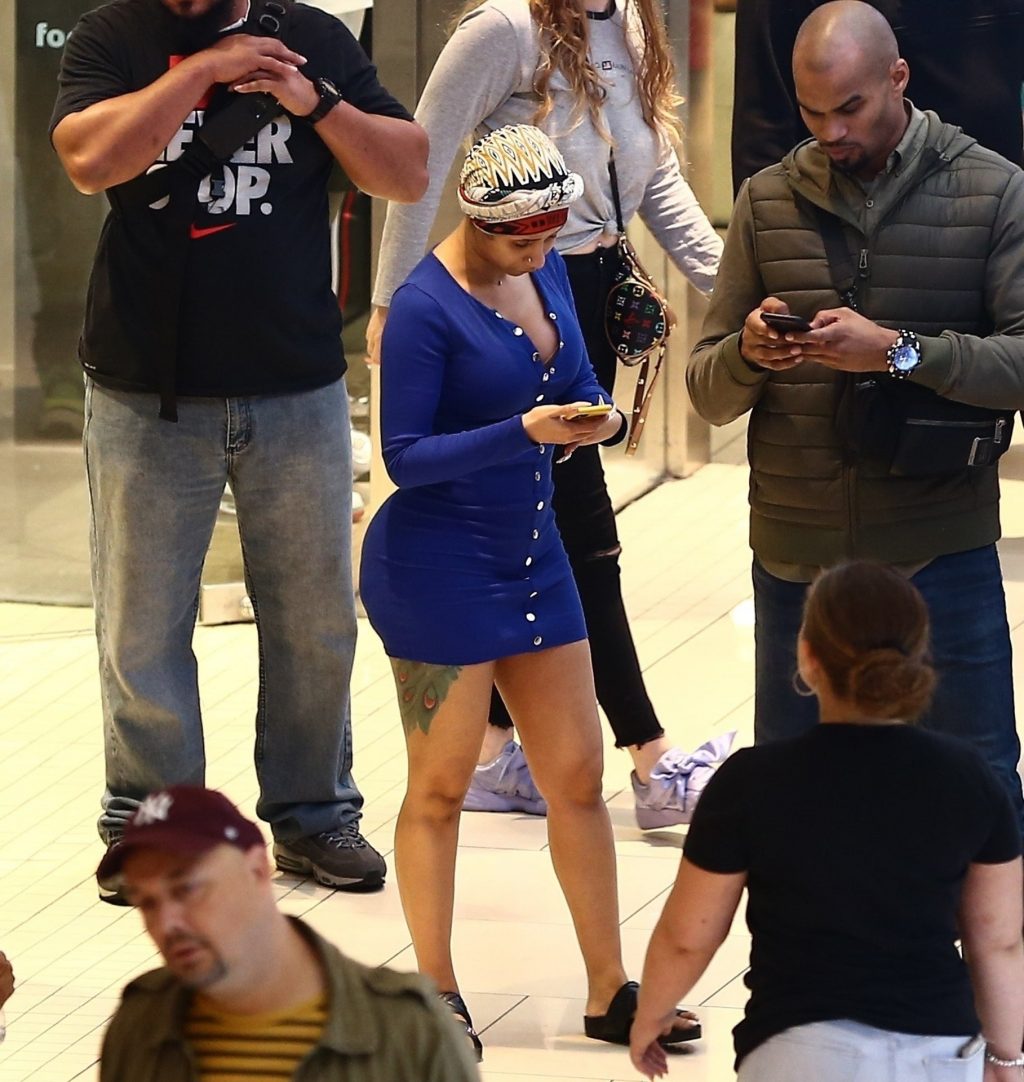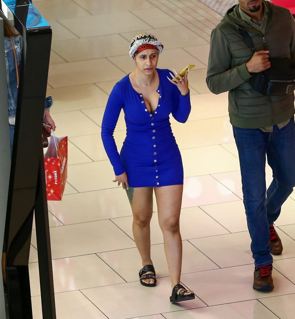 Cardi B attira una folla mentre si reca al centro commerciale Aventura a Miami per fare shopping nell’ultimo weekend prima di Natale, 22/12/2019. La rapper e cantante ha mantenuto un look sobrio senza trucco e con i capelli avvolti in un semplice turbante, anche se ha mostrato le sue curve con un mini abito blu corto con scollatura profonda.