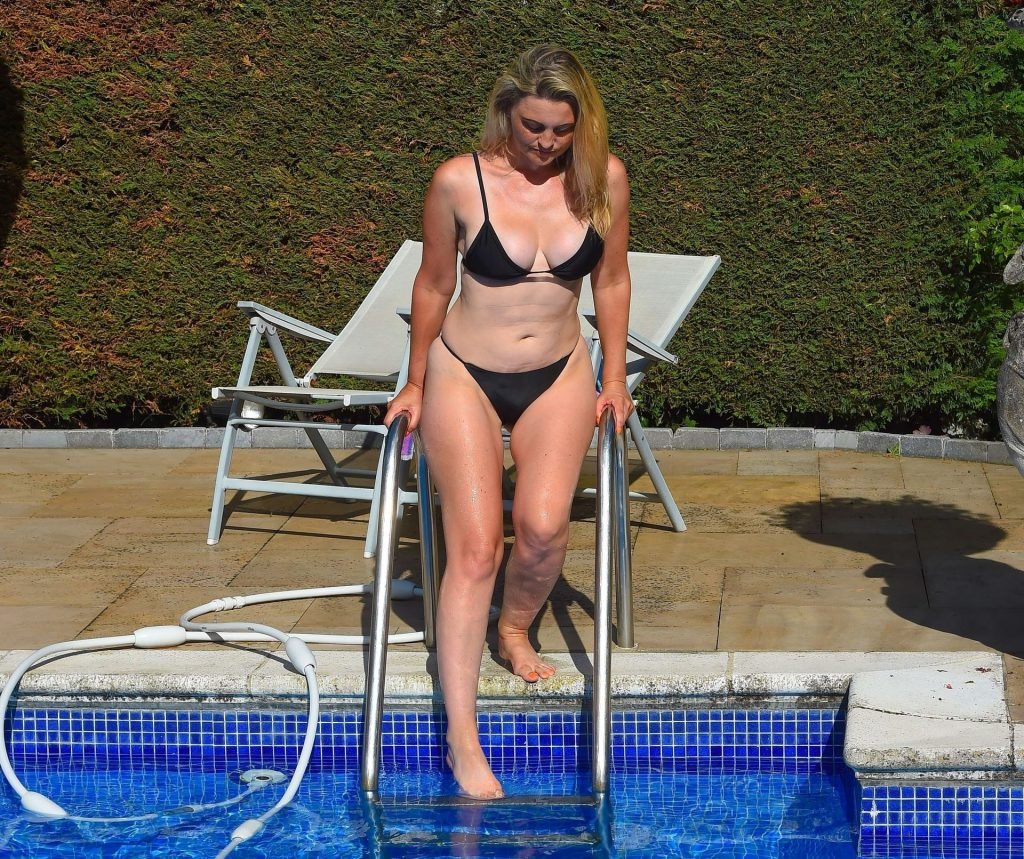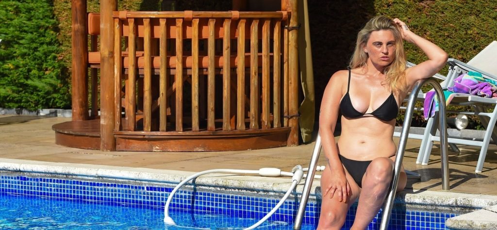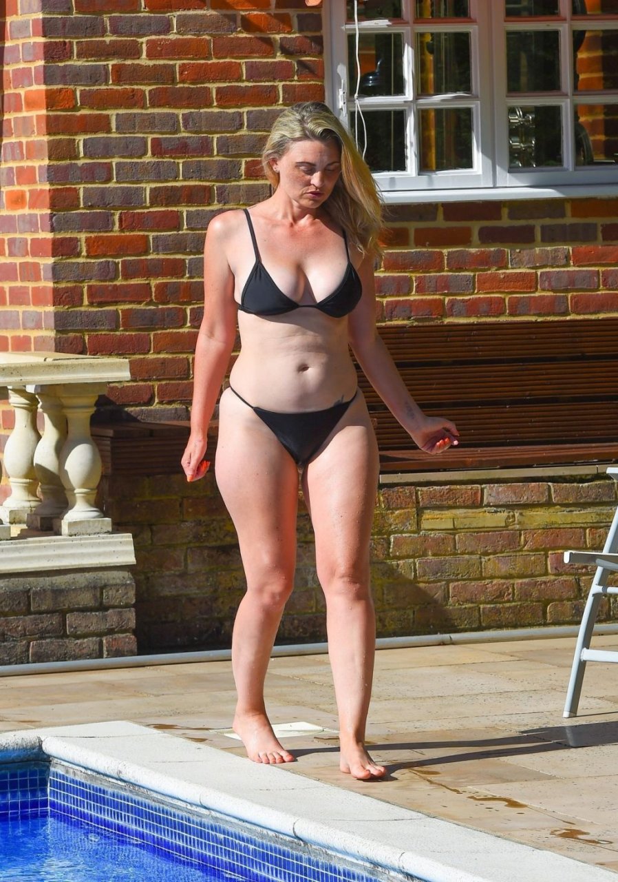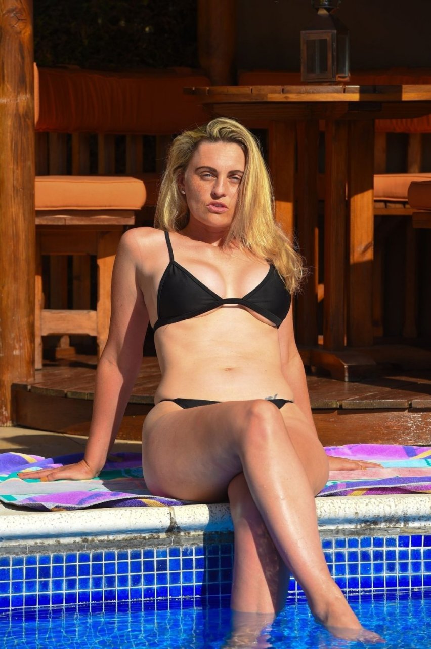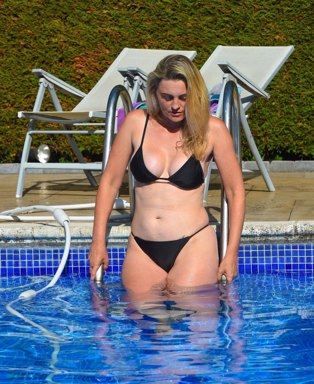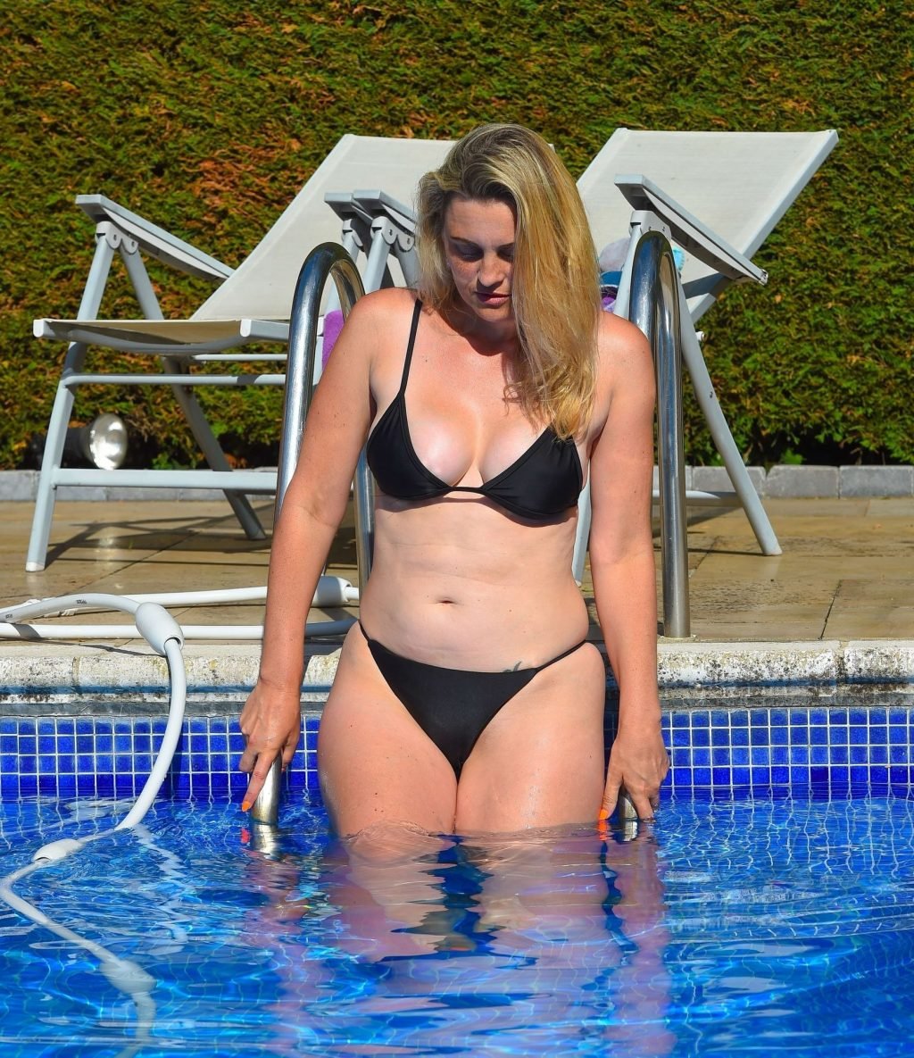 La “Donna più odiata” della Gran Bretagna, Carla Bellucci, vista mentre si abbronza all’estero a Marbella con il suo bikini nero, in mezzo a ulteriori storie sul suo intervento al naso fatto con il NHS, 10/03/2019.