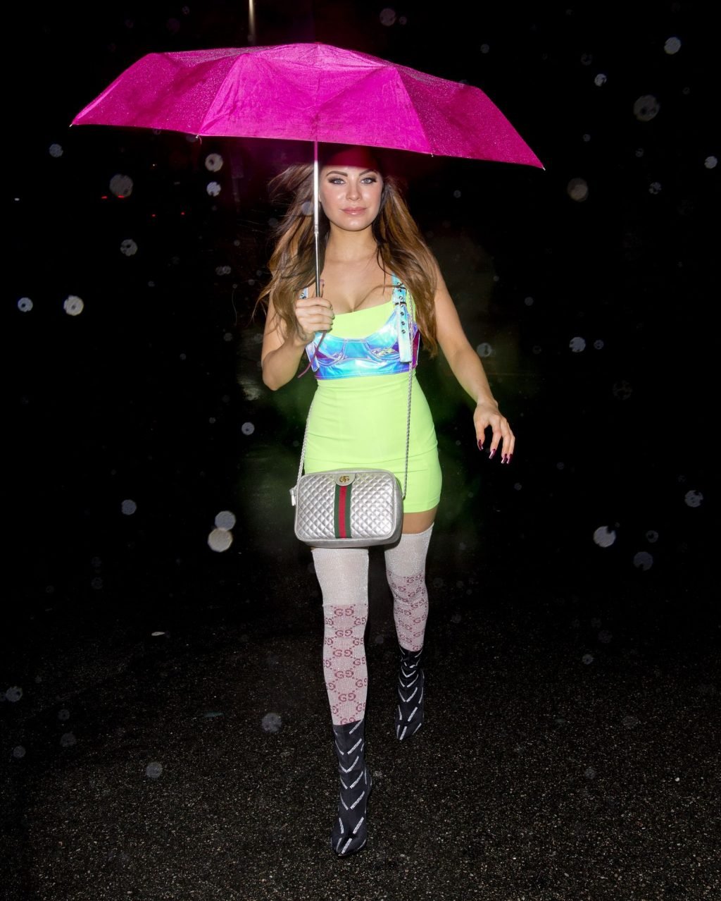 La modella britannica di Playboy Carla Howe affronta la pioggia intensa di Los Angeles ma perde il suo ombrello nel vento mentre è stata vista dirigersi alla festa di San Valentino di Dan Bilzerian a Beverly Hills, 14/02/2019.