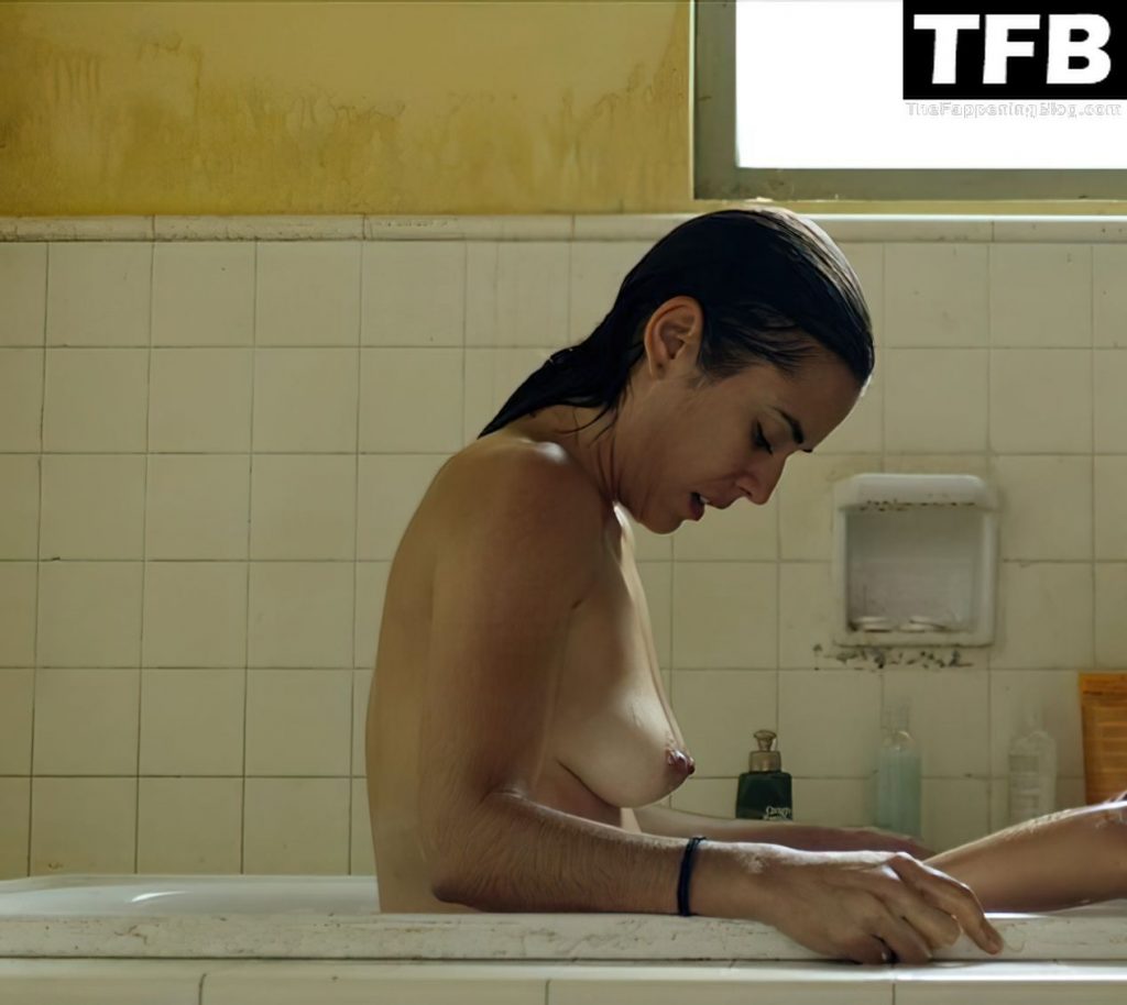 Carolina Ramírez si toglie il reggiseno per restare completamente nuda in bagno, mostrando bene il suo sedere, i seni e la peluria prima di entrare nella vasca da bagno. Poi si siede, continuando a mostrare i seni di lato mentre parla con una ragazza che è seduta nella vasca con lei.