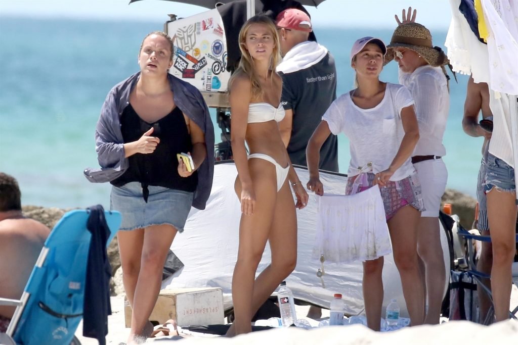 Model Caroline Kelley (22) mostra le sue curve pericolose, apparendo fantastica durante un servizio fotografico sulla spiaggia di Miami, 22/08/2018.