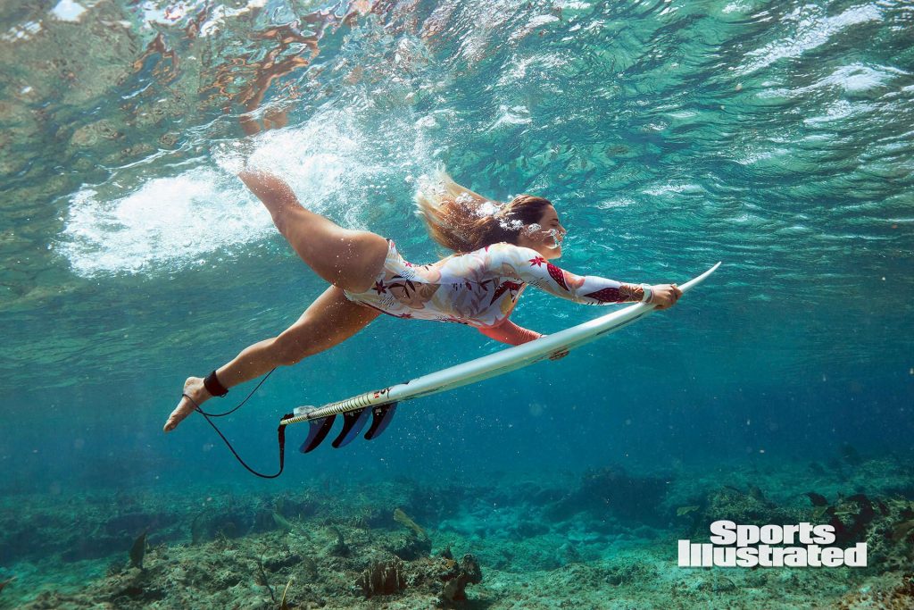 La surfista professionista australiana Caroline Marks mostra la sua figura atletica in bikini in un servizio fotografico per il numero 2020 di Sports Illustrated Swimsuit.
