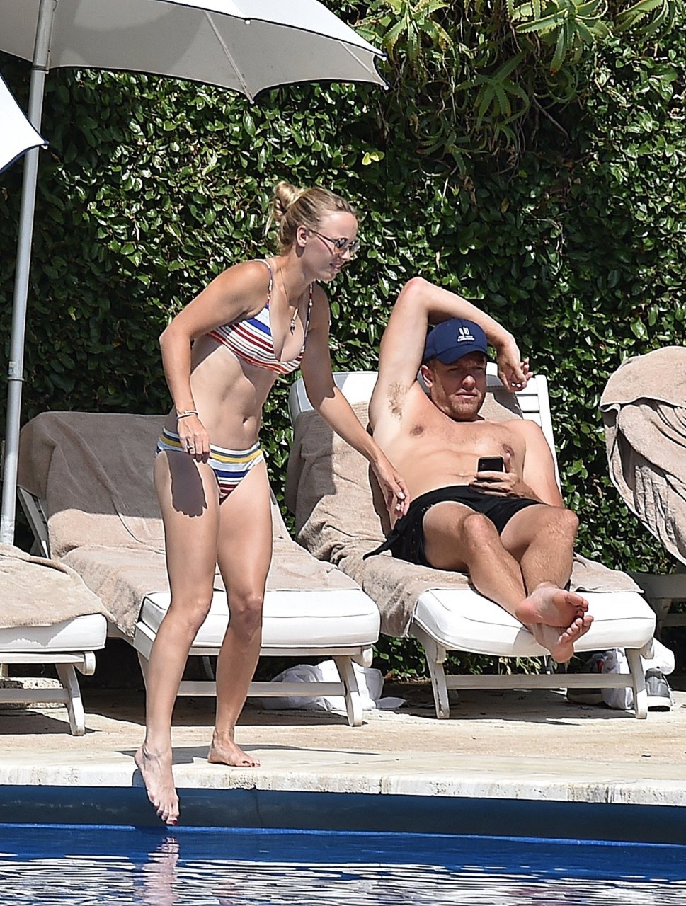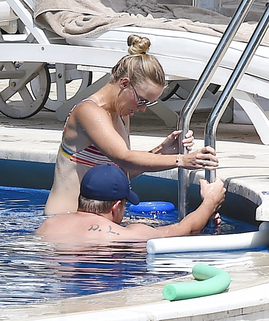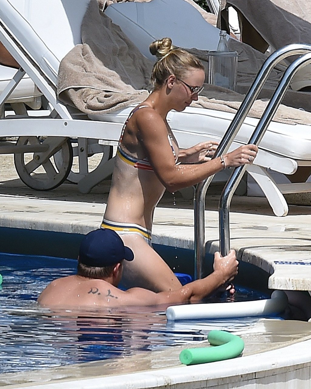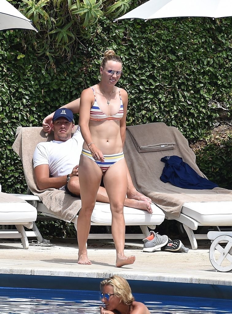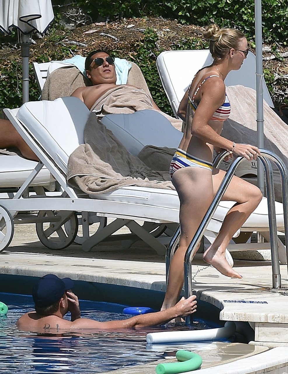 La tennista Caroline Wozniacki e David Lee sono stati visti mentre si godevano e rilassavano in una piscina a Portofino, Italia, 14/07/2018.