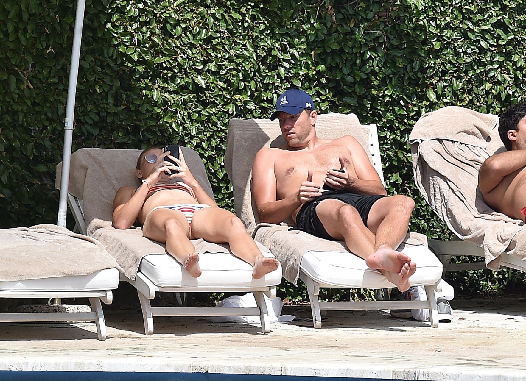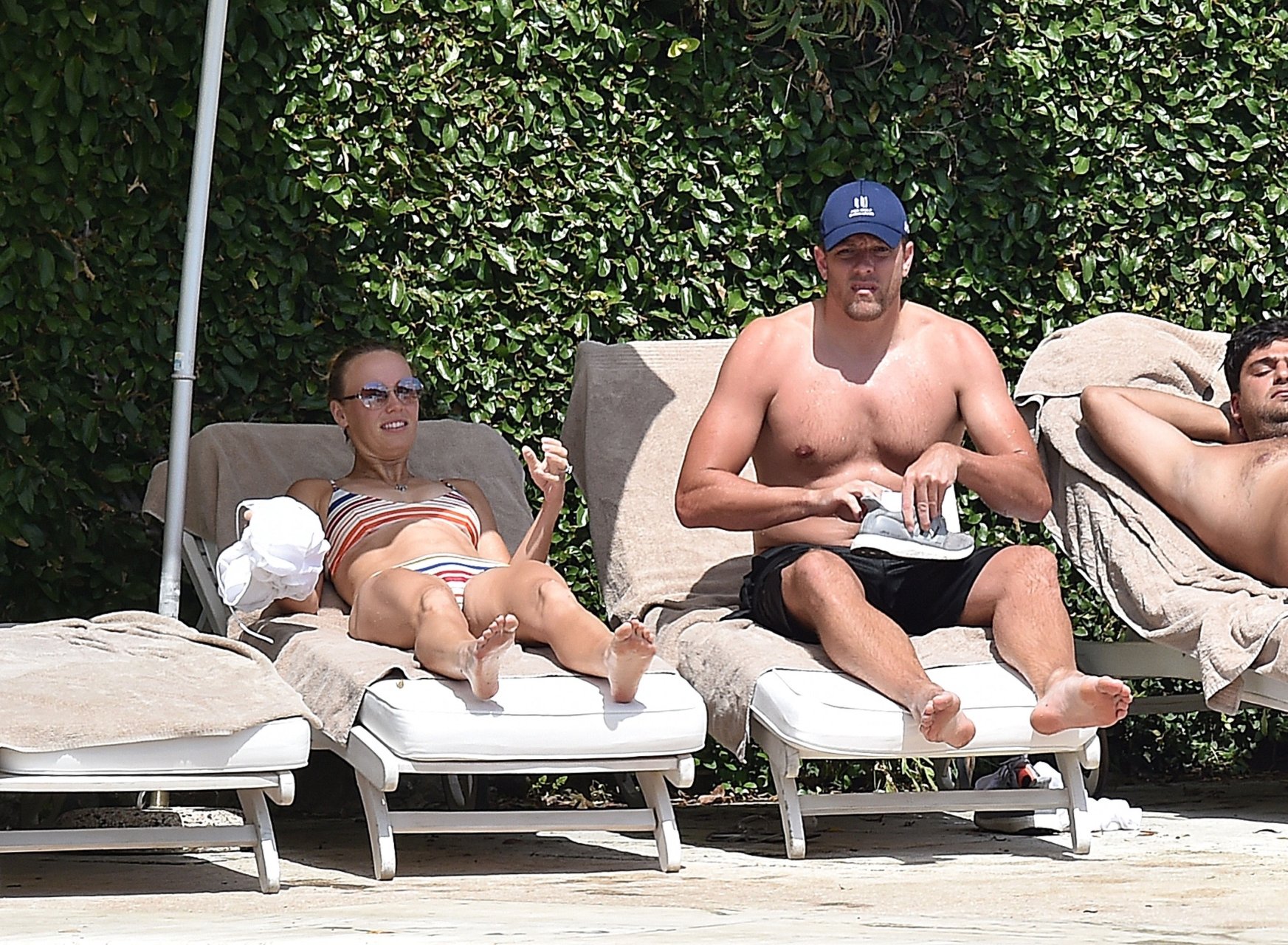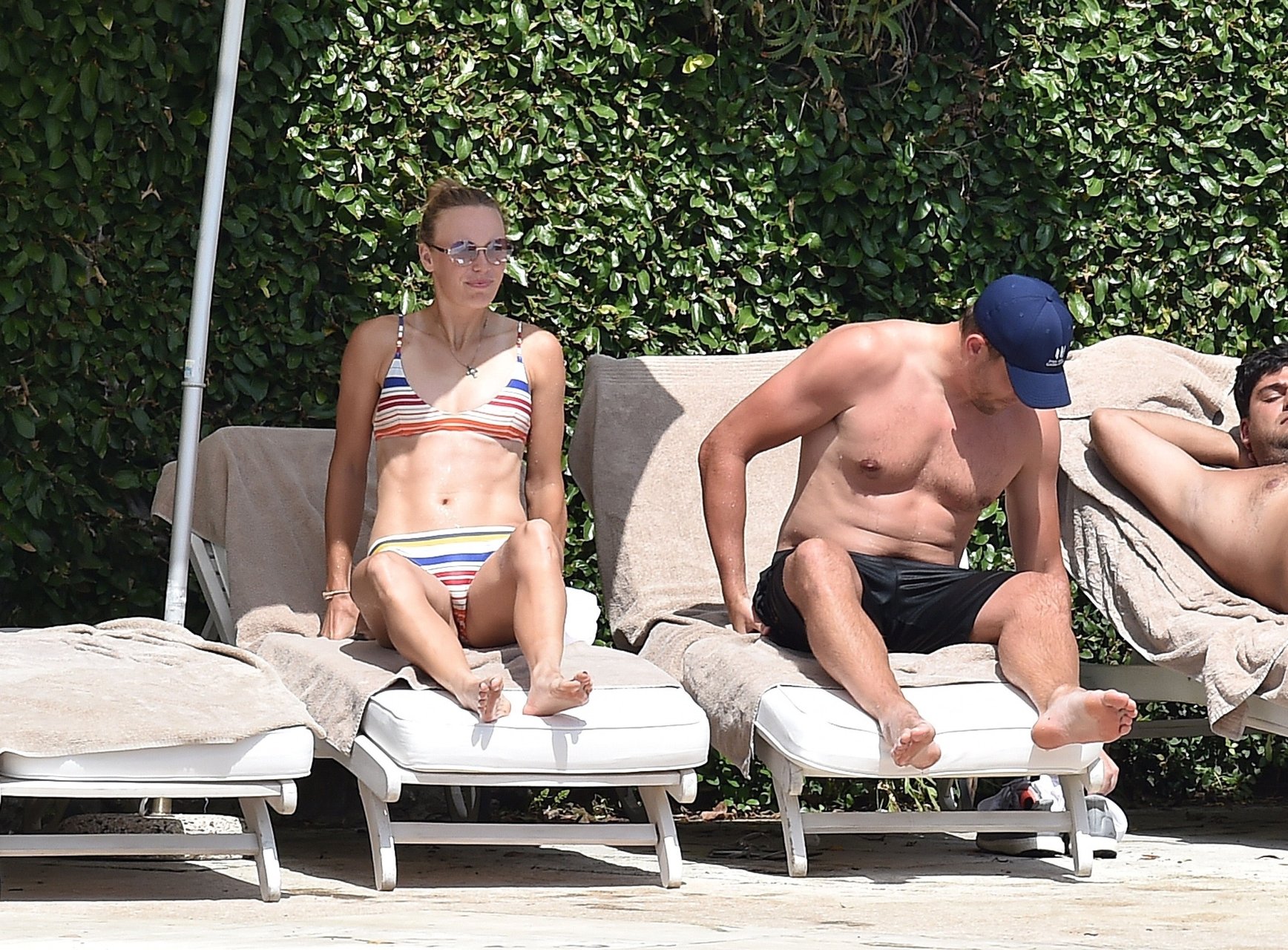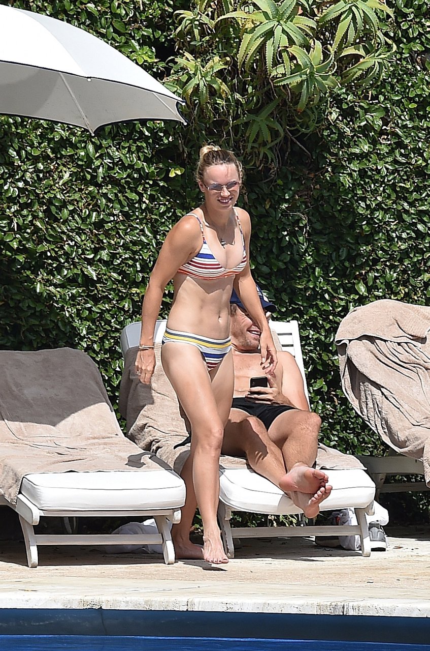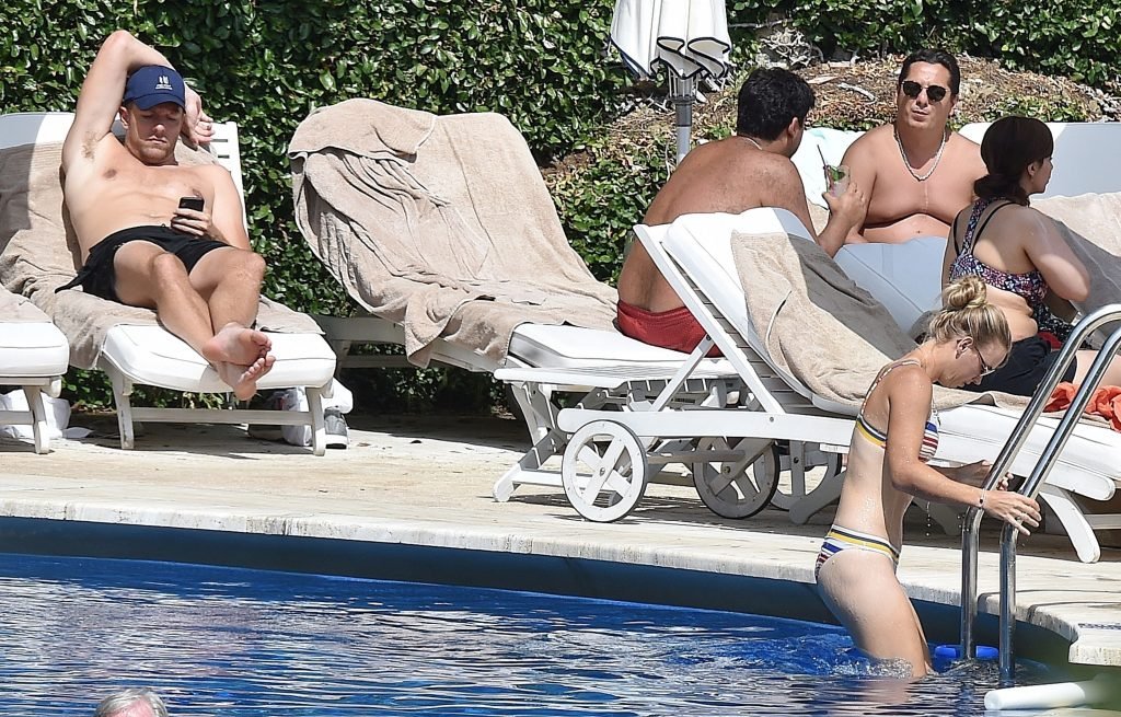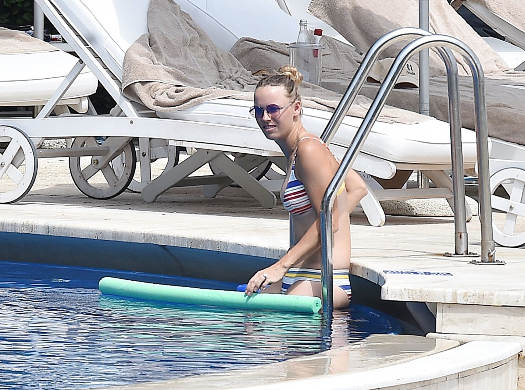 La tennista Caroline Wozniacki e David Lee sono stati visti mentre si godevano e rilassavano in una piscina a Portofino, Italia, 14/07/2018.