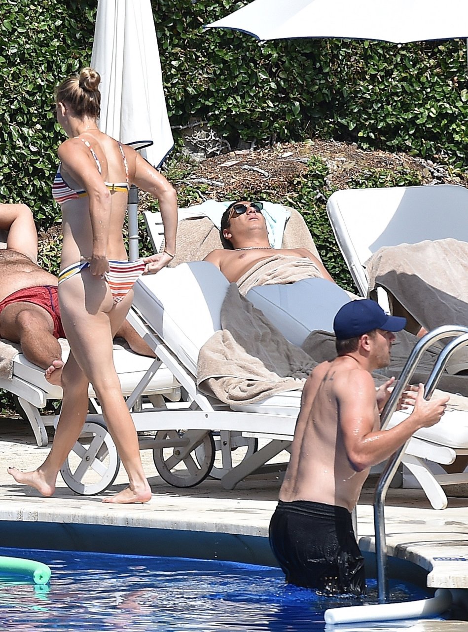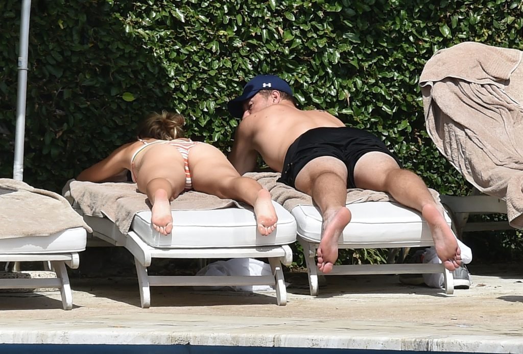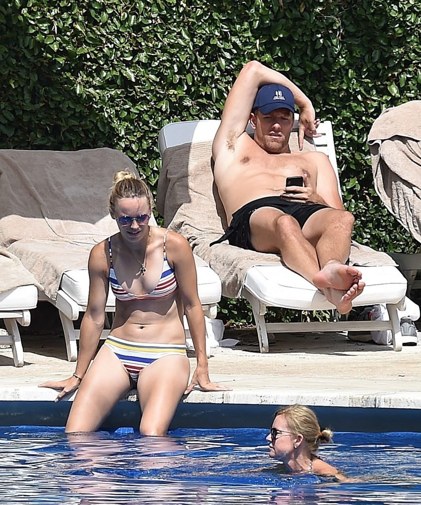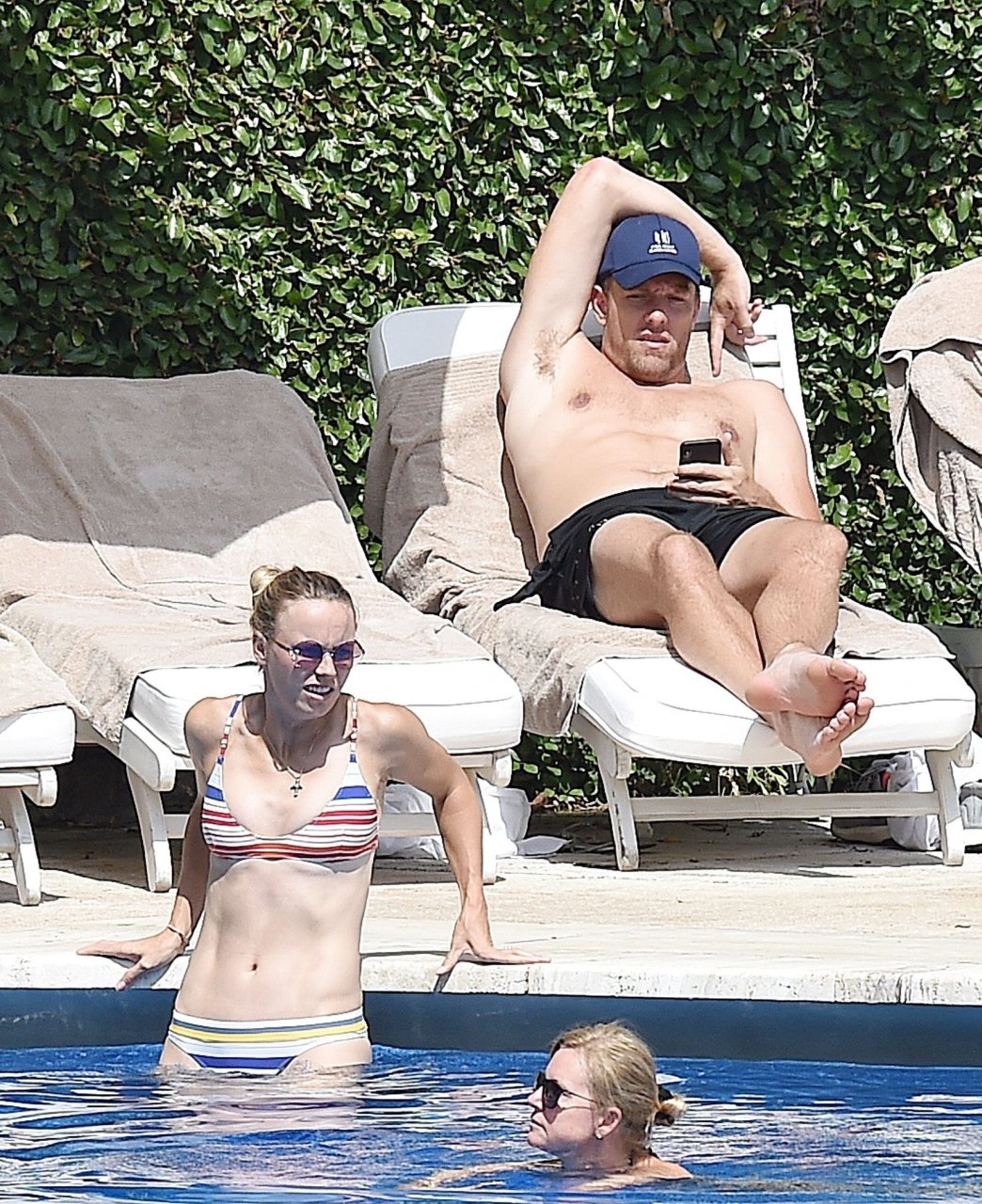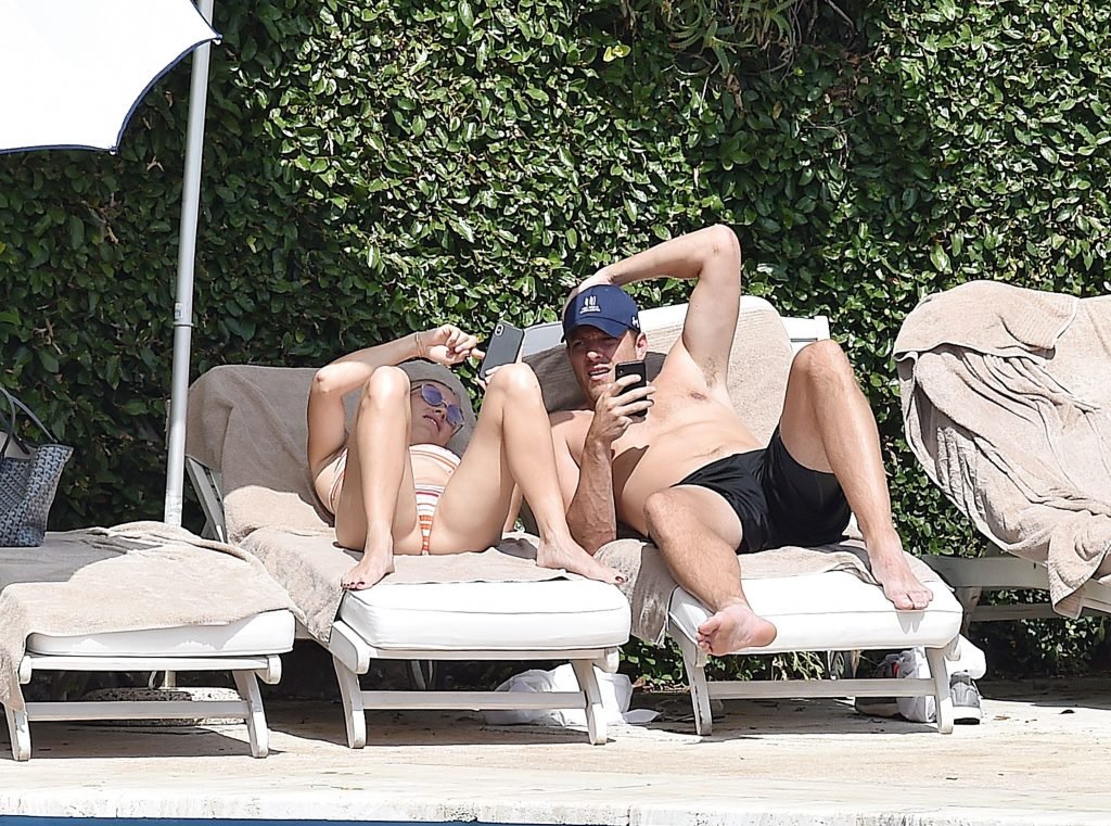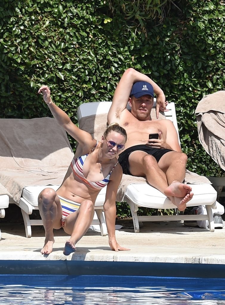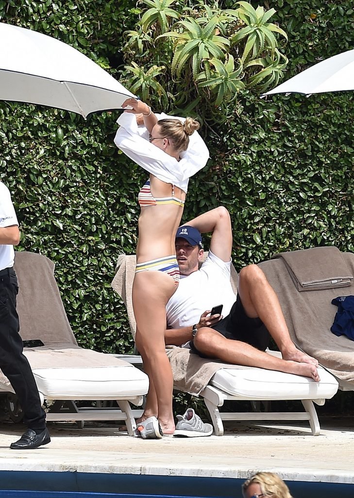 La tennista Caroline Wozniacki e David Lee sono stati visti mentre si godevano e rilassavano in una piscina a Portofino, Italia, 14/07/2018.