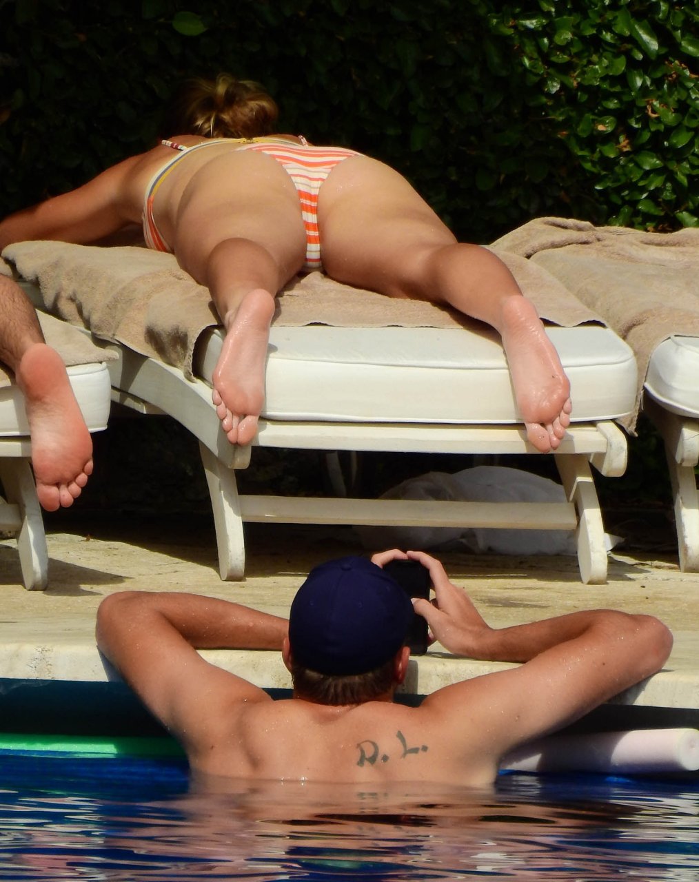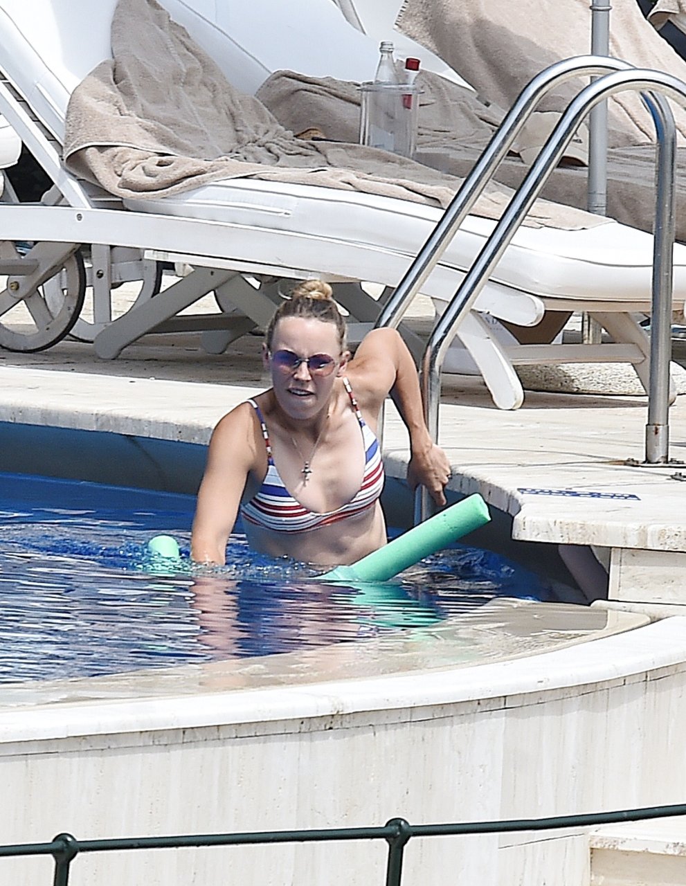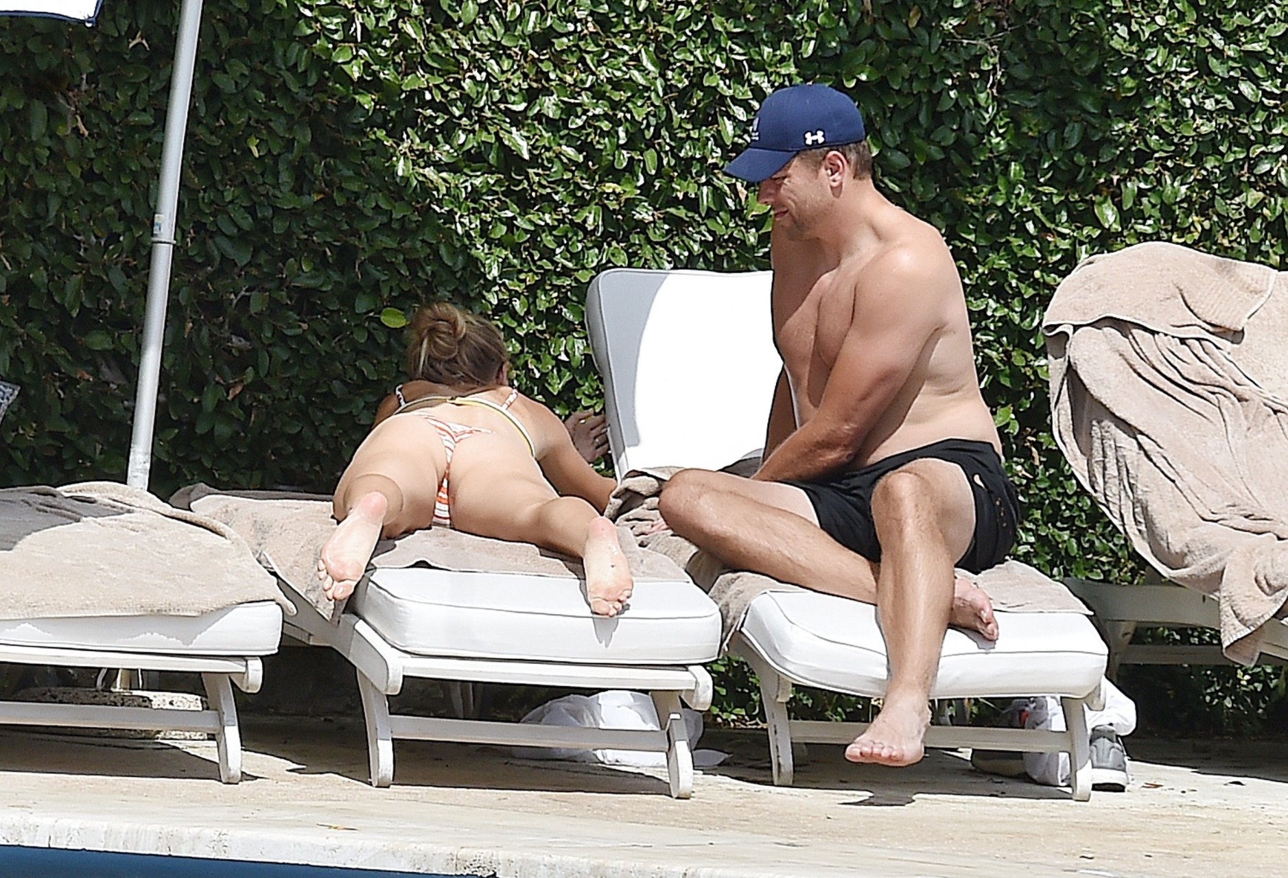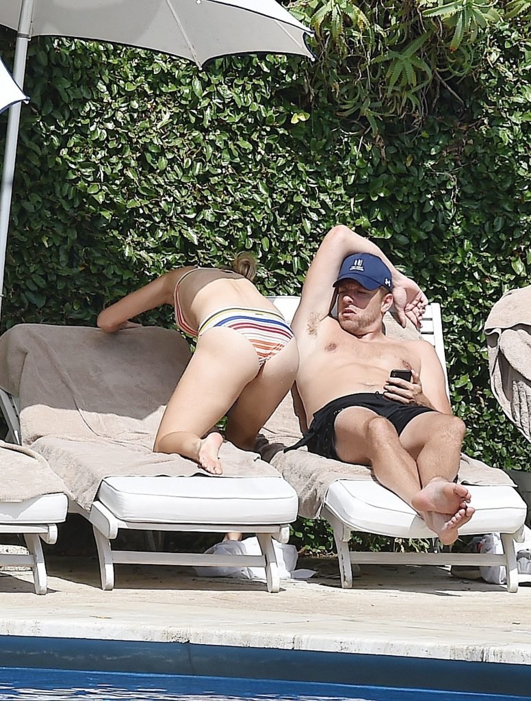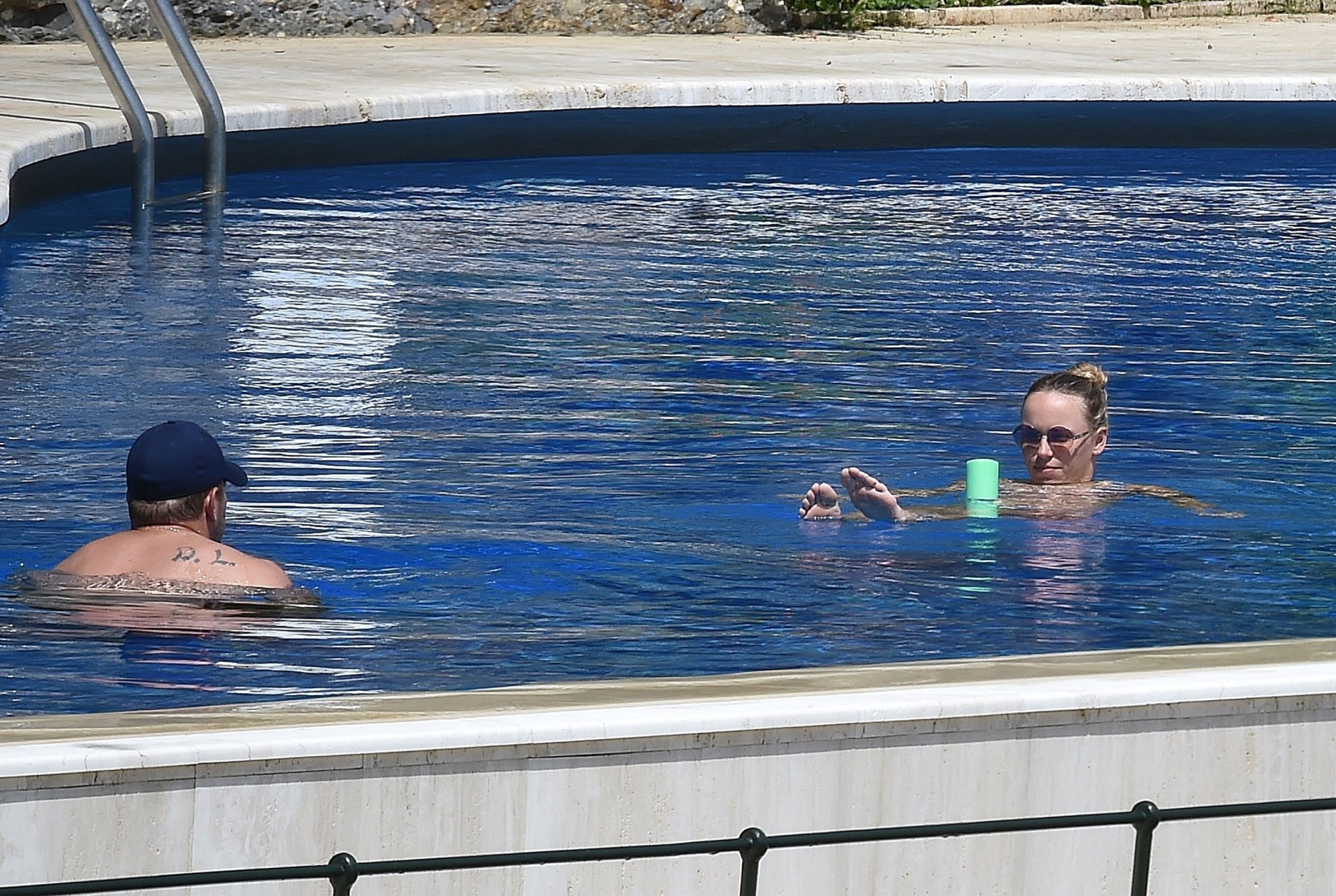 La tennista Caroline Wozniacki e David Lee sono stati visti mentre si godevano e rilassavano in una piscina a Portofino, Italia, 14/07/2018.