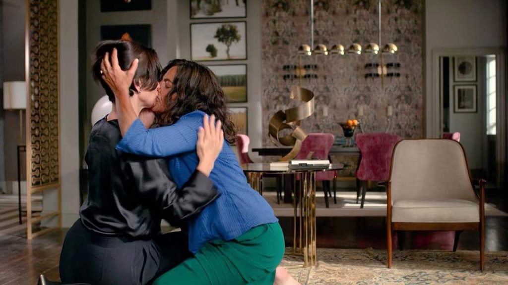 Dai un’occhiata a un’altra scena sexy! Guarda la scena lesbica non-nude con Carrie-Anne Moss e Sarita Choudhury da ‘Jessica Jones’ (2019) Stagione 3 Episodio 3 (s03e03). Puoi vedere Sarita seduta su una sedia che suona il suo violoncello. Poi Carrie-Anne bacia il collo di Sarita e le accarezza il corpo, passando una mano sul suo seno finché Sarita non la ferma. Lei si allontana solo per tornare indietro, saltare in grembo a Moss e baciarla mentre si scambiano un altro bacio!