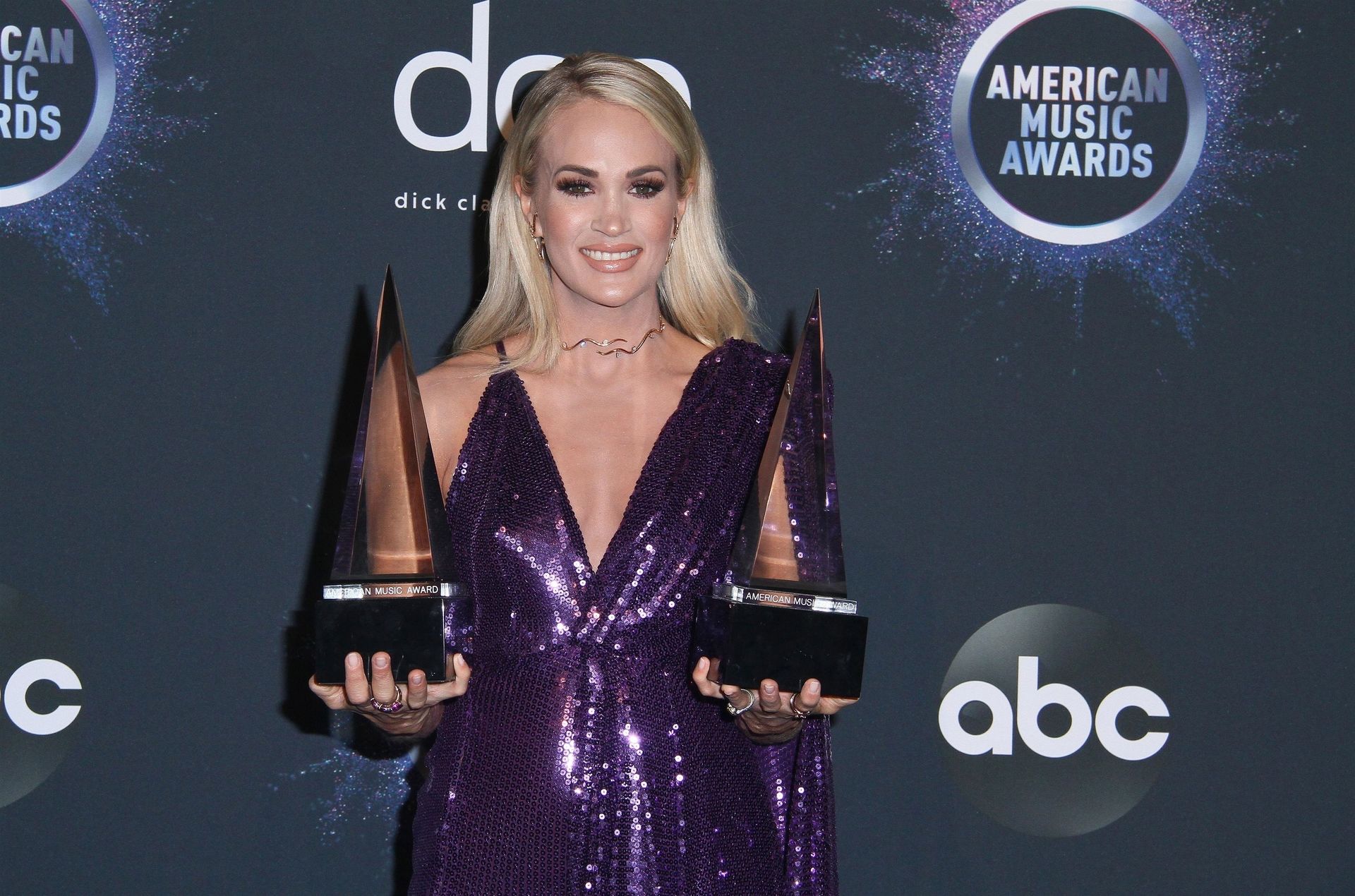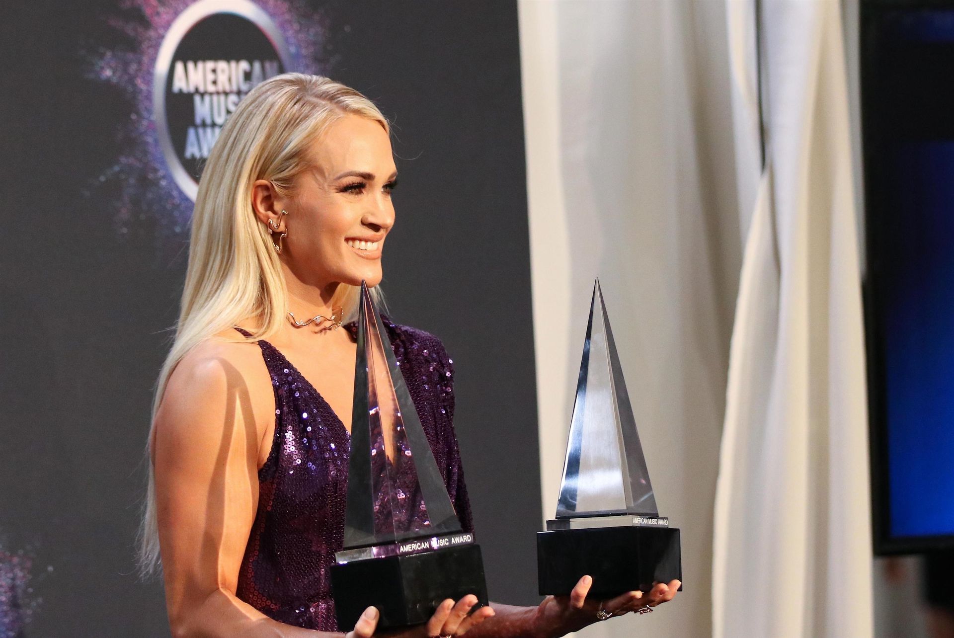 La cantante slanciata Carrie Underwood ha vinto due premi contemporaneamente alla 47ª edizione degli American Music Awards presso il Microsoft Theater di Los Angeles, il 24/11/2019.