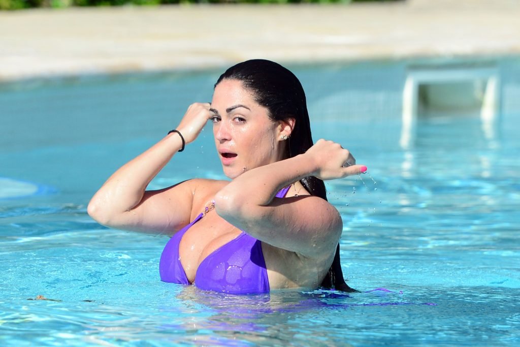 Casey Batchelor indossa un bikini viola in piscina nella Repubblica Dominicana, 30/03/2017. Casey Batchelor è una modella, attrice (Bonded by Blood 2 – 2017). Età – 32 anni (nata il 2 ottobre 1984).