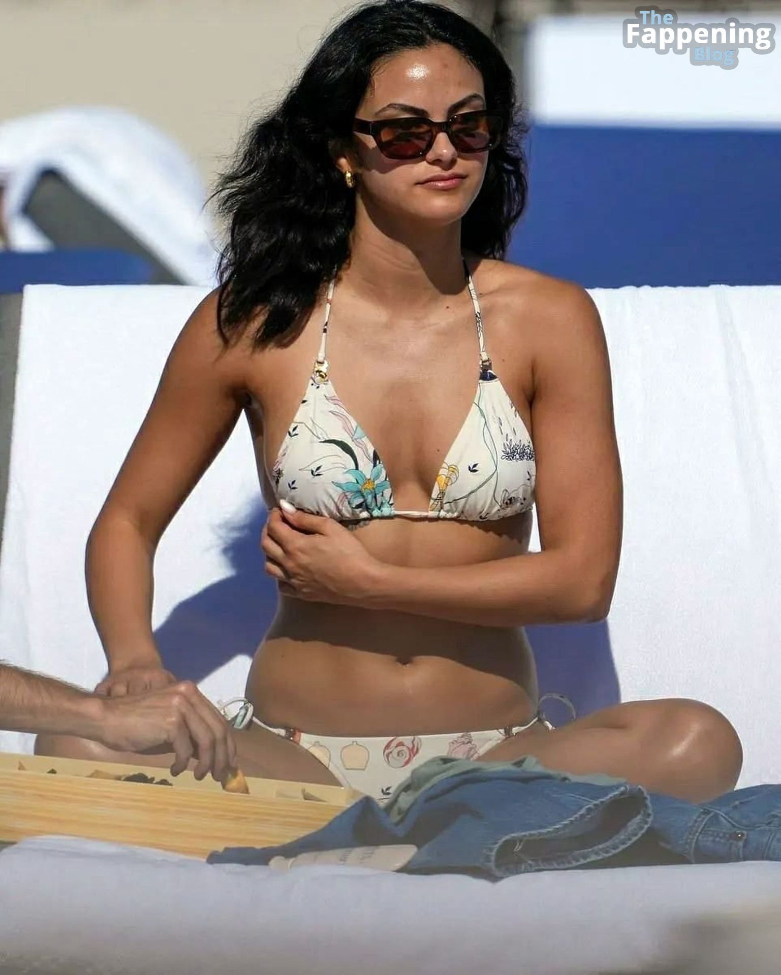 Camila indossava un bikini bianco mentre si divertiva nell’oceano con Rudy, mostrando molto affetto in pubblico. Ha anche pranzato sulla spiaggia mentre Rudy giocava a paddle ball con gli amici. La star di “Riverdale” di 28 anni sfoggiava un bikini a stringhe bianco con stampa floreale e un grande sorriso mentre veniva vista coccolarsi con il suo nuovo amore durante una giornata in spiaggia.