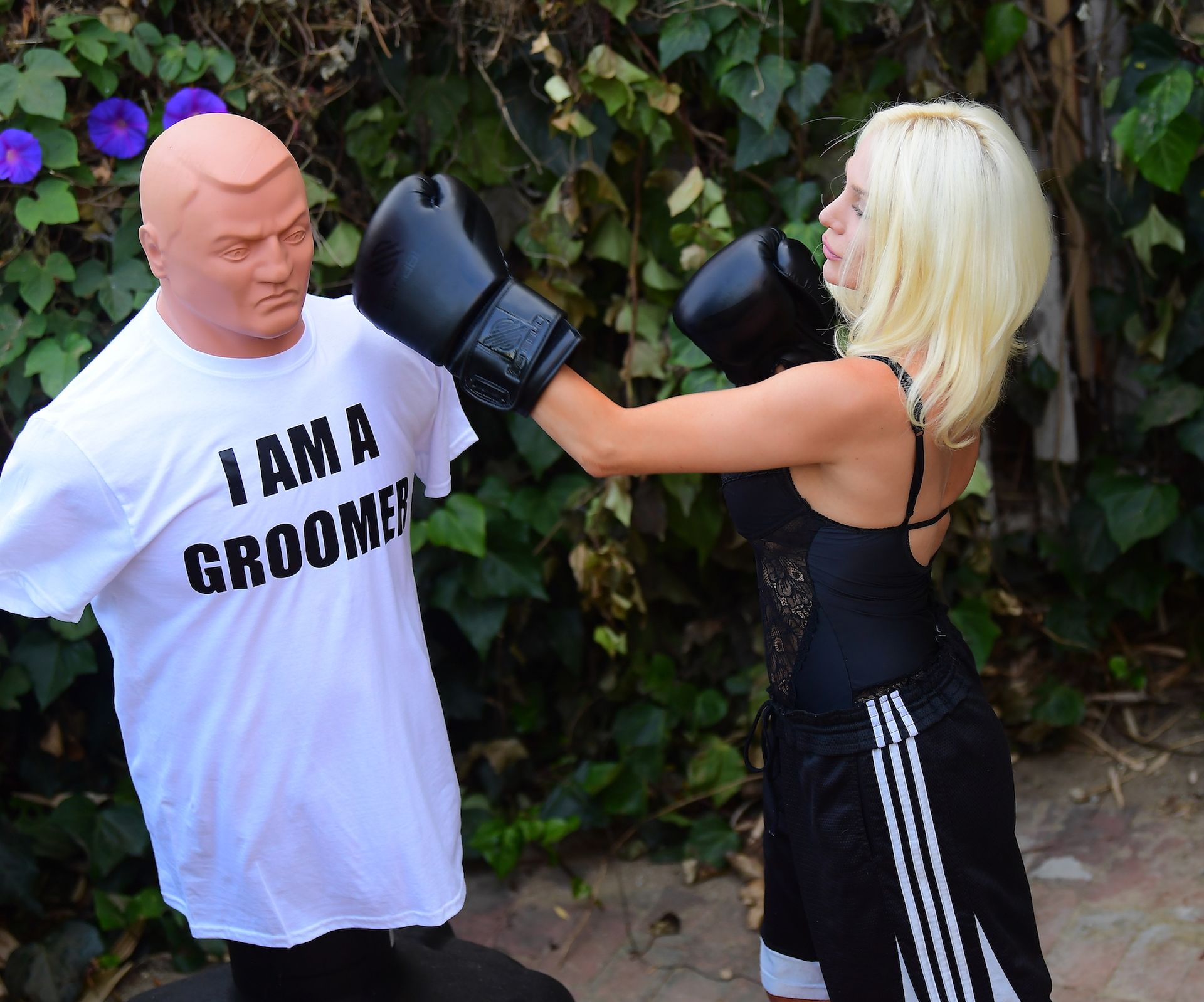 Courtney ha indossato l’equipaggiamento da boxe mentre colpiva duramente il manichino. Ha famosamente definito il suo ex marito un “groomer”, e riferisce che il suo flirt Brian Austin Green è altrettanto pessimo.