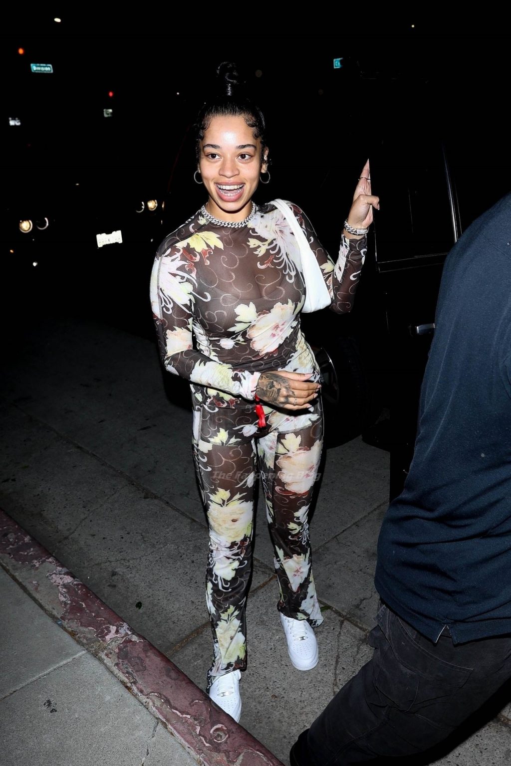 La cantante britannica Ella Mai sorride fuori dal party per il 29° compleanno di Cardi B a Los Angeles, 11/10/2021.