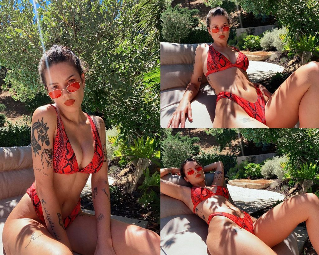 La star del Fappening Halsey mostra il suo corpo sexy, posando in un bikini rosso come un serpente nel giardino per i suoi fan di Instagram, 08/09/2020. Guarda anche il suo video sexy di twerking qui sotto.