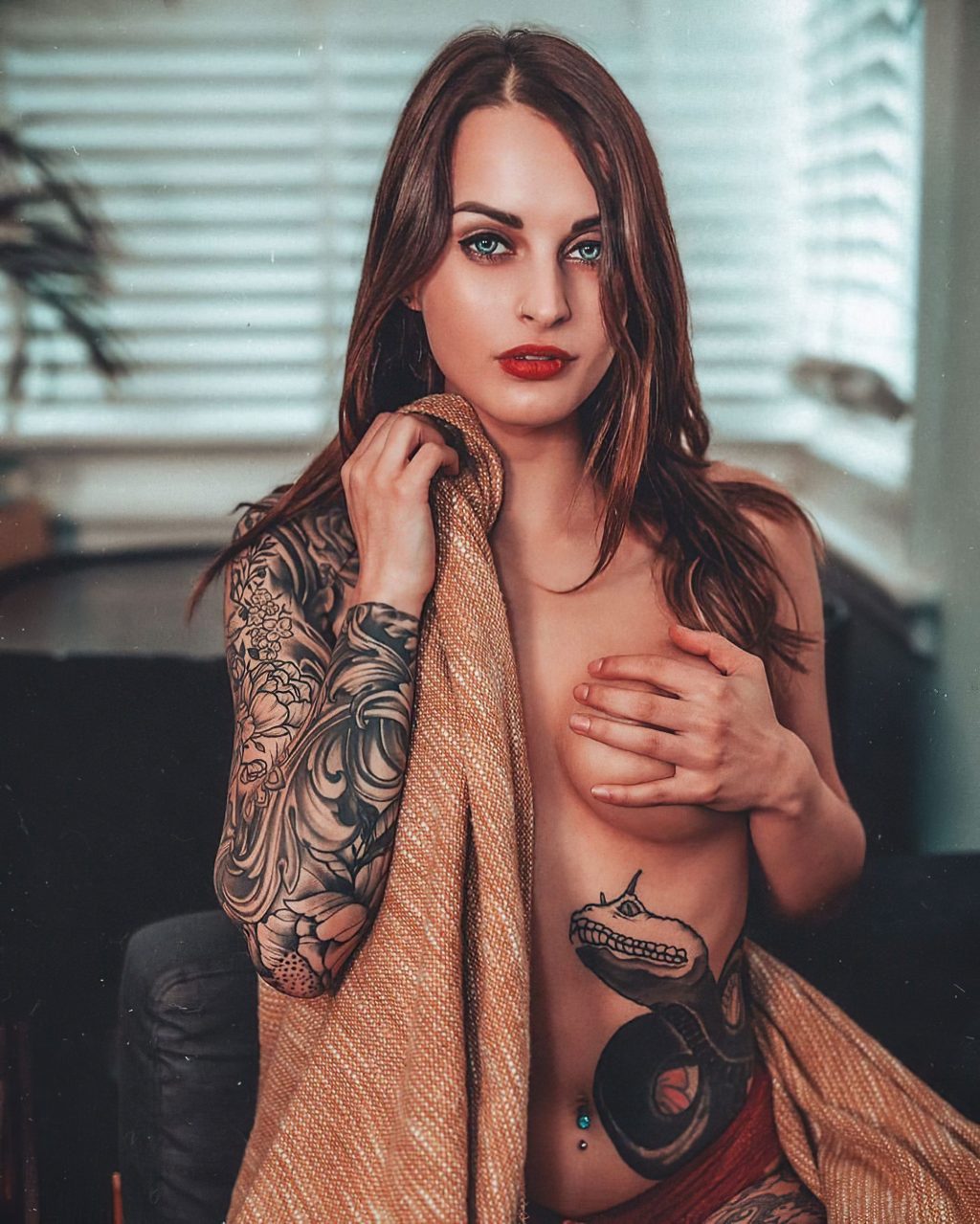 Modella adulta attraente, Suicidegirl, Regina dei Piedi Hel Ray, meglio conosciuta come Helena Ray, presenta la sua nuova collezione di foto sexy e nude. La ragazza tatuata posa per selfie semi-nuda e mostra il suo corpo stupendo!
