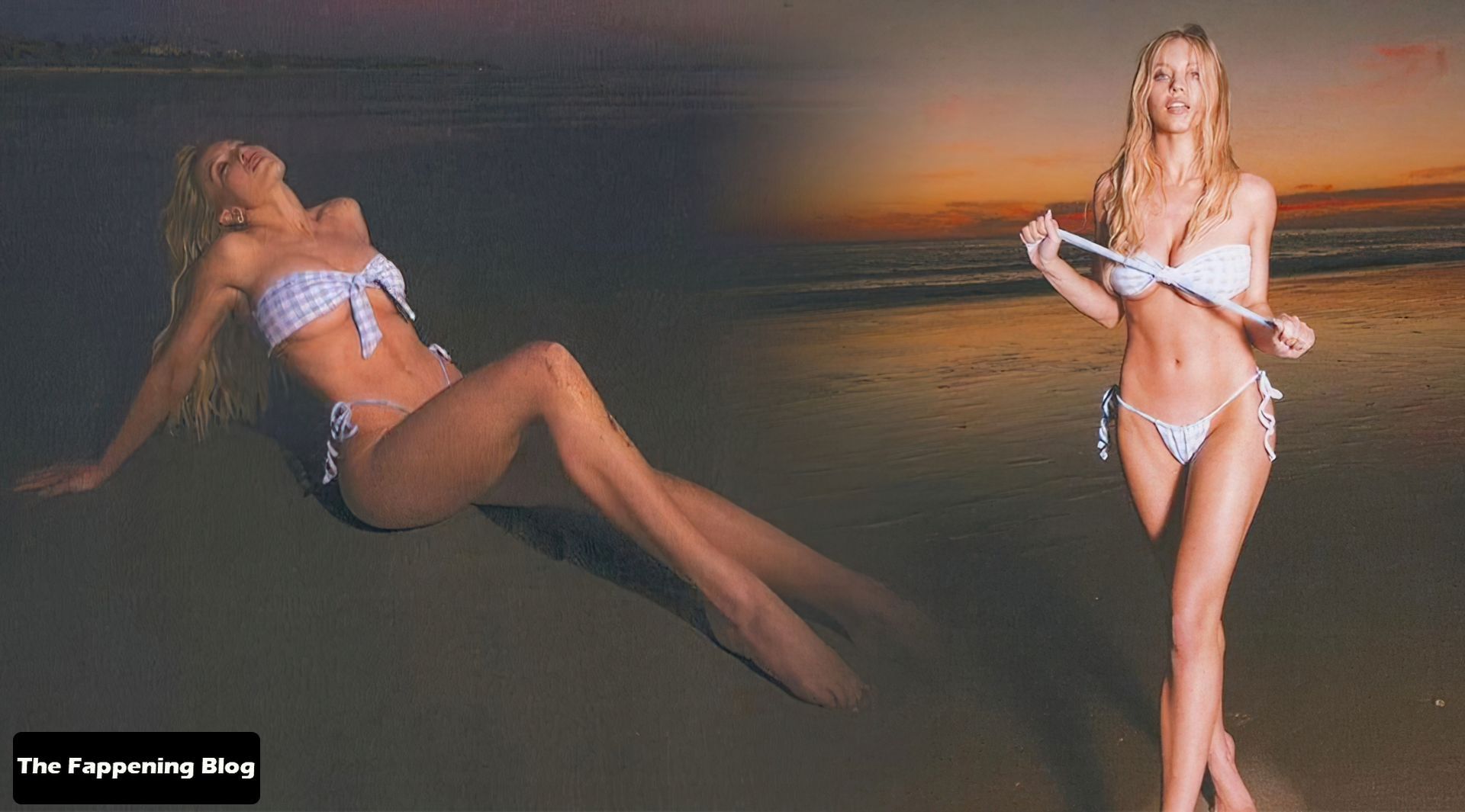 L’attrice Sydney Sweeney posa in bikini sulla spiaggia in un nuovo servizio fotografico per i suoi account social media (2022).