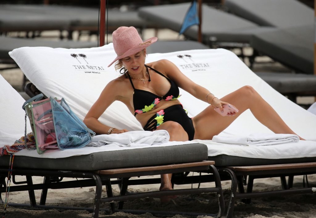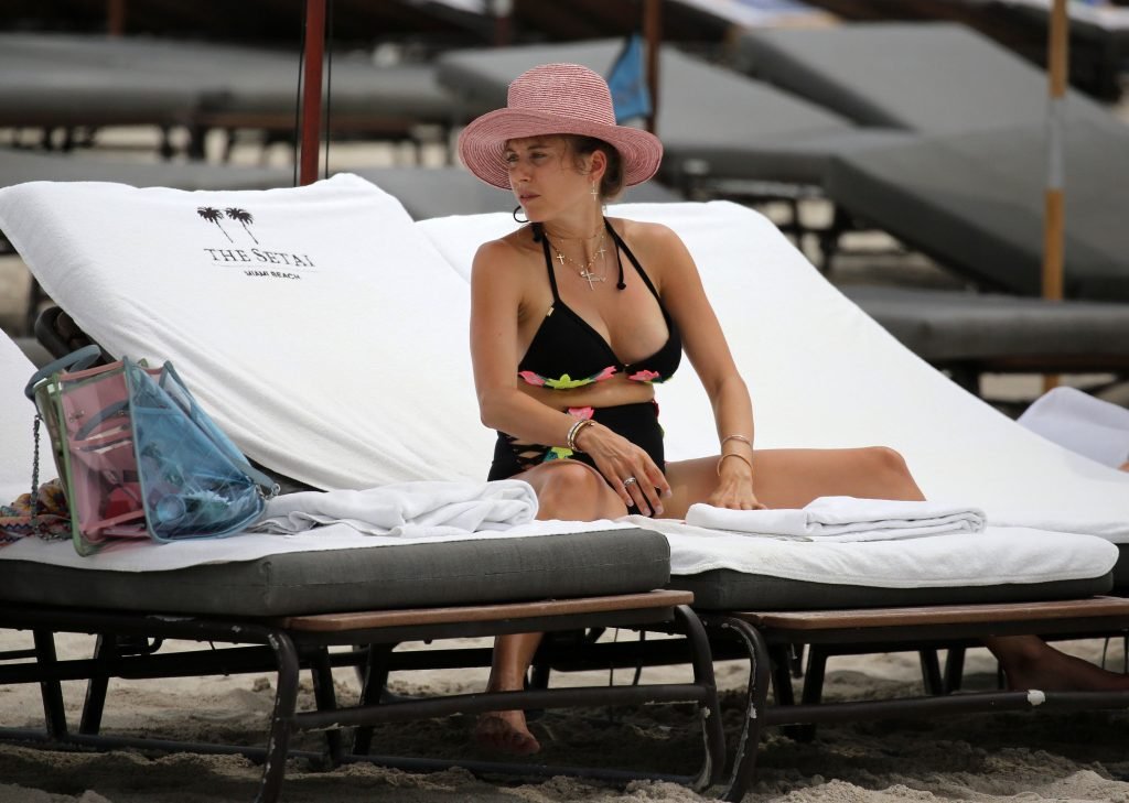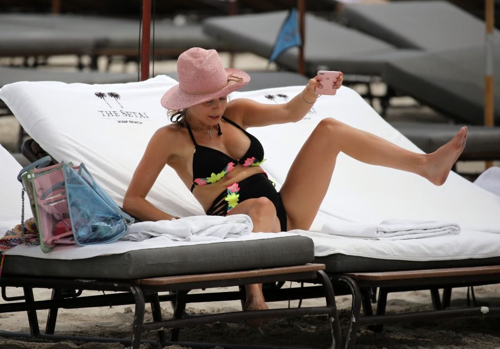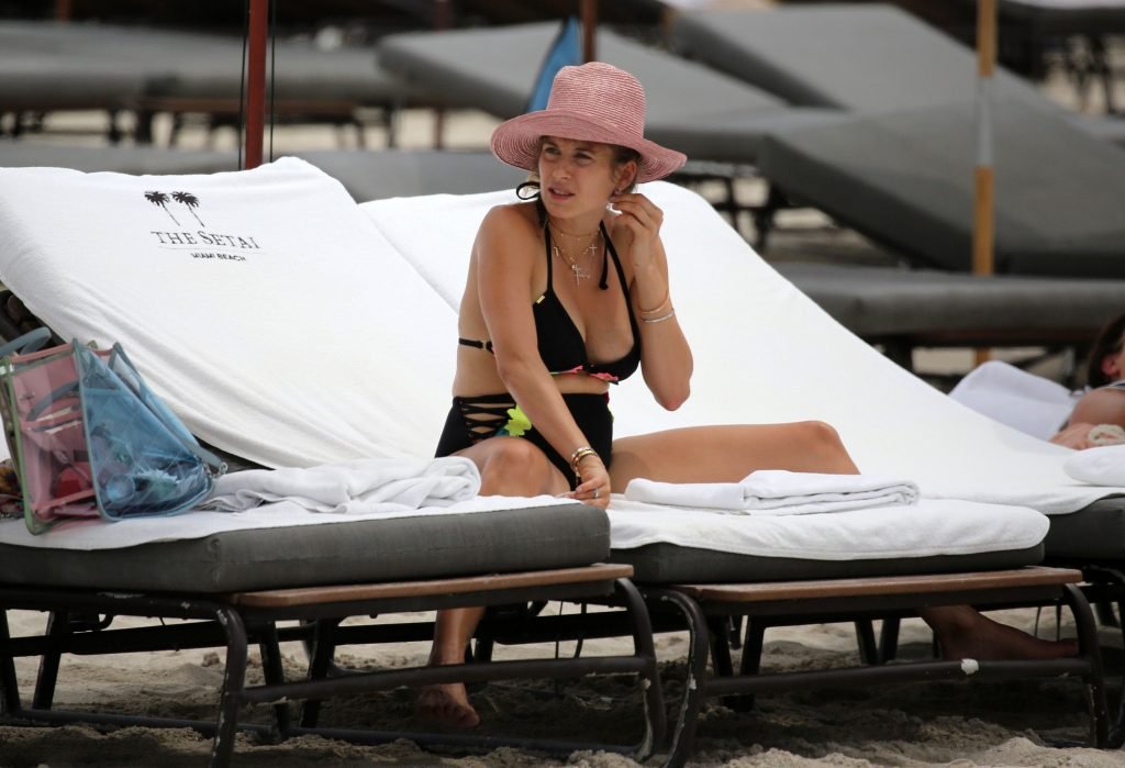 Cathy Fisher-Hummels mostra il suo corpo flaccido in un bikini nero cattivo sulla spiaggia di Miami, 27/04/2018. Cathy Hummels è una conduttrice televisiva e moglie del calciatore Mats Hummels di Dachau, Germania. Età – 30.