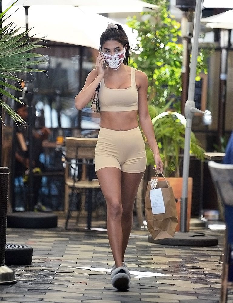 Social media star Chantel Jeffries reveals her toned abs and pussy shape as she is spotted leaving Zinque restaurant. Chantel wore sporting nude color gym attire with matching fur sliders. As always, she was hot!