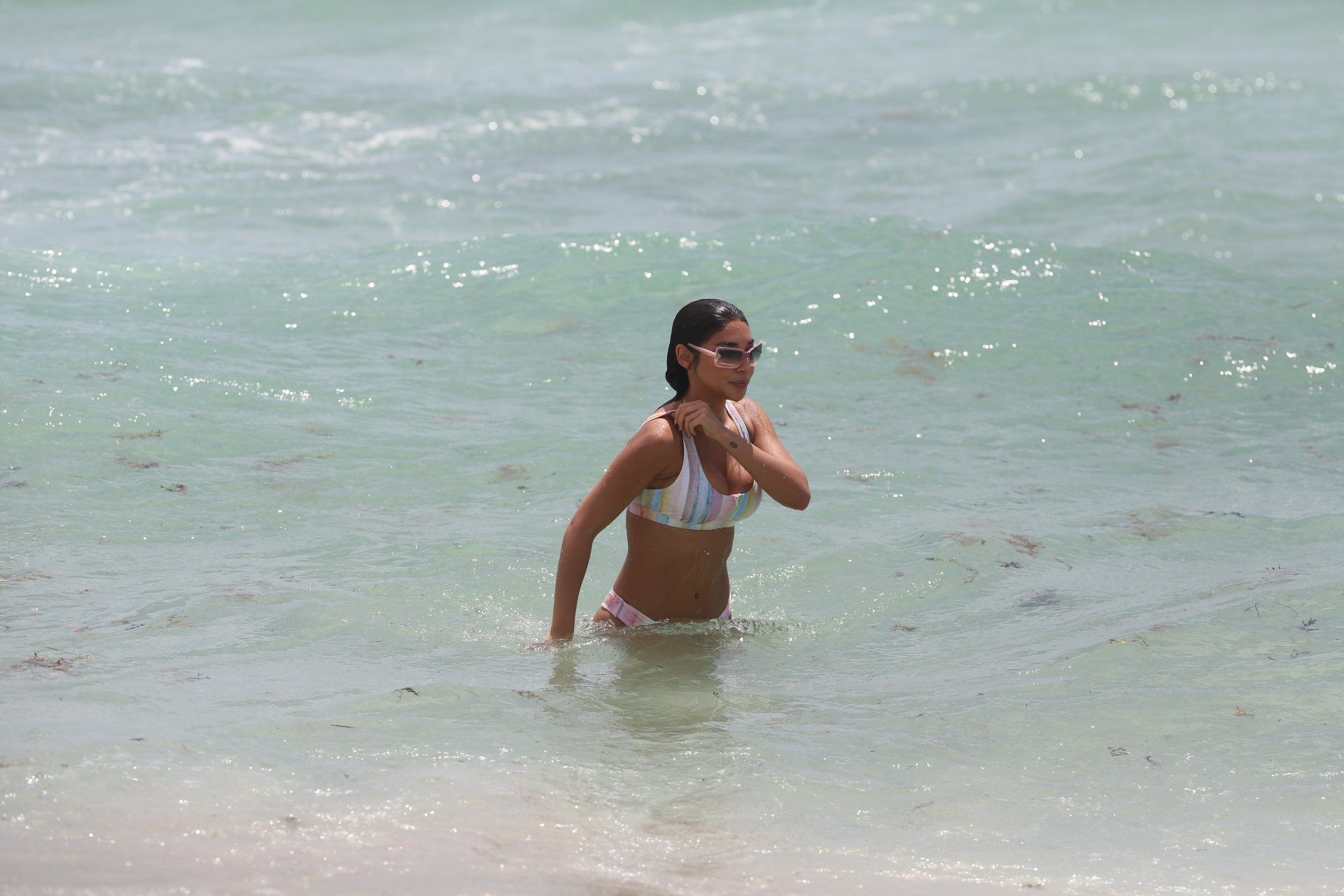 Chantel Jeffries si gode una giornata in spiaggia a Miami, 13/06/2017. Shantel Jeffries è una modella americana, star di Instagram, ex di Justin Bieber. Età – 23 anni.