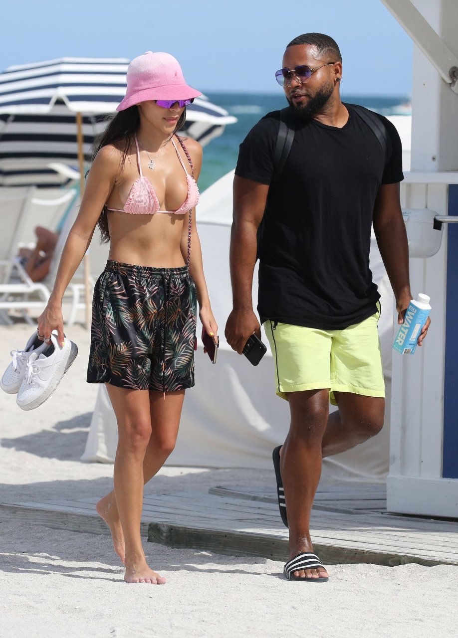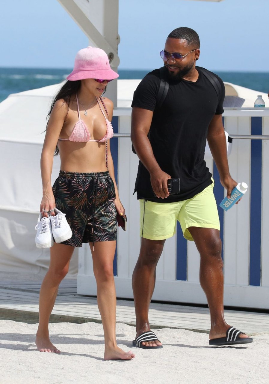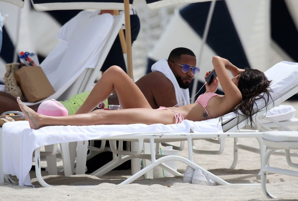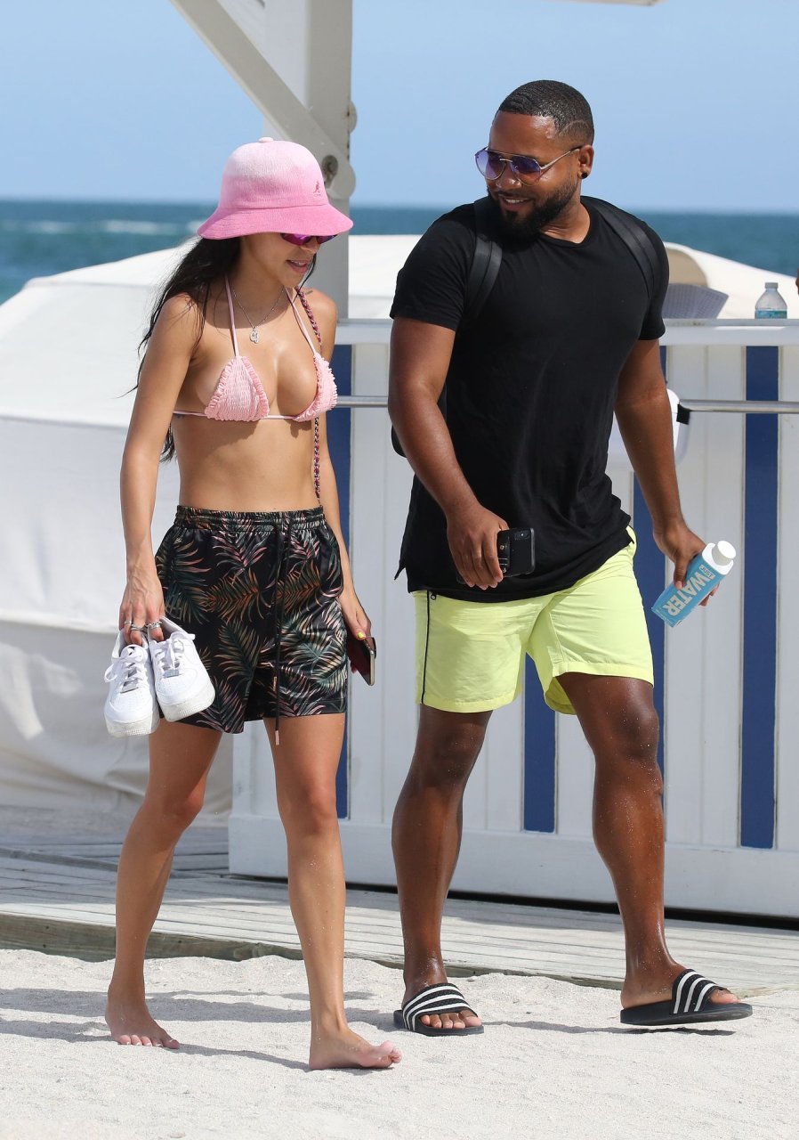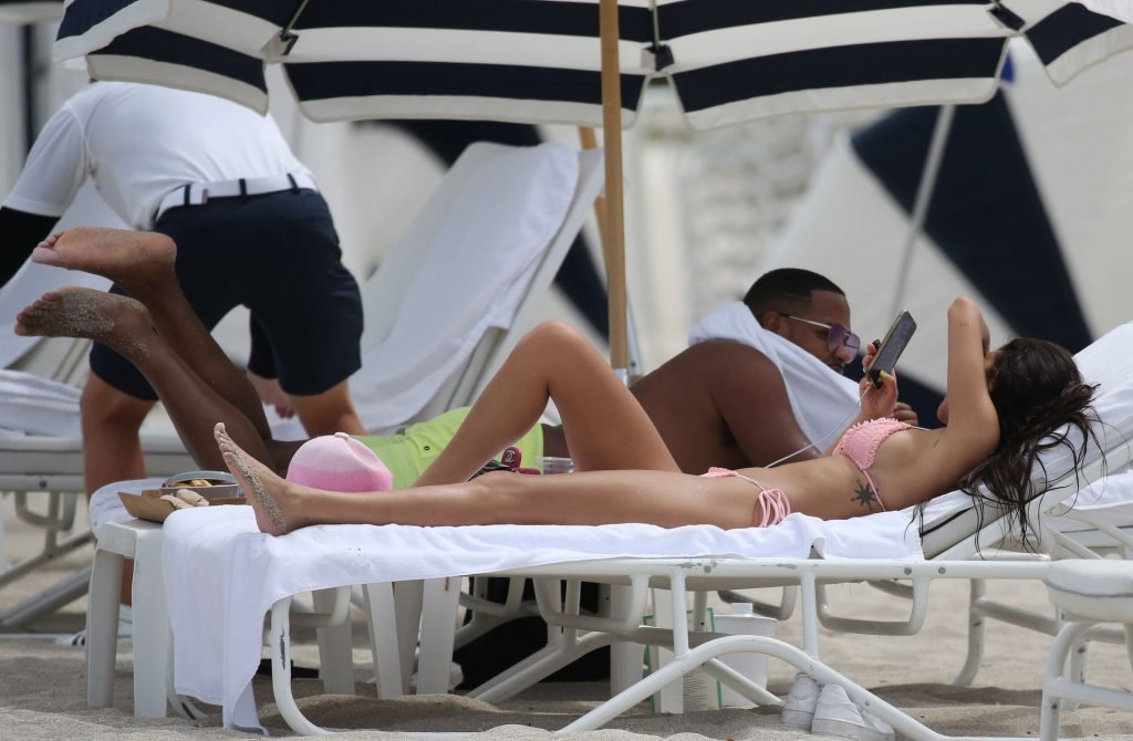 L’ex di Justin Bieber, Chantel Jeffries (26), indossa un bikini rosa mentre si rilassa sulla spiaggia con un uomo misterioso a Miami, 11/07/2019.