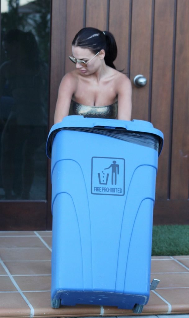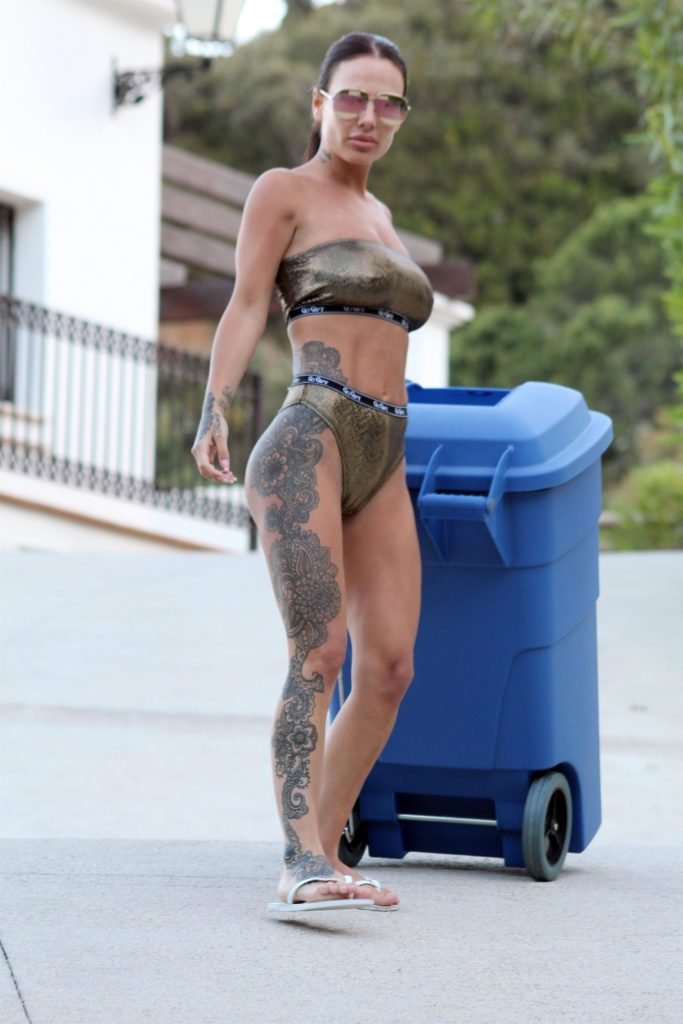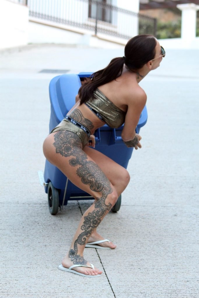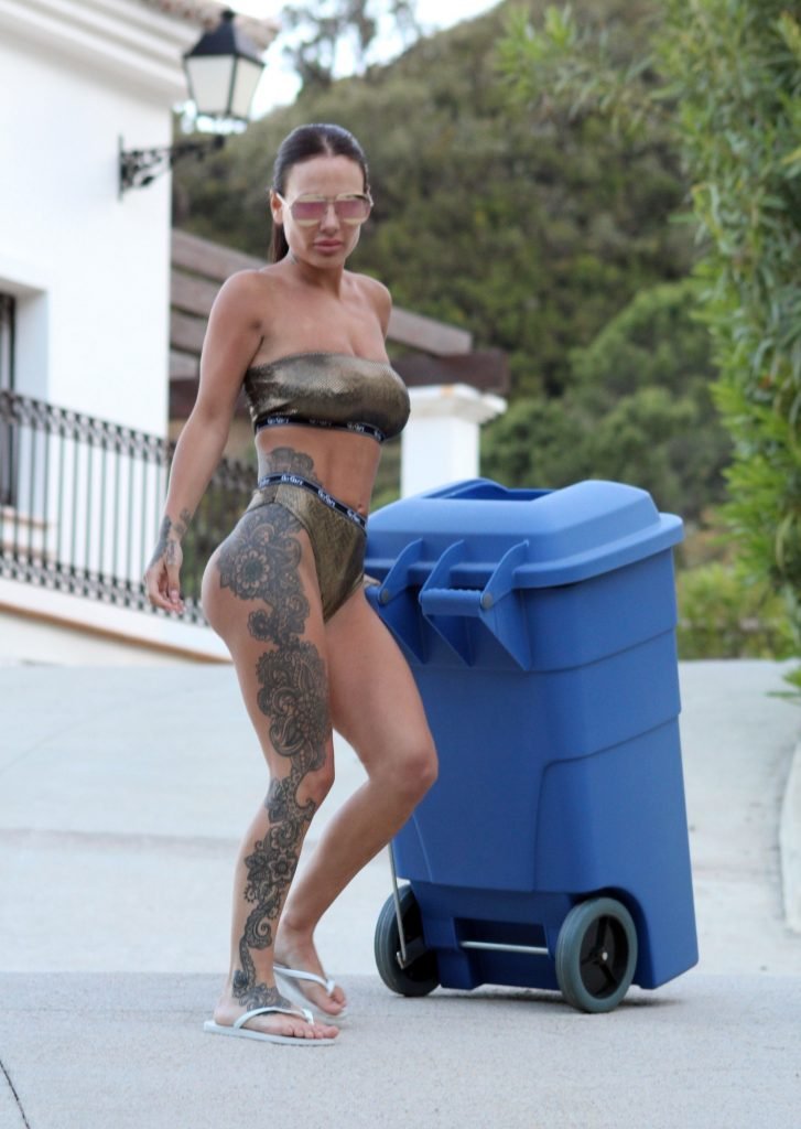 Chantelle Connelly fatica a portare fuori la spazzatura in biancheria intima a Marbella, 05/05/2018. Chantelle Connelly è una star inglese di 28 anni della TV reality (Geordie Shore di MTV UK).