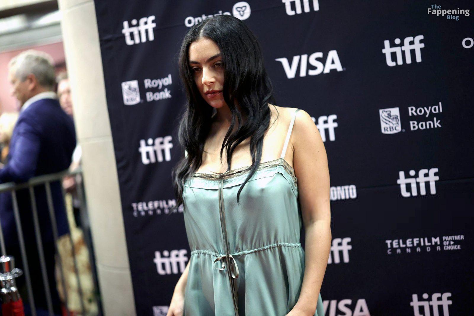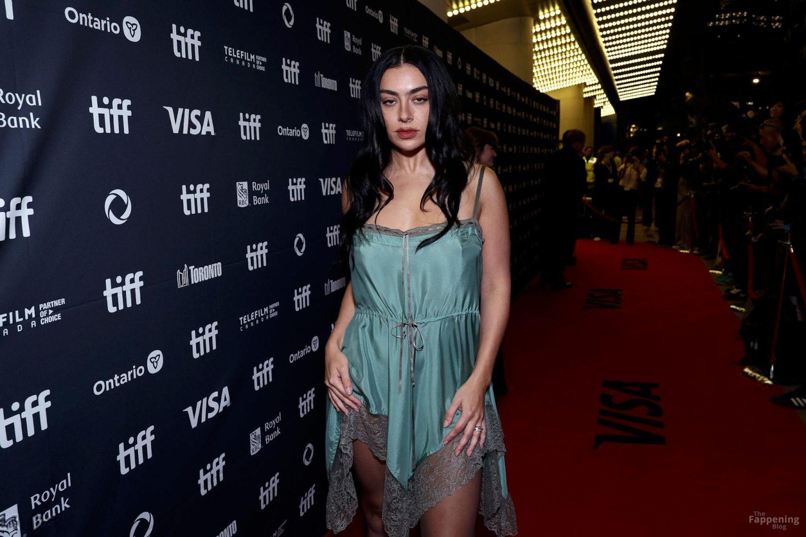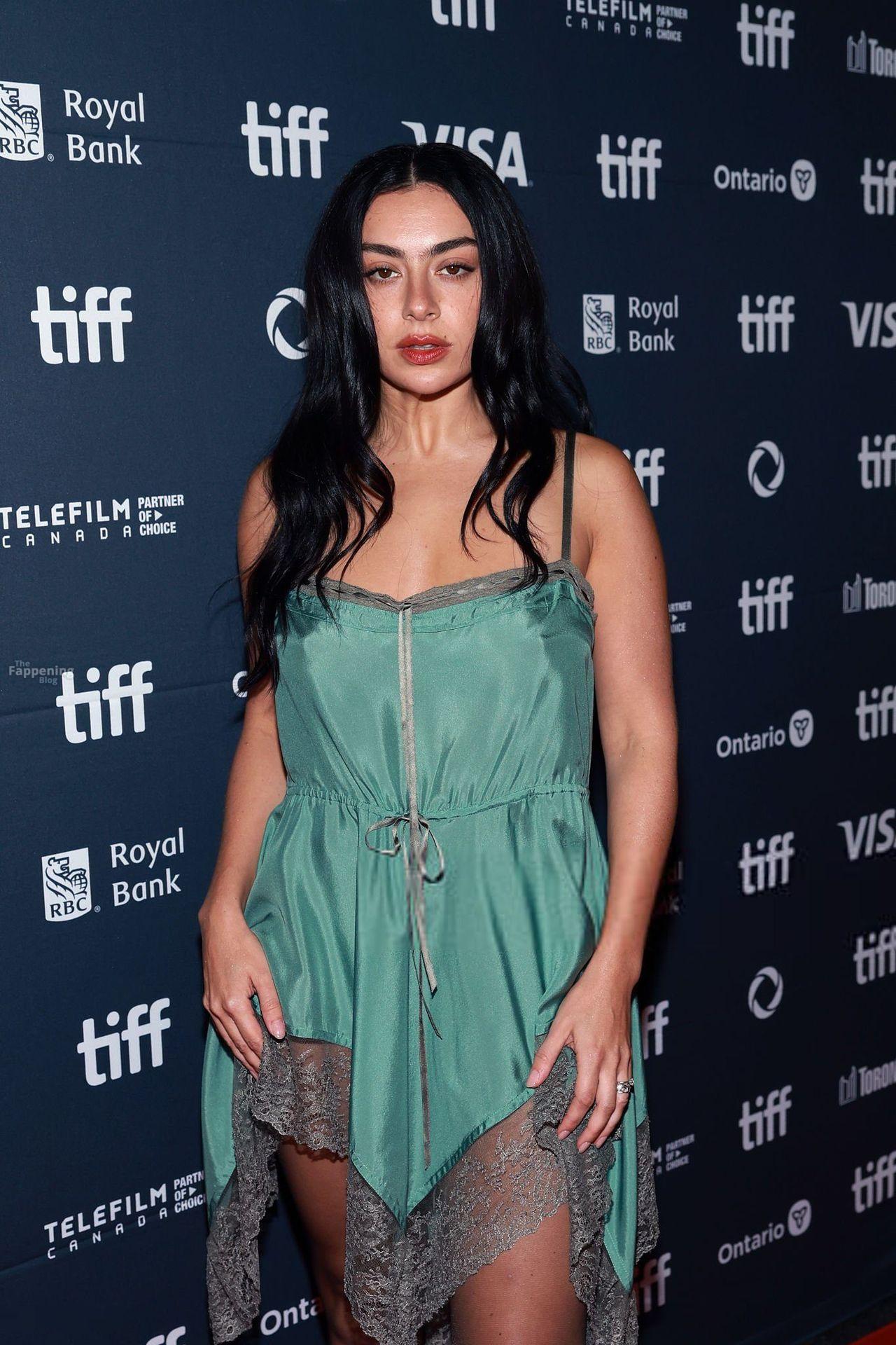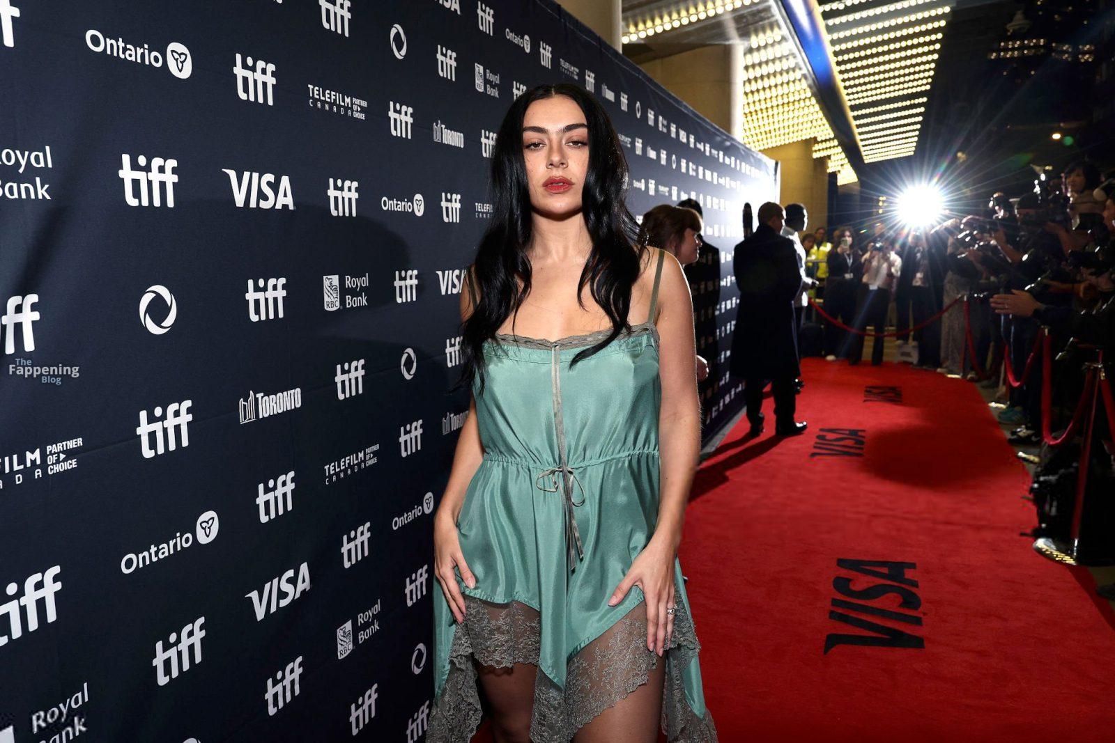 Charli XCX stupisce al TIFF con un sottoveste di pizzo setoso, sfoggiando scollatura e gambe sul red carpet della prima di “Sacrifice”.
