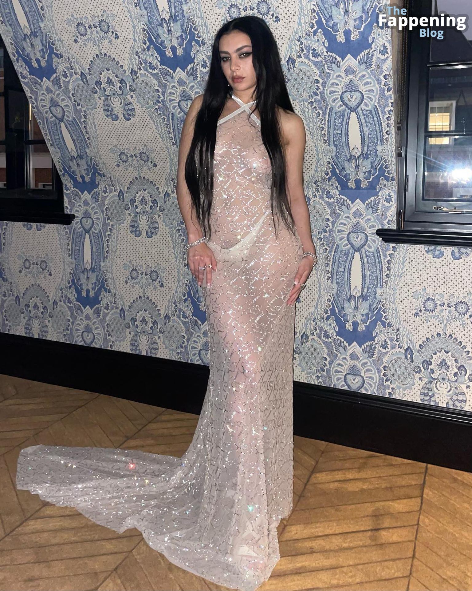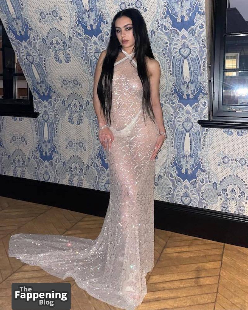 Charli XCX stuns at the 2023 BRIT Awards in a daring see-through dress, showcasing her braless breasts and thong panties.